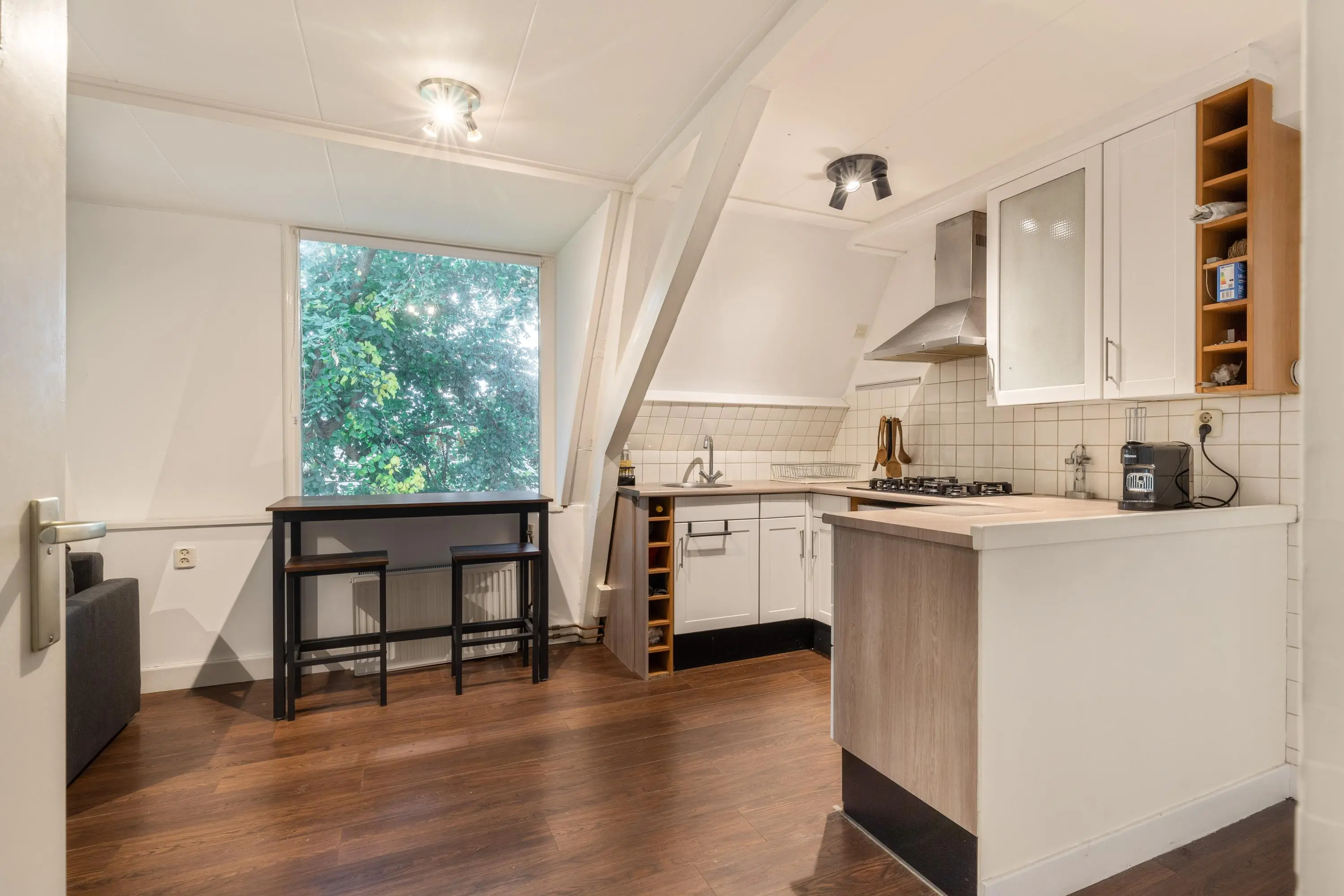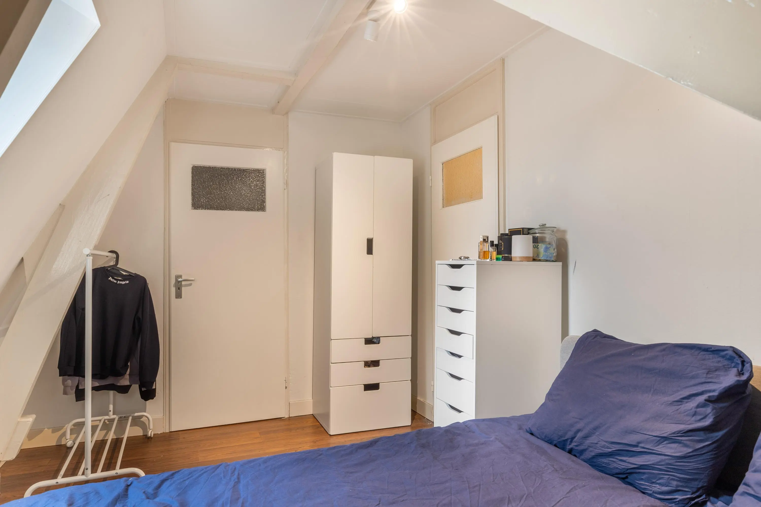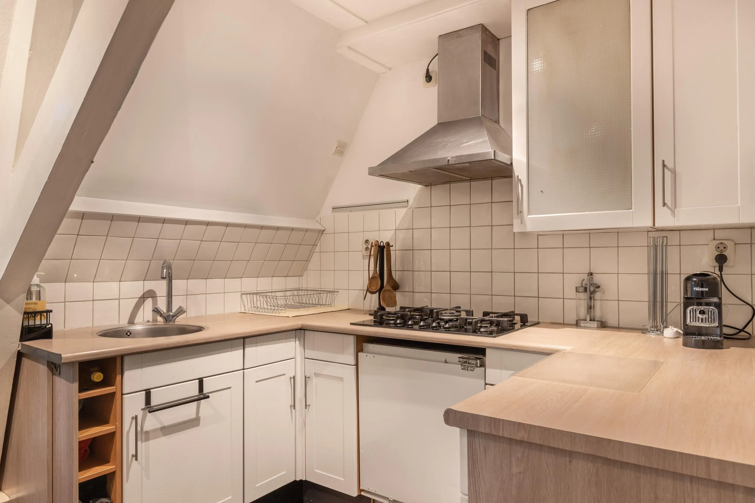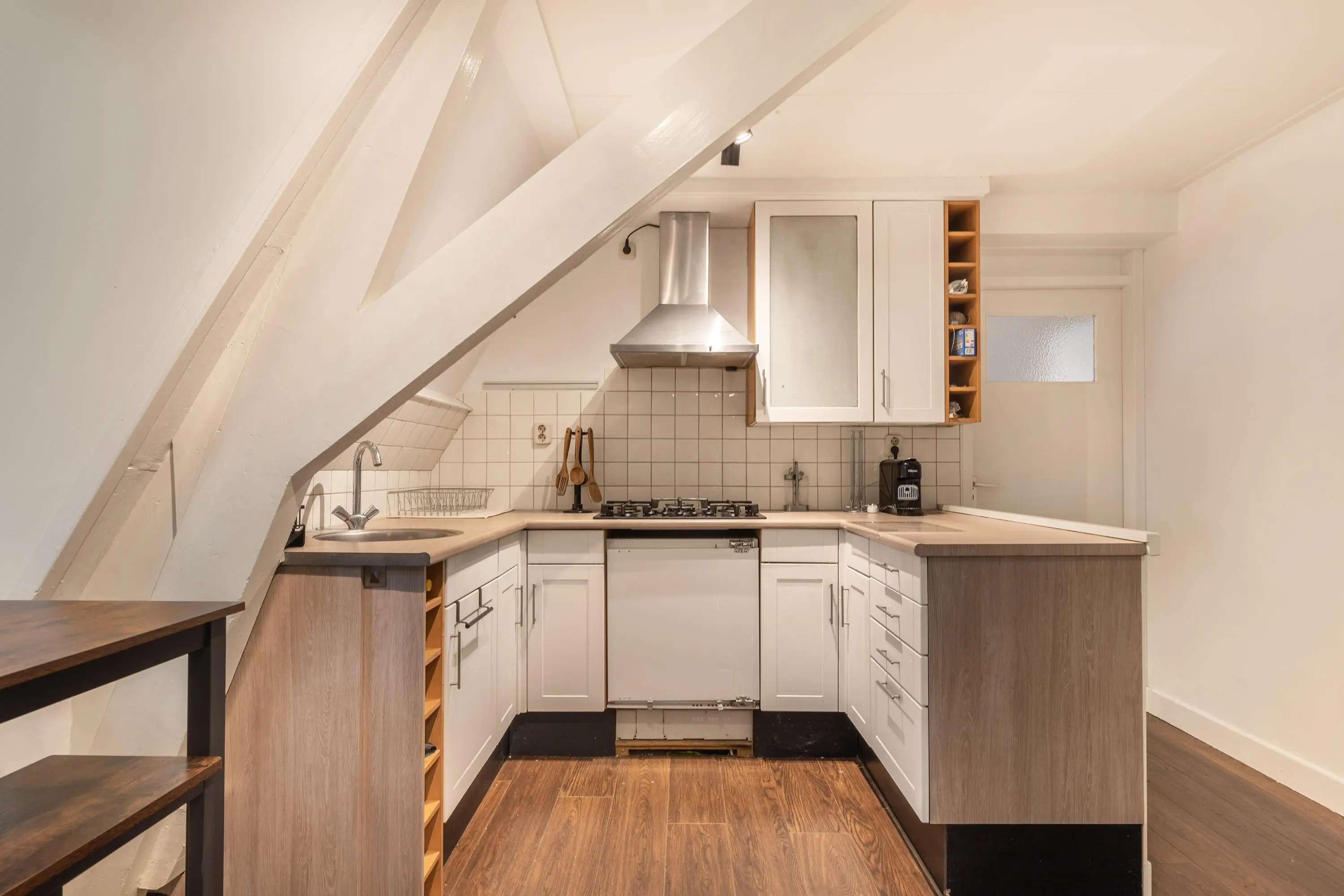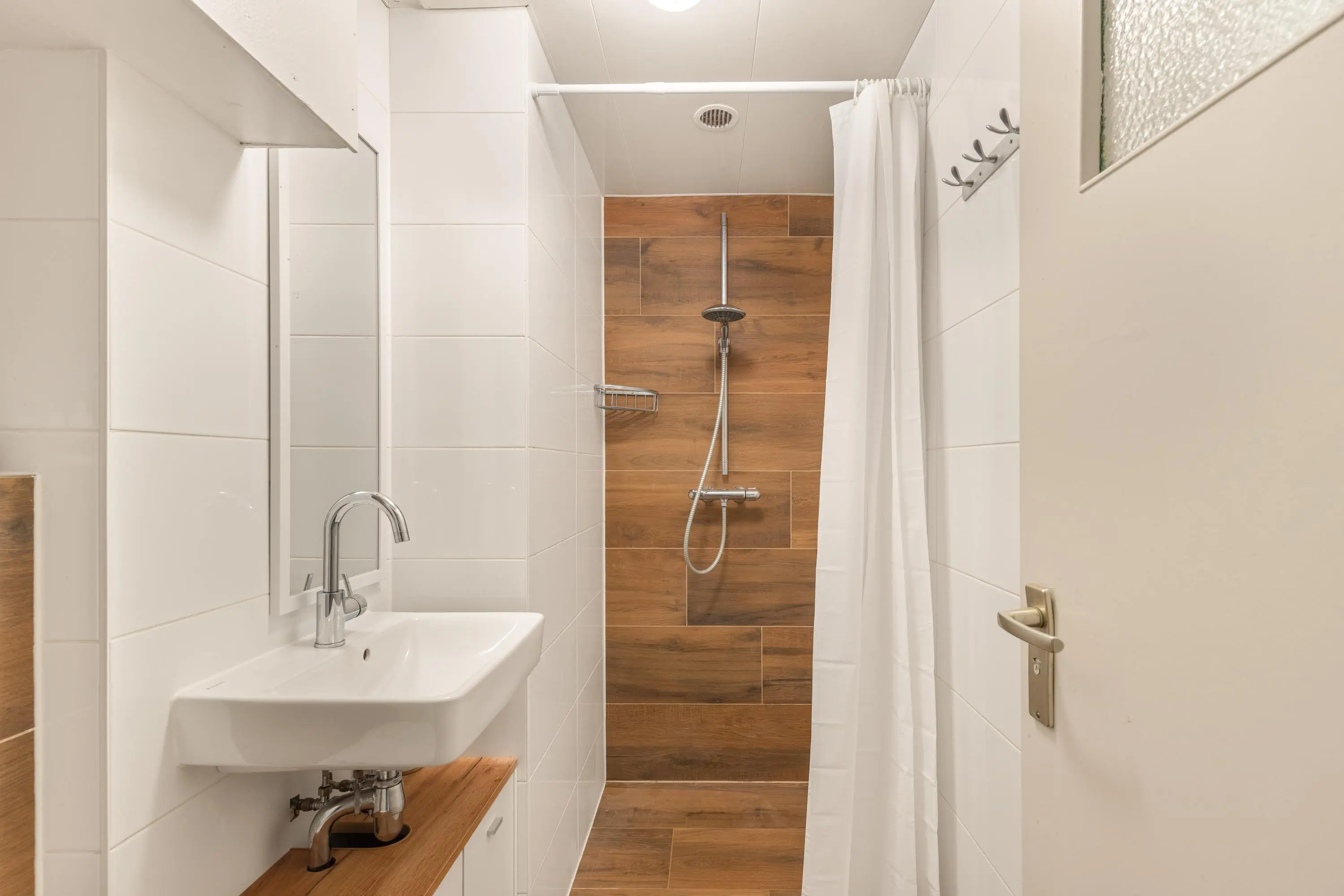 De bovenwoning vind je op de eerste verdieping van het recent onderhouden complex en biedt volop mogelijkheden om het naar jouw eigen smaak in te richten. Bij binnenkomst in het appartement stap je binnen in de hal met toegang naar de badkamer en woonkamer. De woonkamer beschikt met de huidige indeling over een zitgedeelte en open keuken. De open keuken is voorzien van een koelkast, 5 pits gasfornuis en afzuigkap. Vanuit de woonkamer stap je de slaapkamer in met een vaste kast waar tevens de wasmachine en droger aansluiting zijn gesitueerd. De moderne badkamer is voorzien van een douche en een wastafelmeubel.