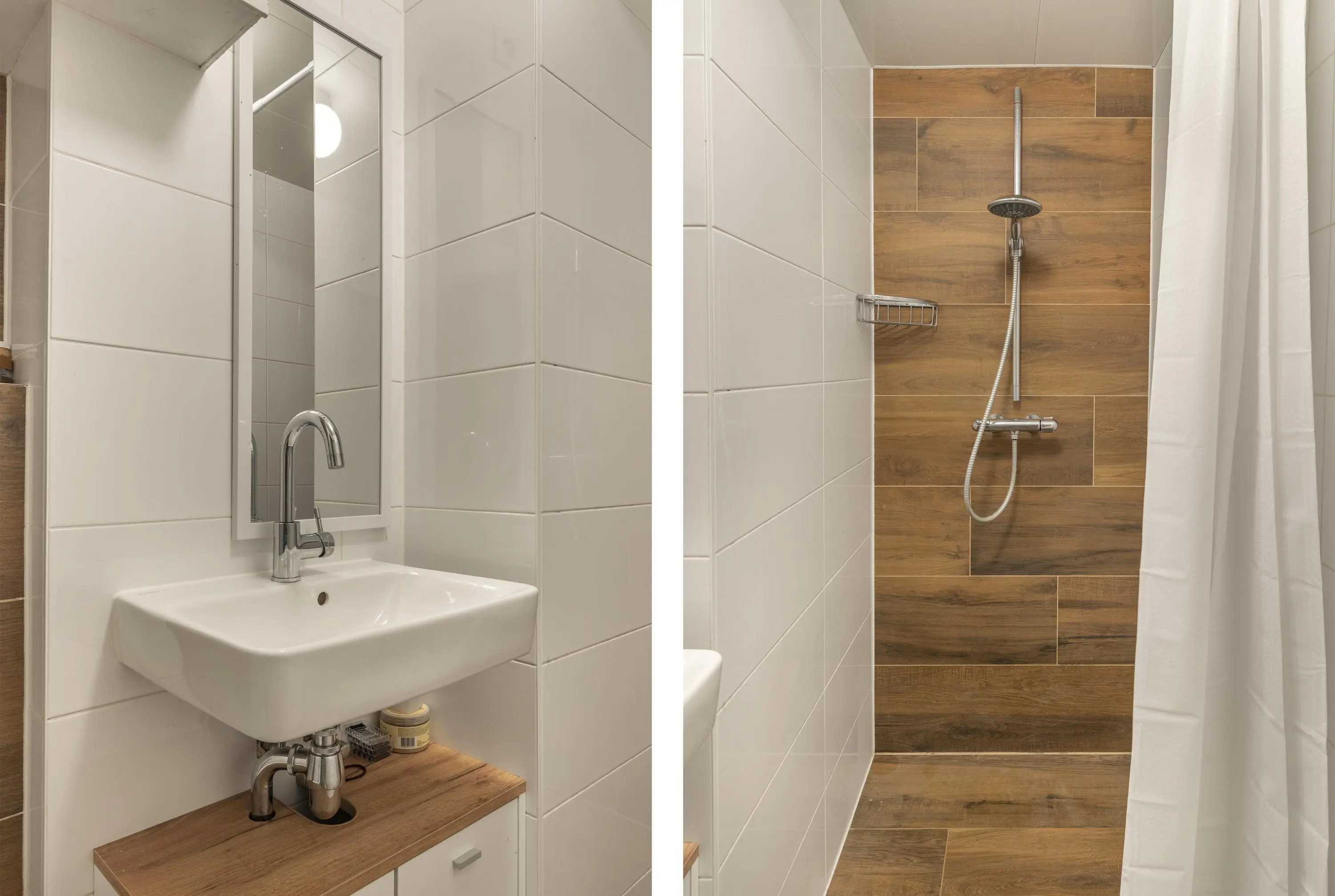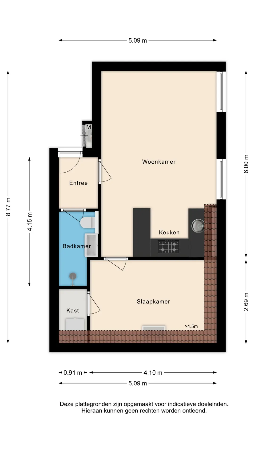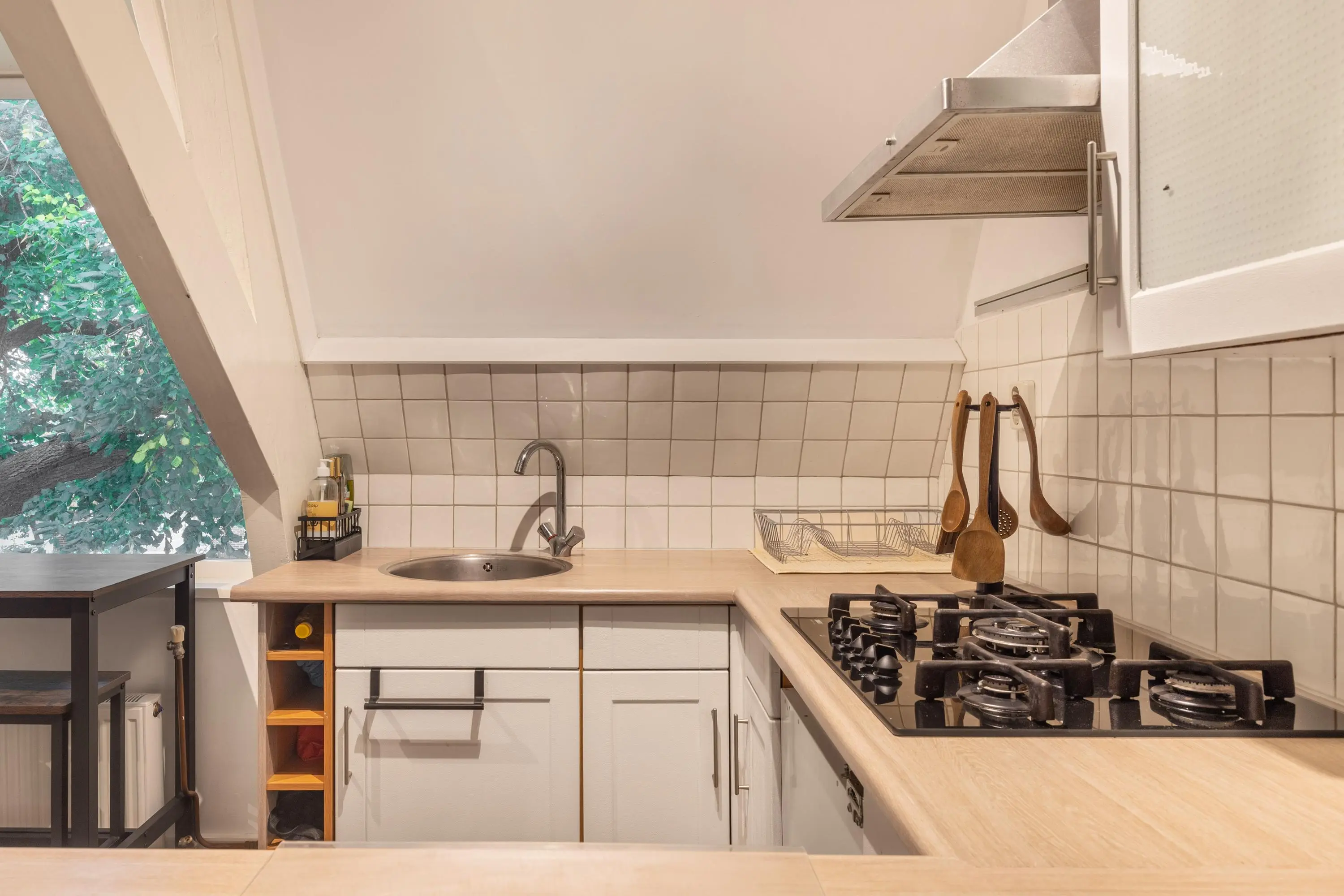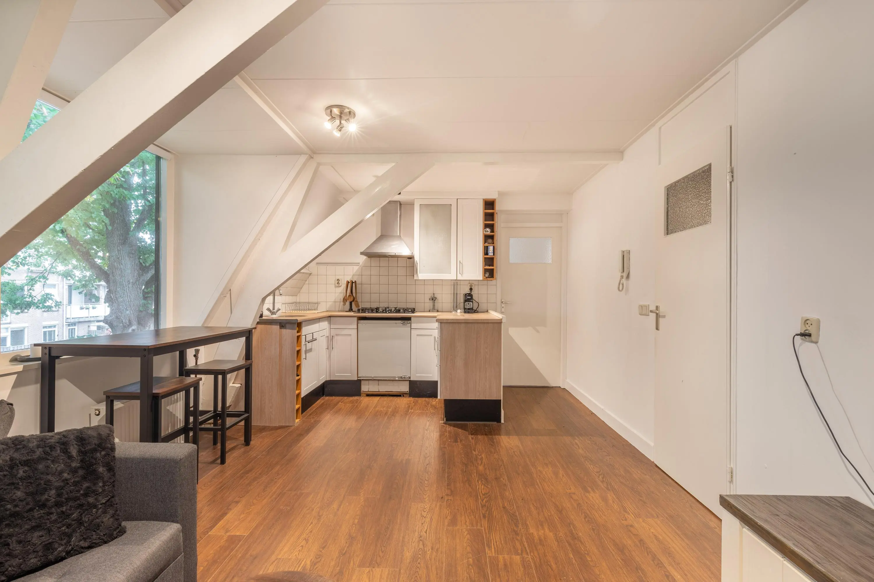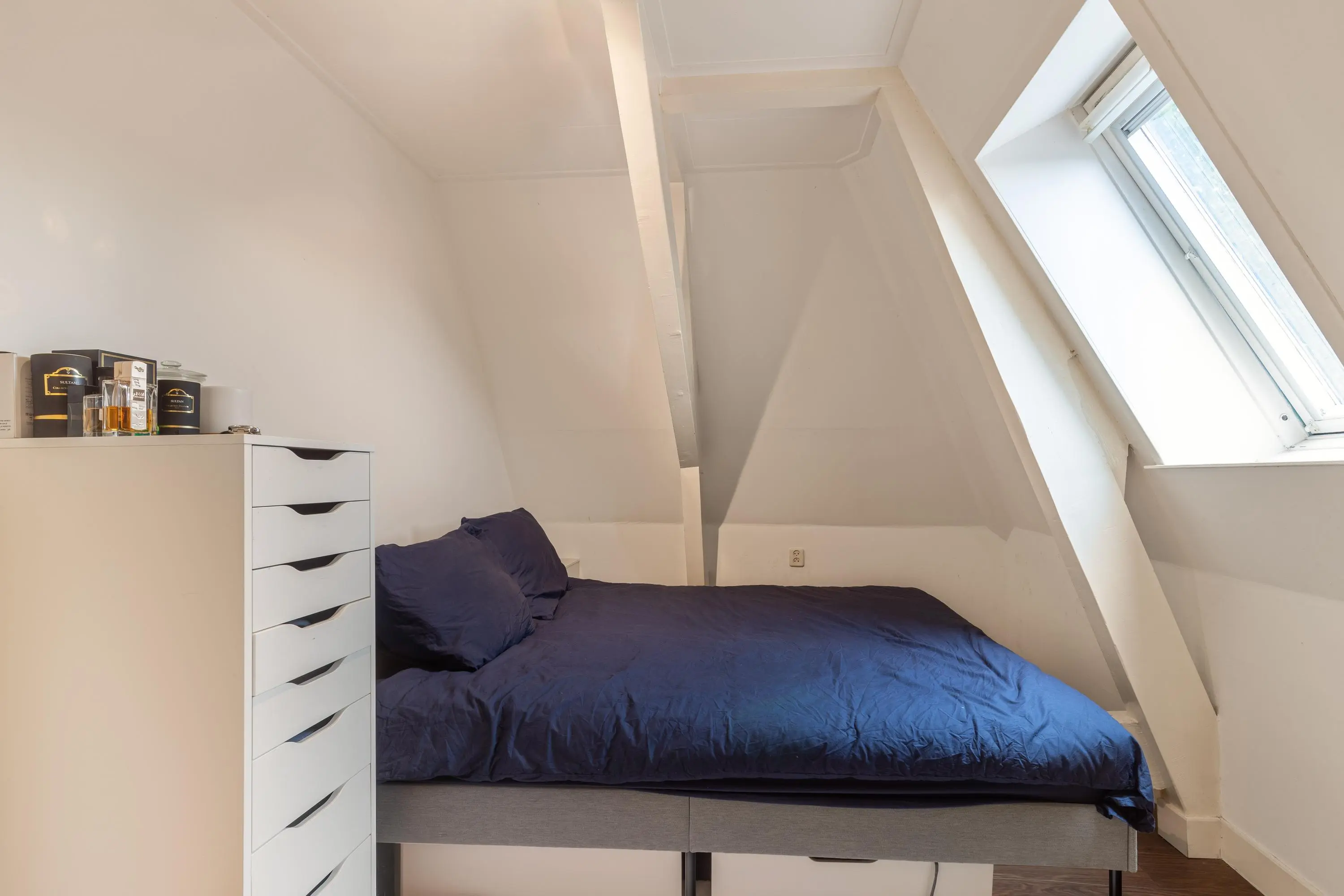 De bovenwoning vind je op de eerste verdieping van het recent onderhouden complex en biedt volop mogelijkheden om het naar jouw eigen smaak in te richten. Bij binnenkomst in het appartement stap je binnen in de hal met toegang naar de badkamer en woonkamer. De woonkamer beschikt met de huidige indeling over een zitgedeelte en open keuken. De open keuken is voorzien van een koelkast, 5 pits gasfornuis en afzuigkap. Vanuit de woonkamer stap je de slaapkamer in met een vaste kast waar tevens de wasmachine en droger aansluiting zijn gesitueerd. De moderne badkamer is voorzien van een douche en een wastafelmeubel.