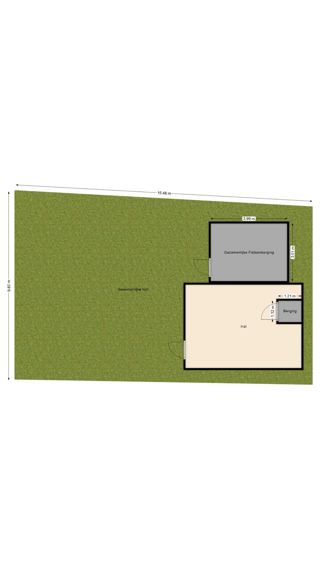 Op de begane grond bevindt zich een eigen berging (box) en nog een voordeel van dit complex is, dat het voorzien is van een gezamenlijke tuin. Hier kun je heerlijk in alle rust een kop koffie drinken of even een boek lezen. Naast de gezamenlijke tuin is er ook een gezamenlijke fietsenberging aanwezig.
