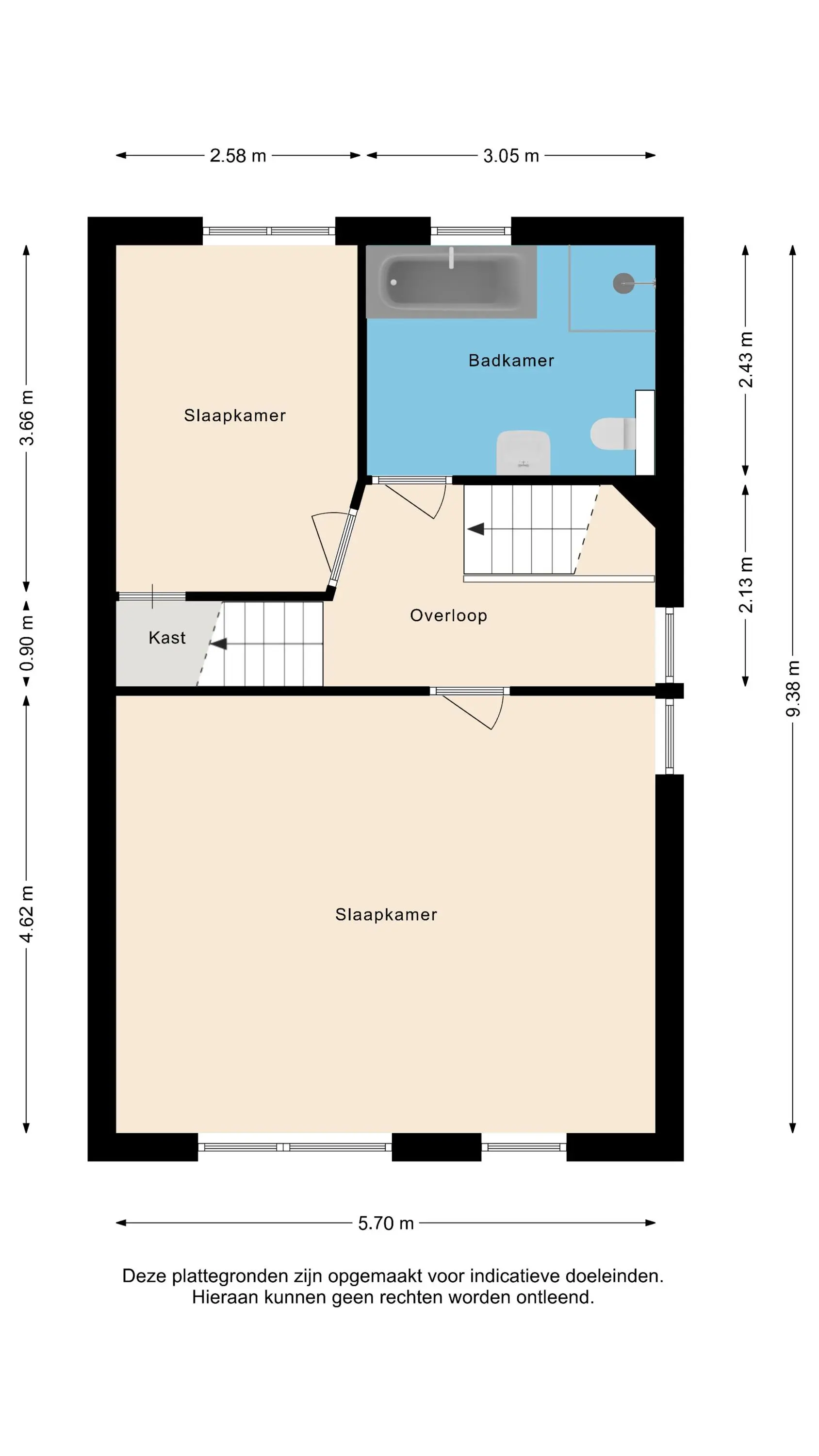 Op de eerste verdieping van de woning zijn twee ruime slaapkamers te vinden, waarvan één slaapkamer is voorzien van een inbouwkast. Verder is er uiteraard nog een badkamer aanwezig welke is voorzien van een ligbad, douche, wastafel en toilet. De zeer ruime zolder biedt je de mogelijkheid om extra (slaap)kamers te creëren. Of je nu een wat groter gezin hebt, thuis werkt, of hobbyruimte nodig hebt, de mogelijkheden zijn eindeloos.