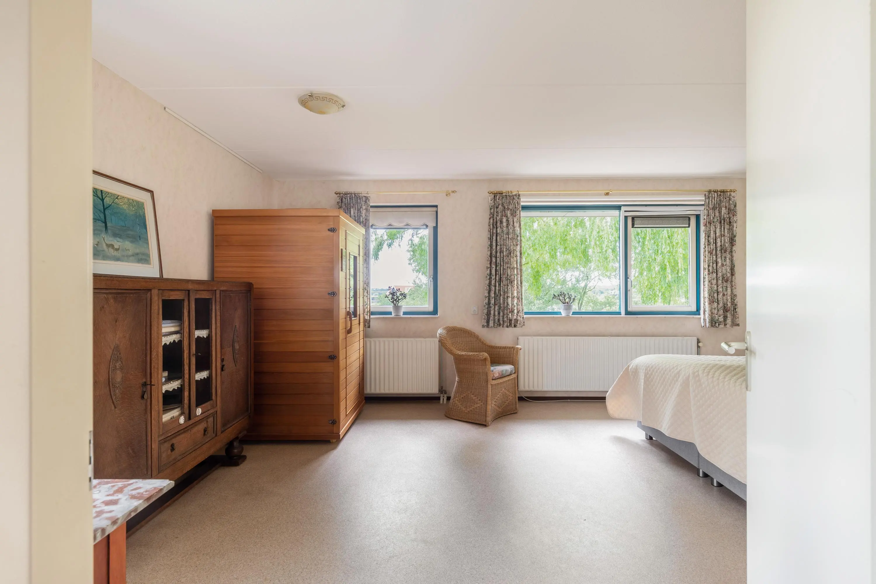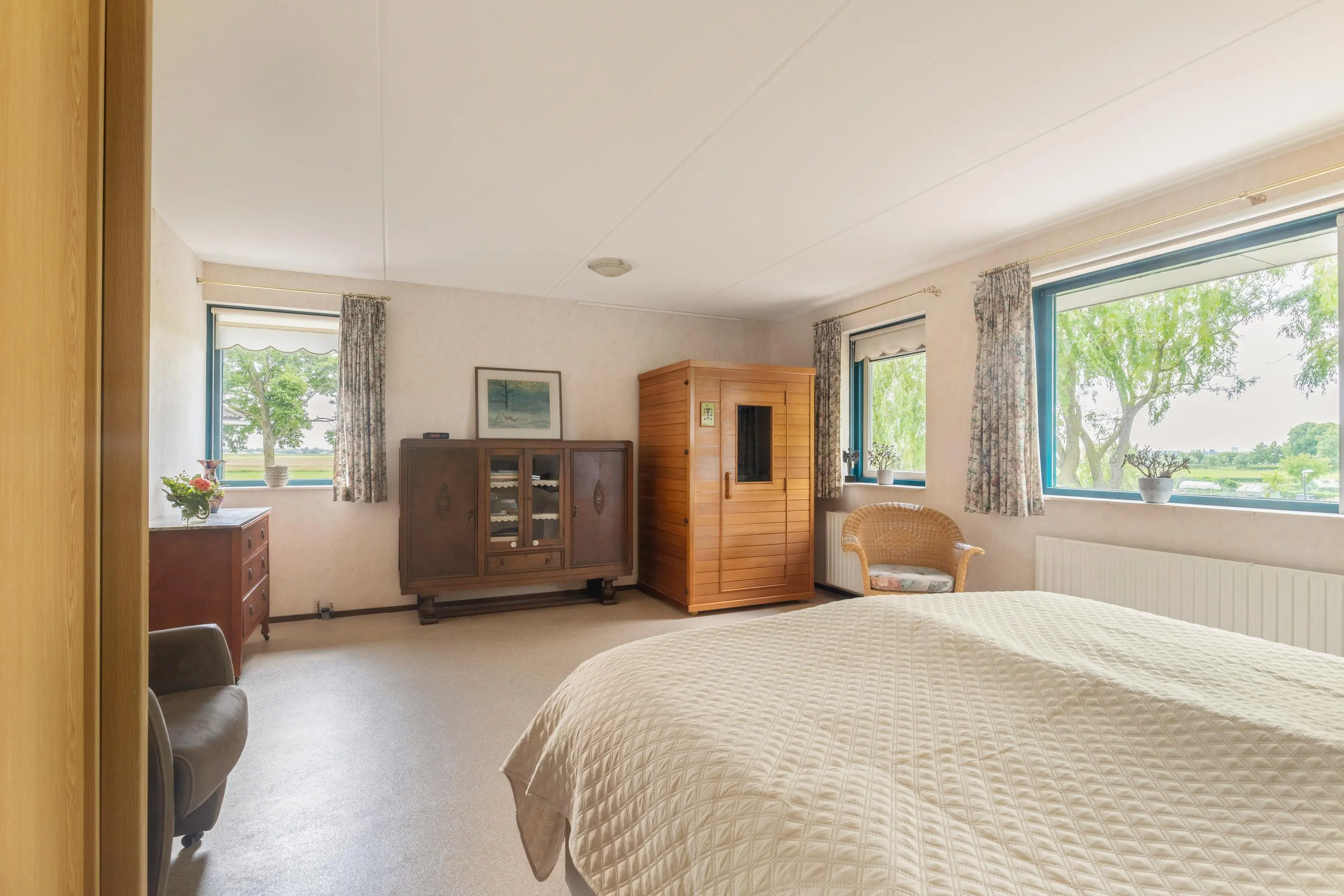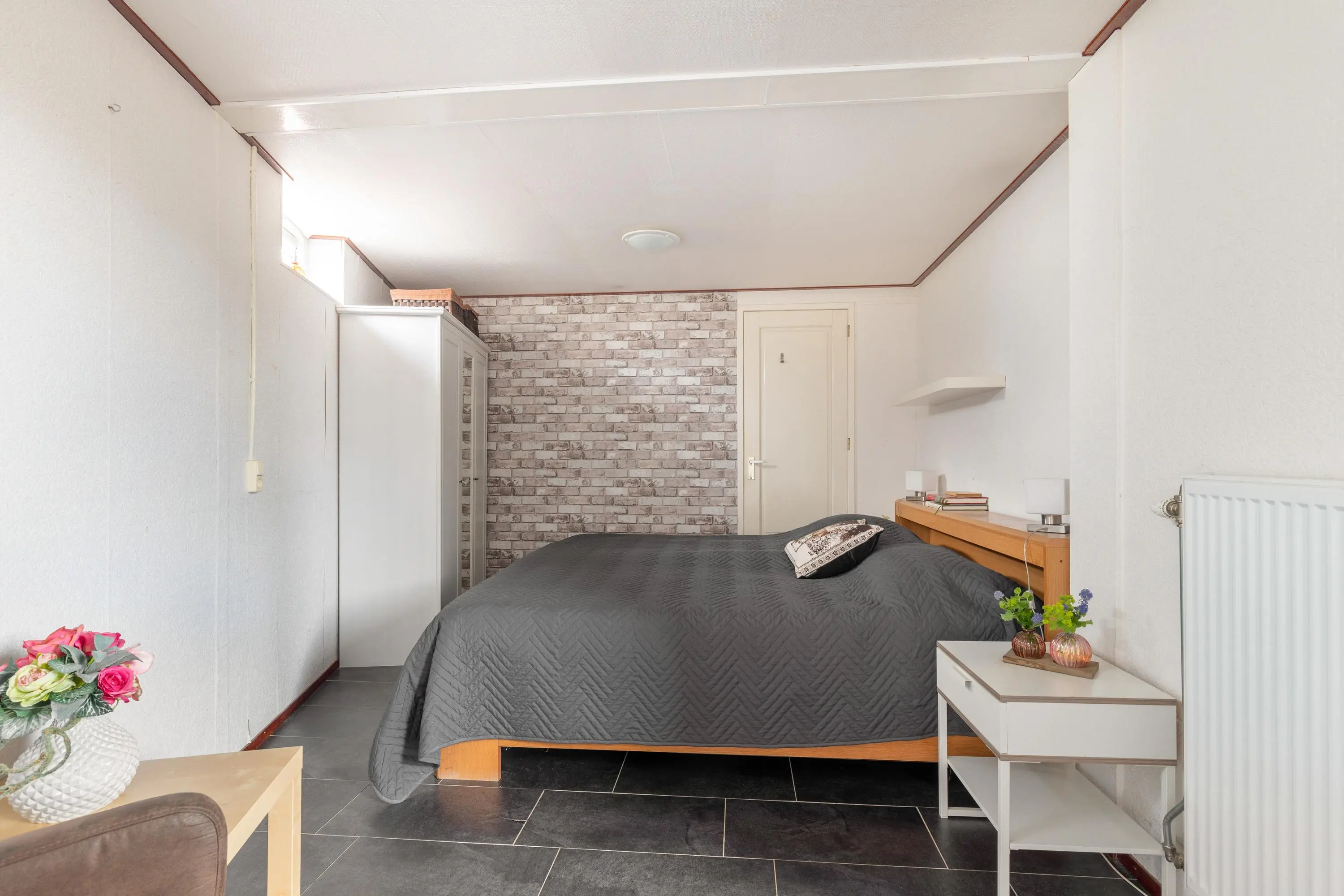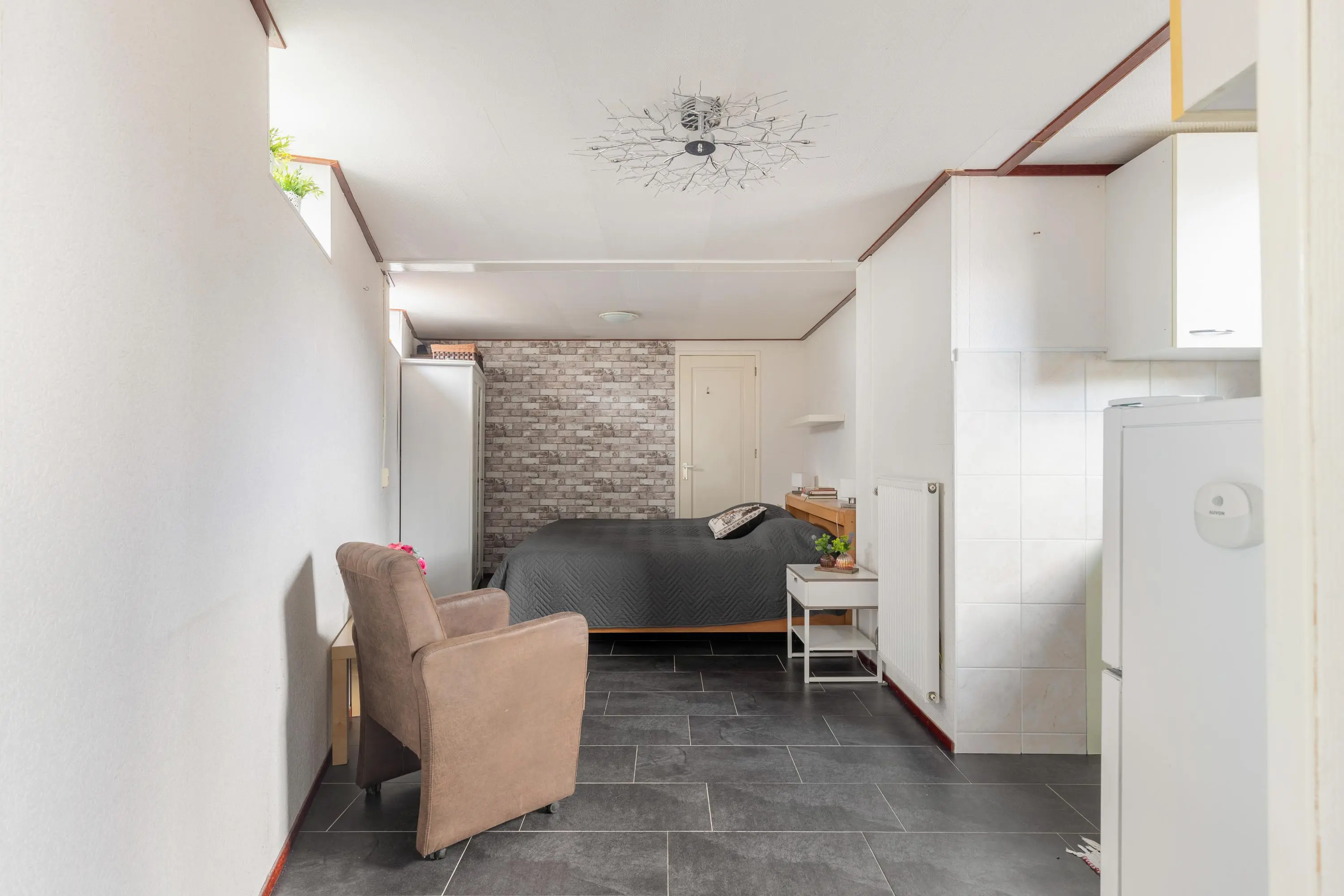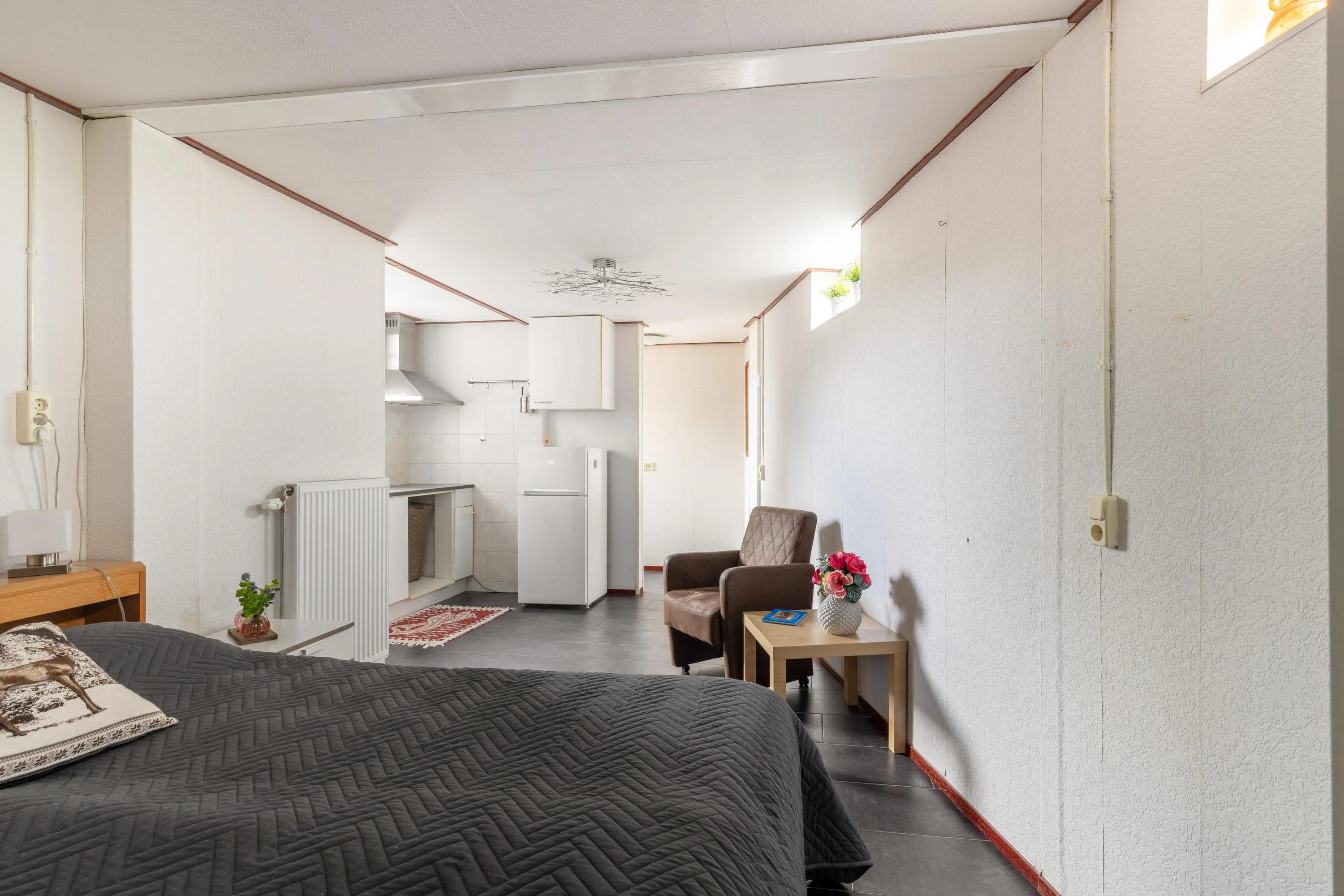De voormalige garage is slim omgebouwd tot een extra slaapkamer met een eigen keuken en badkamer op de begane grond. Deze heeft een eigen entree vanaf zowel de voorzijde, als achterzijde van de woning. Dit biedt verschillende mogelijkheden, zoals een kantoor/ praktijk aan huis of een Airbnb voor extra inkomsten.