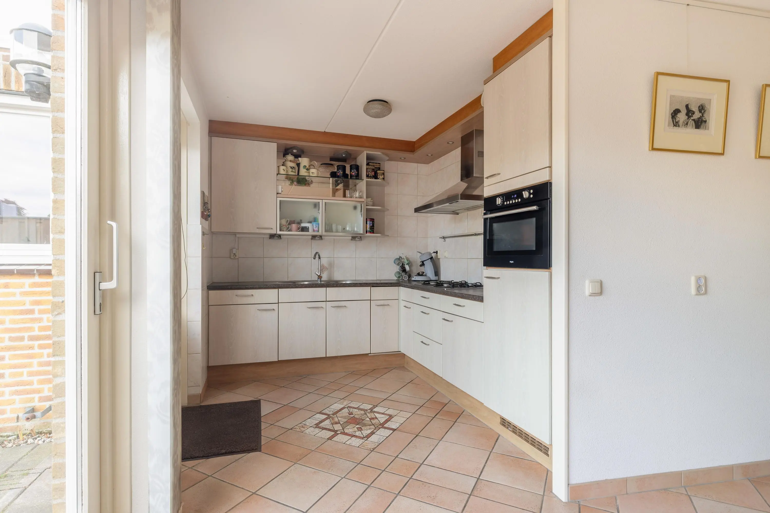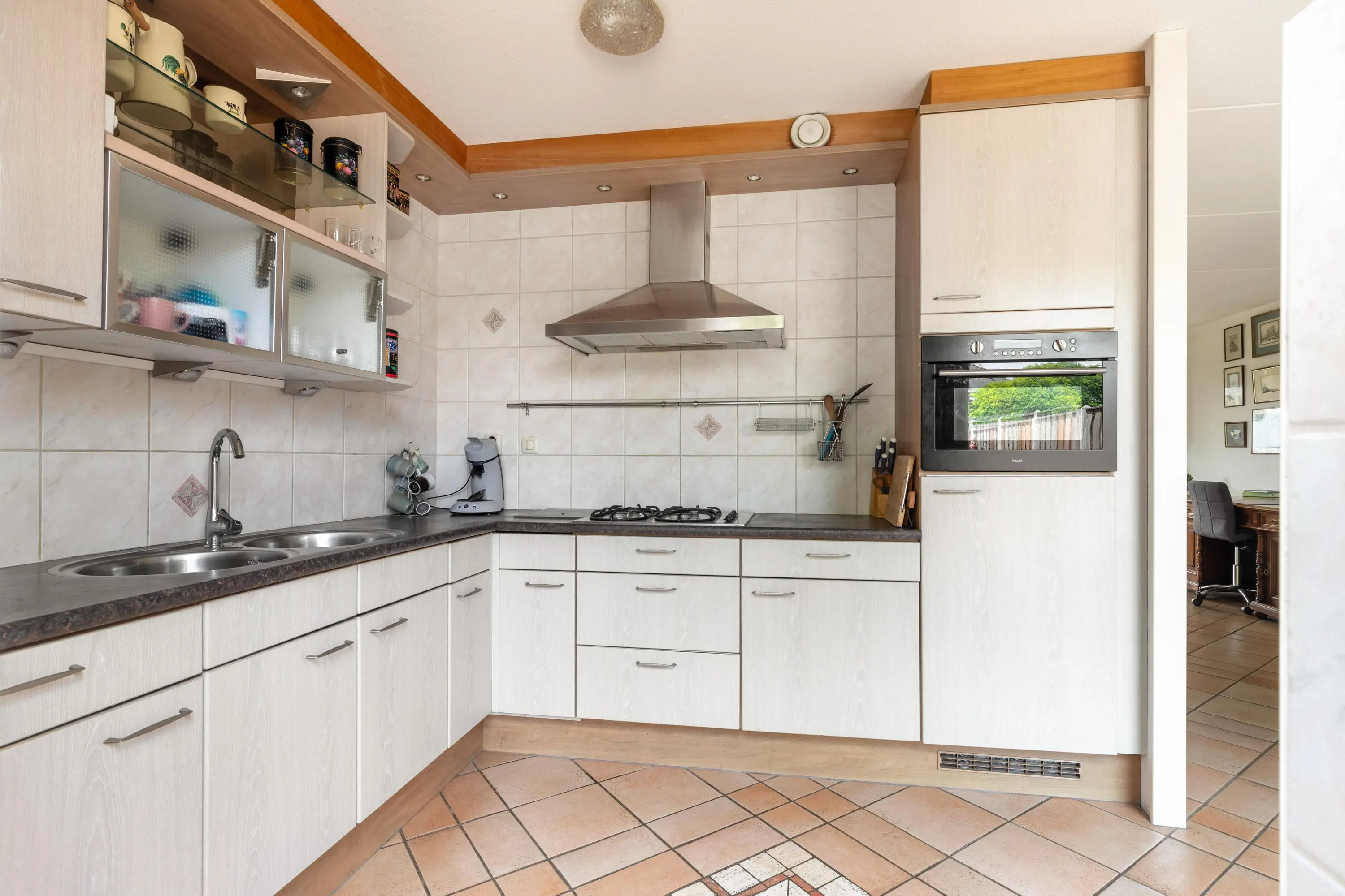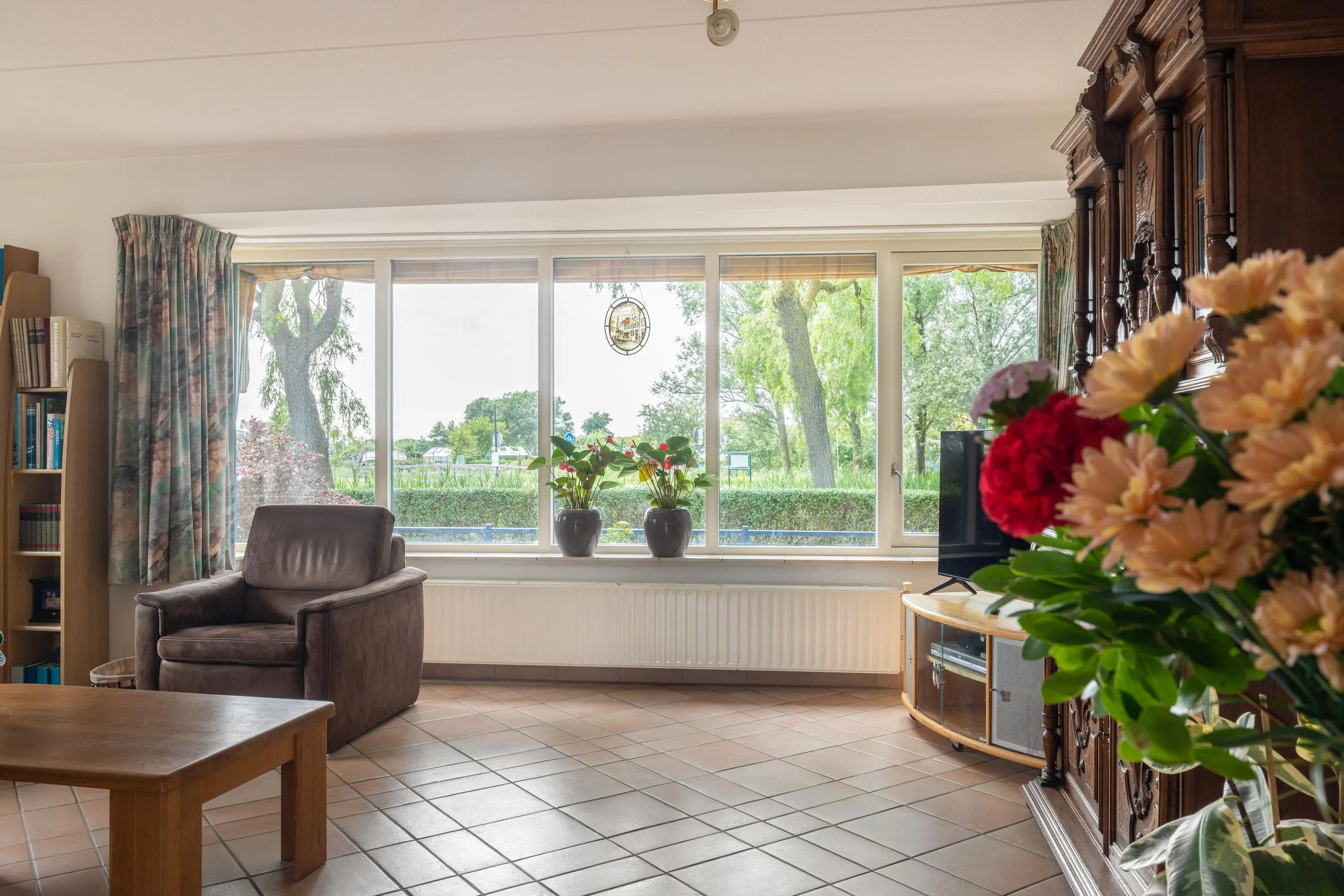 Geniet dagelijks van een wijds uitzicht over de omliggende weilanden vanuit de heerlijk lichte woonkamer. De eetkamer staat in directe verbinding met de keuken welke is uitgerust met de kookgemakken van nu. Buiten haal je heel makkelijk naar binnen door de schuifpui open te zetten. De ligging van de verzorgde tuin is op het oosten, hier geniet je in de ochtend meteen al van de zon.