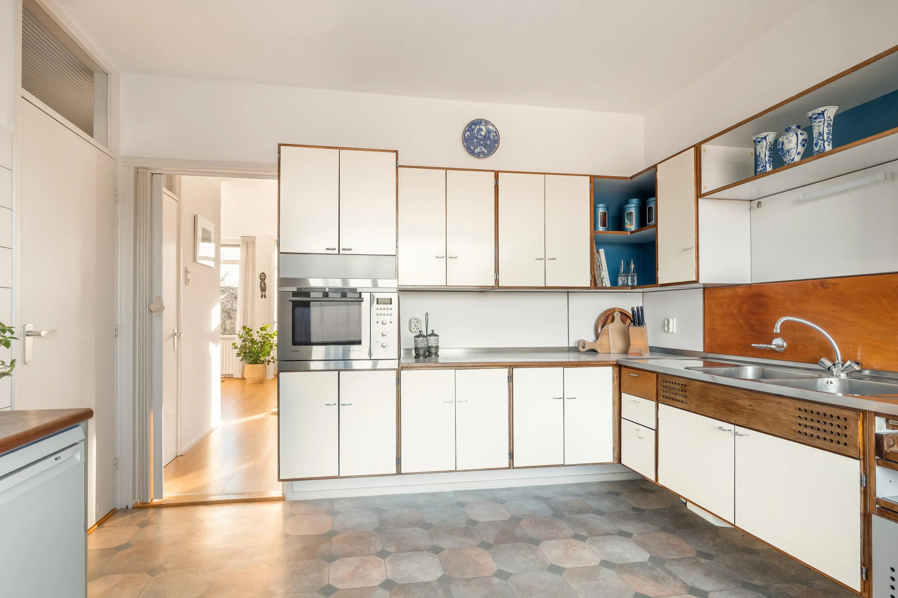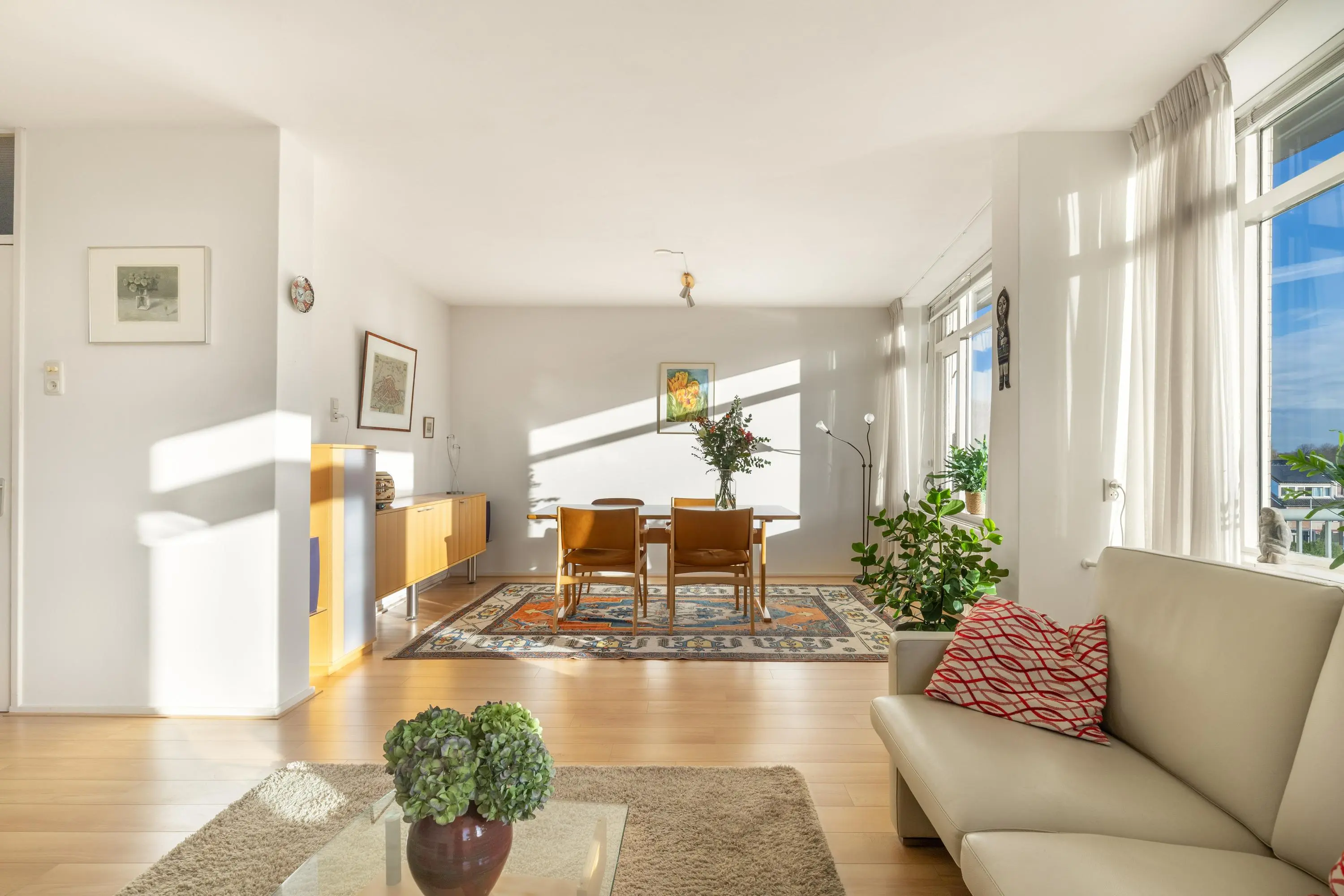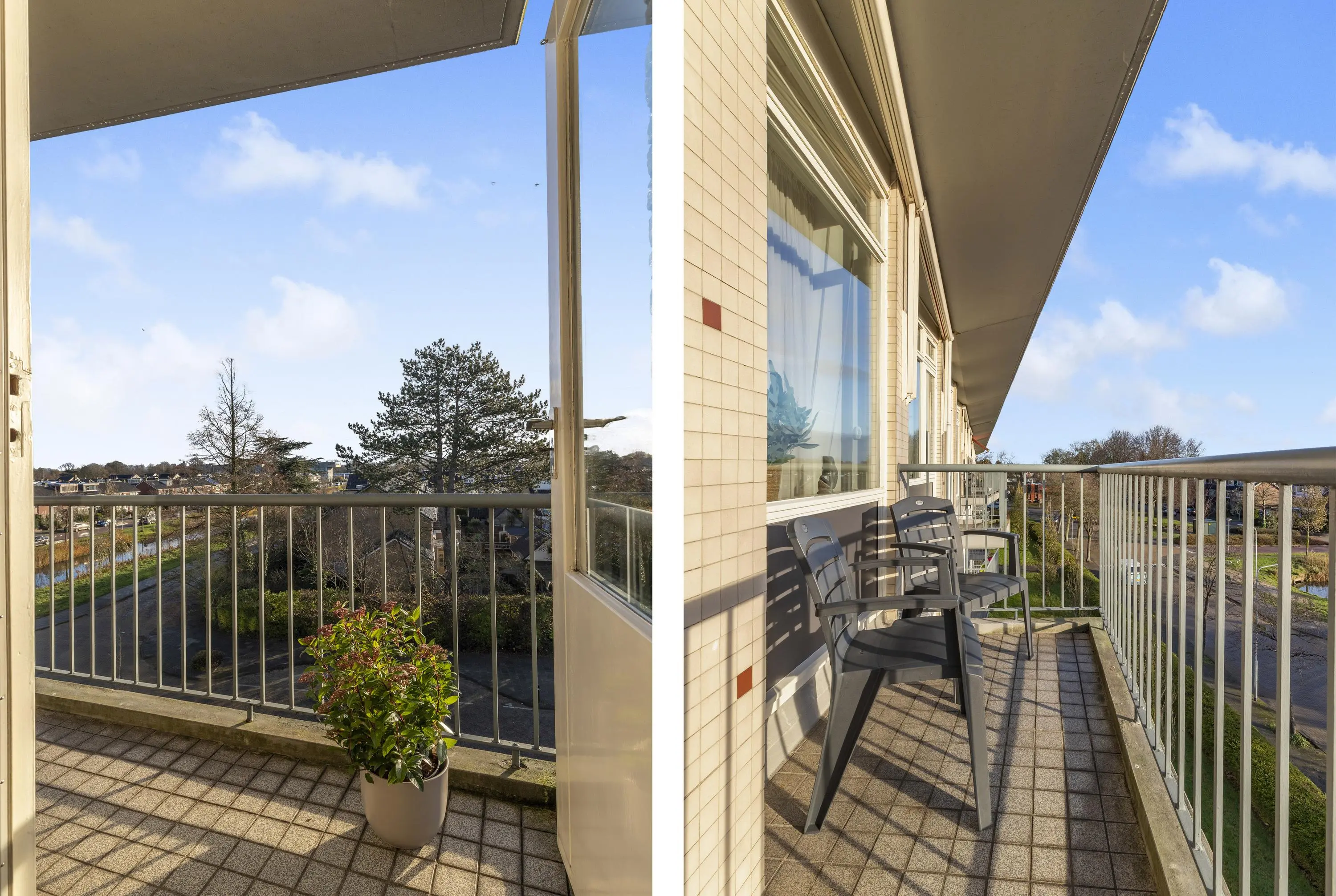 Bij binnenkomst valt direct de ruime hal op, die toegang biedt tot alle lichte vertrekken. Dankzij de gunstige hoekligging geniet je de hele dag door van een prachtig uitzicht en volop natuurlijk licht. De royale woonkamer biedt meer dan genoeg ruimte voor een comfortabele zithoek én een gezellige eethoek. De dichte keuken is nog in originele staat, maar wel voorzien van inbouwapparatuur zoals een combimagnetron en een kookplaat. Zowel vanuit de keuken als vanuit de woonkamer bereik je één van de balkons, een fijne plek om te genieten van de zon of een frisse bries.