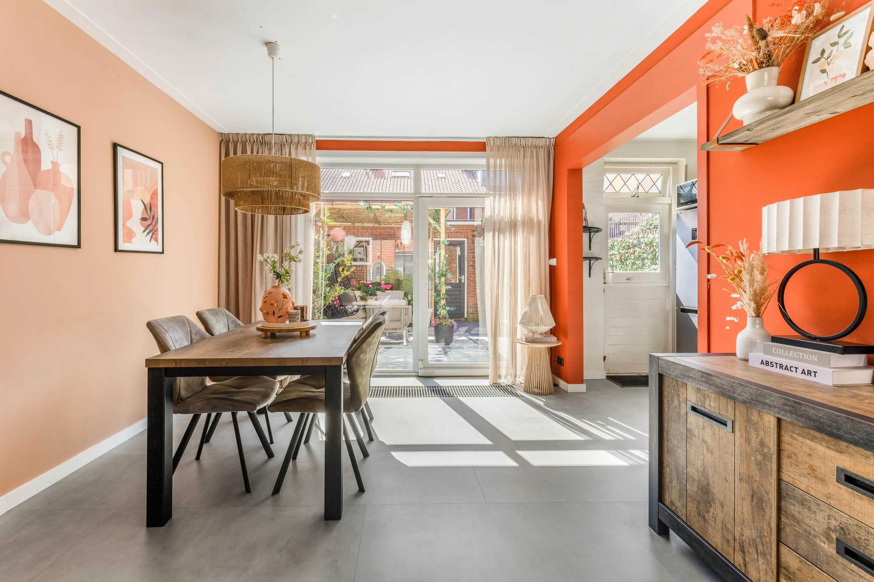 Deze verrassend ruime tussenwoning combineert een moderne afwerking met een warme, sfeervolle uitstraling. De royale woonkamer biedt dankzij de grote raampartijen aan zowel de voor- als achterzijde een prachtige lichtinval. Hier geniet je van een open en uitnodigende sfeer. De halfopen keuken is van alle gemakken voorzien, waaronder een inductiekookplaat en een vaatwasser.