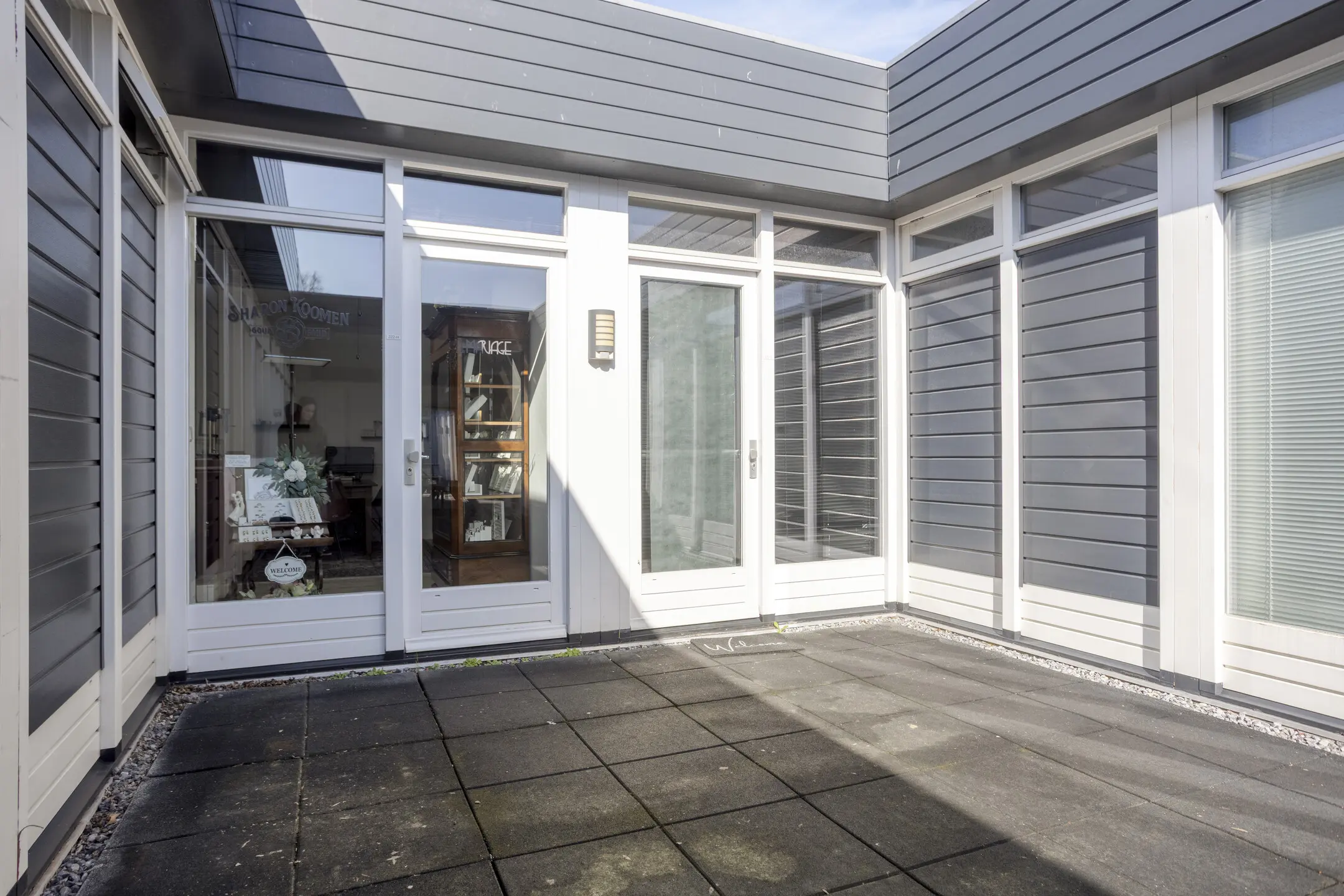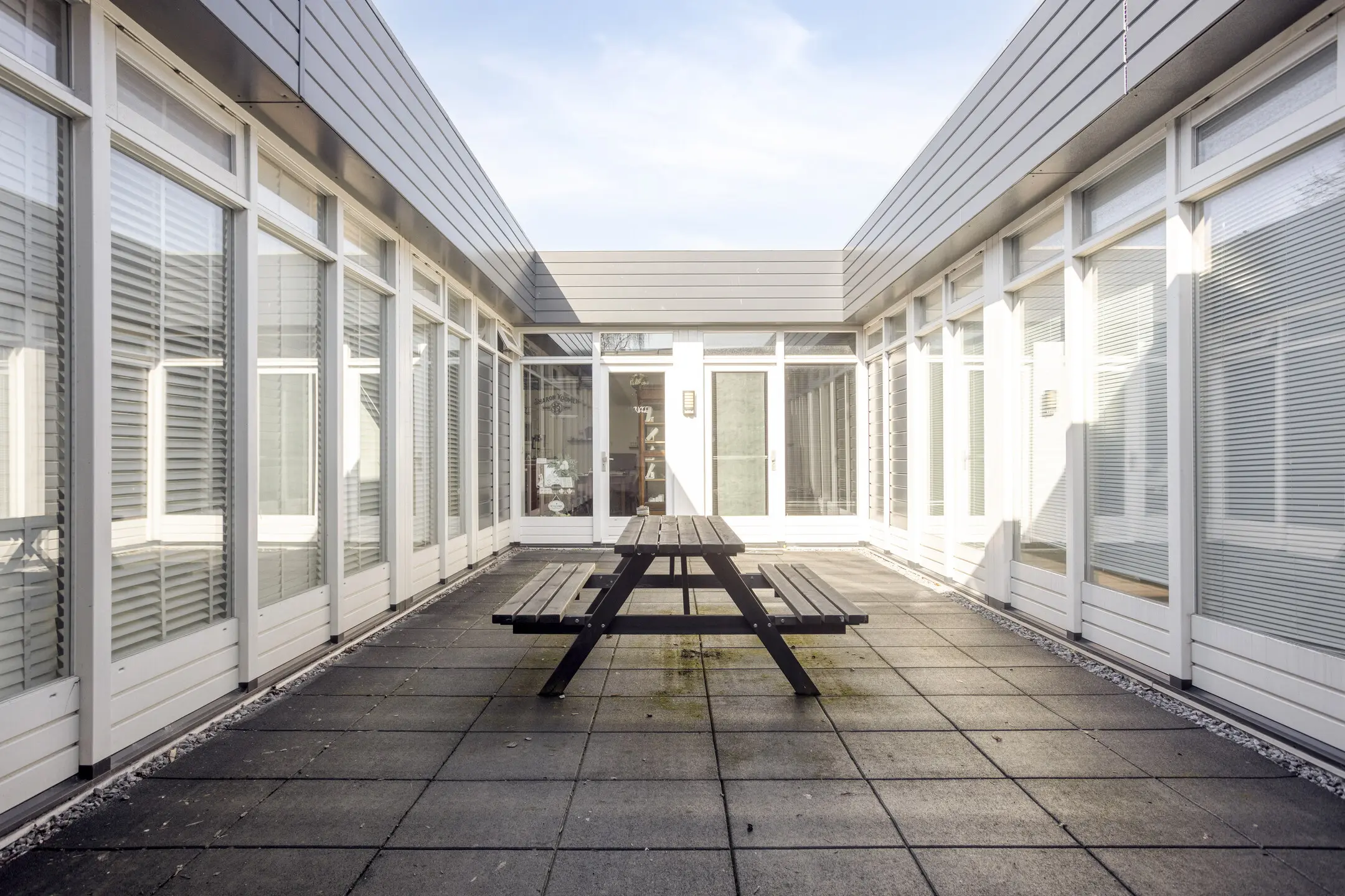 Via de afgesloten entreehal bereikt men de centrale toegang van het gebouw. Vanuit de hal zijn meerdere bergingen bereikbaar en via een doorgang komt men op de centrale binnenplaats van het complex. Vanaf deze binnenplaats zijn de afzonderlijke units toegankelijk.