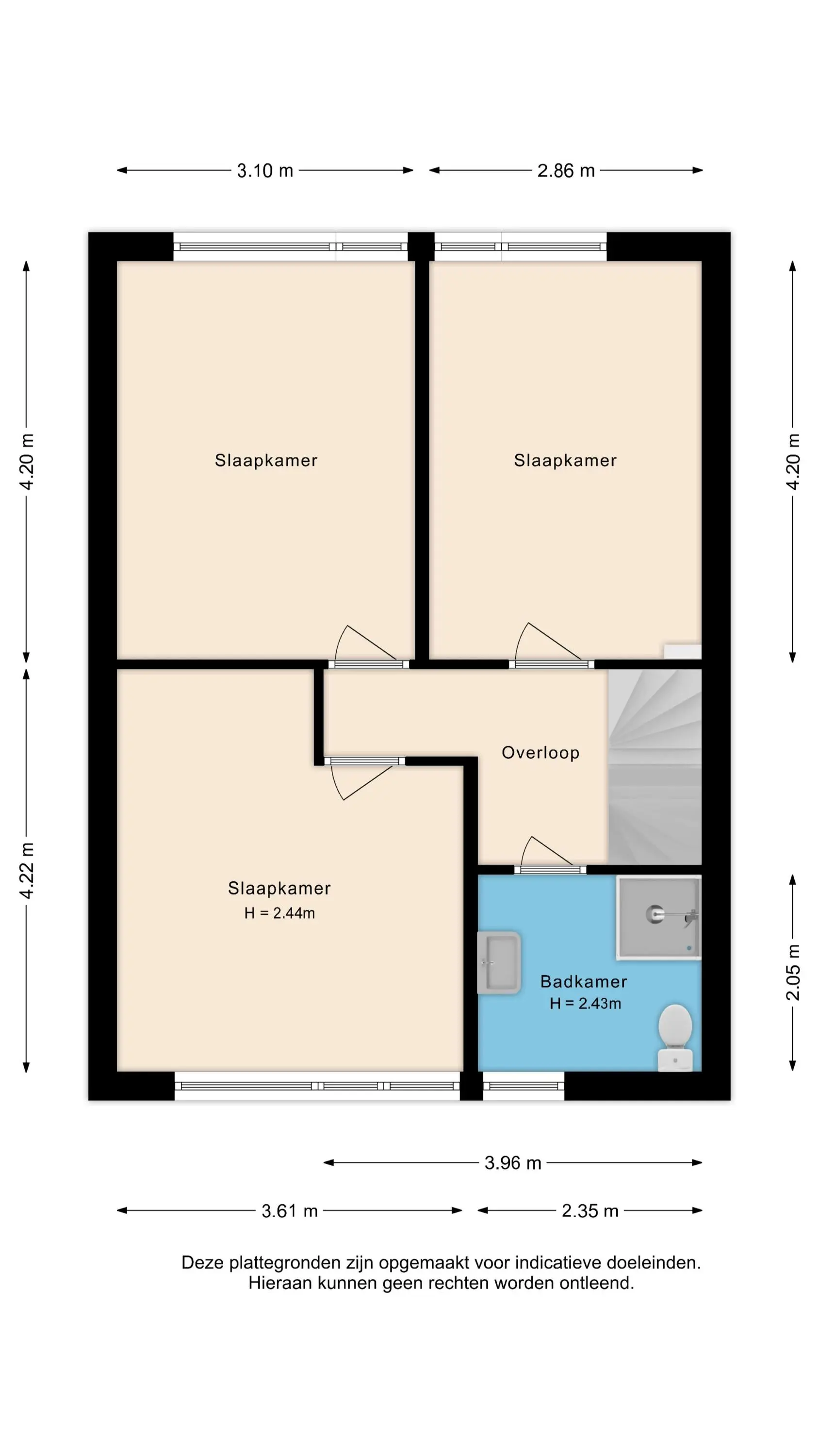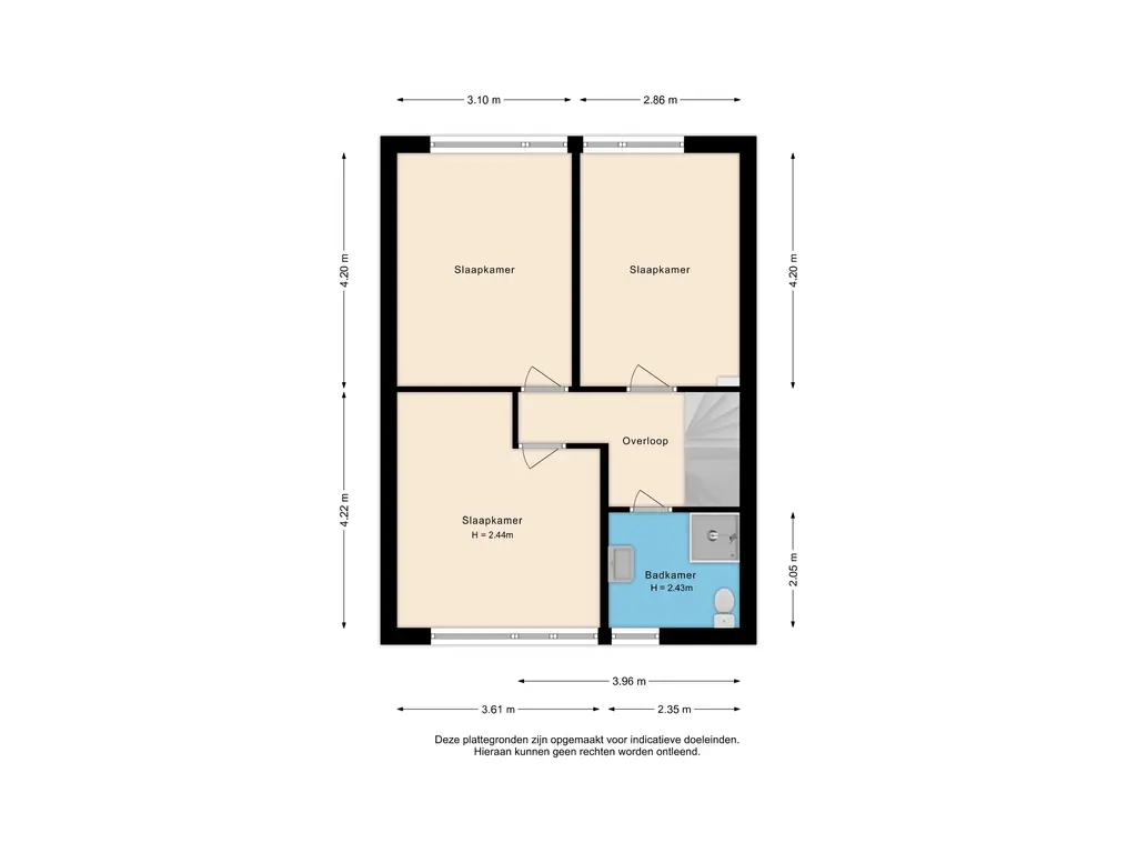 Op de eerste verdieping zijn drie goed bemeten slaapkamers te vinden. Deze kamers kunnen als slaapruimtes dienen, maar kunnen uiteraard ook gebruikt worden als kantoor of hobbyruimte. De badkamer is voorzien van een wastafel, inloopdouche en een tweede toilet. Op de tweede verdieping is nog een vierde, ruime slaapkamer te vinden en hier vindt u ook de CV-ketel en de aansluiting voor de wasmachine en droger.