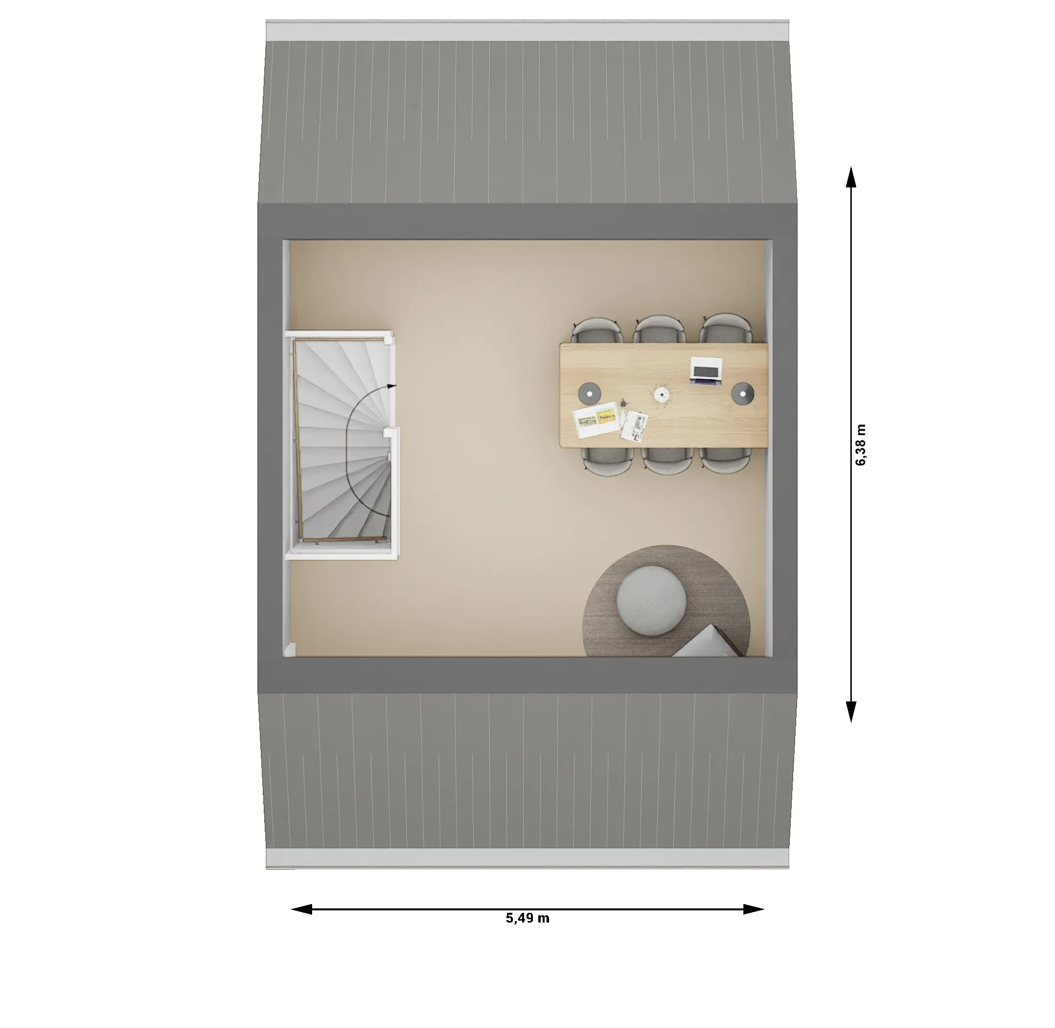 Op de begane grond bevindt zich de leefruimte met open keuken. De eerste verdieping biedt plaats aan drie slaapkamers en de badkamer. De zolder vormt een extra woonlaag die geschikt is als werk-, hobby- of extra slaapkamer.