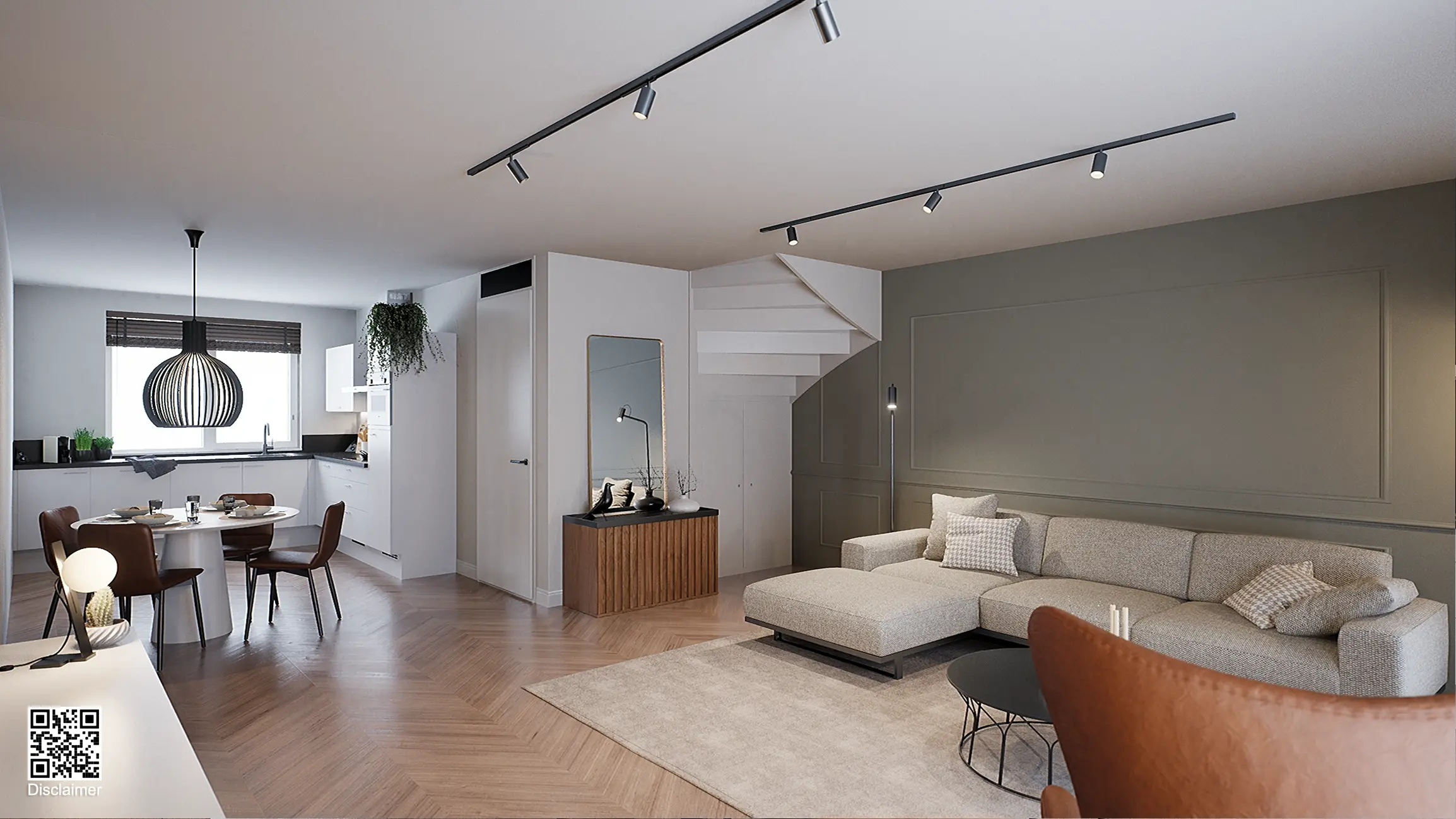 Op de begane grond bevindt zich de leefruimte met open keuken. De eerste verdieping biedt plaats aan drie slaapkamers en de badkamer. De zolder vormt een extra woonlaag die geschikt is als werk-, hobby- of extra slaapkamer.