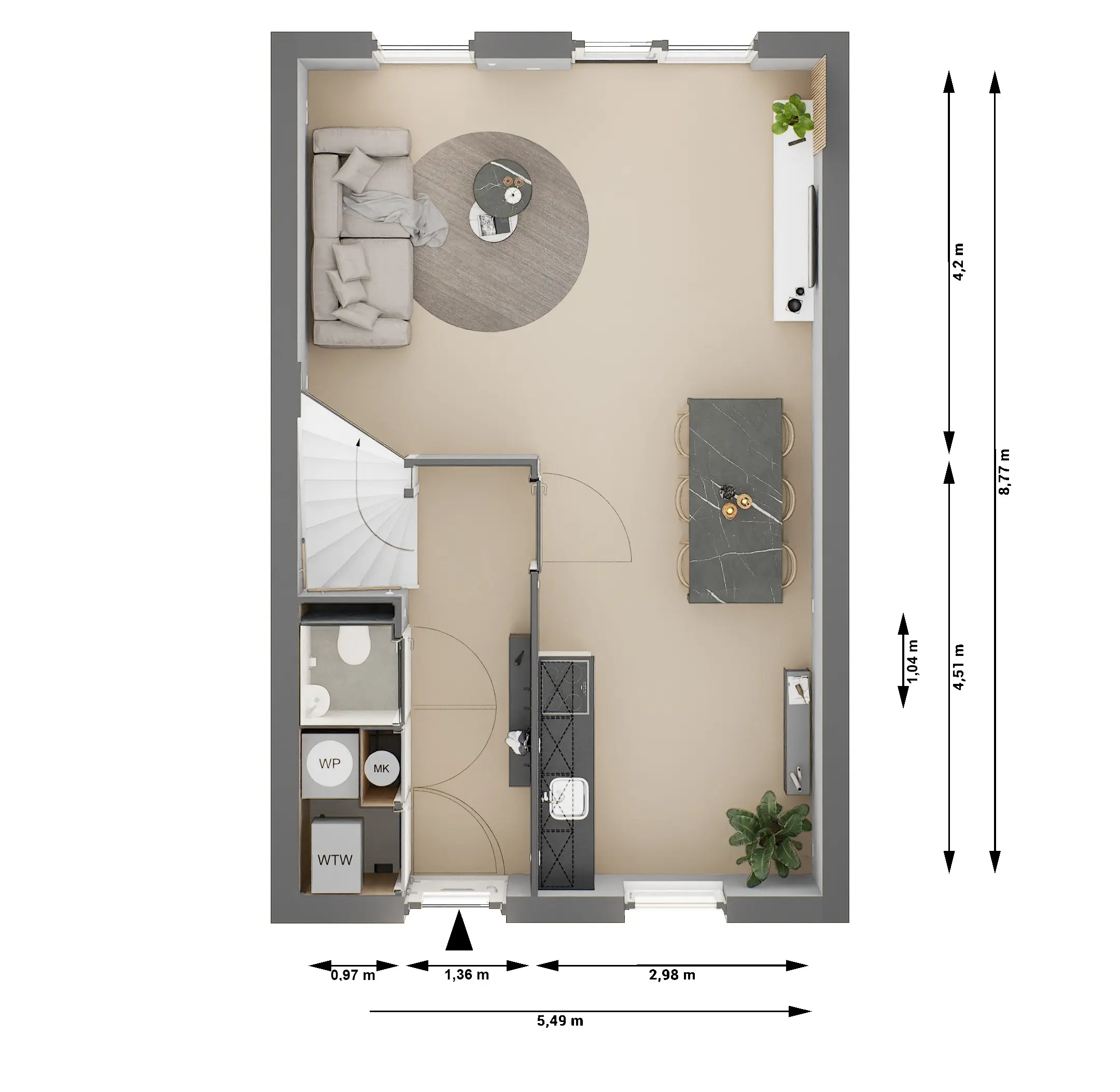 Type Anemoon is een ruime twee-onder-een-kapwoning met een woonoppervlakte van ca. 120 tot 128 m². De woning beschikt over drie slaapkamers en een zolderverdieping, wat zorgt voor volop ruimte voor het hele gezin.