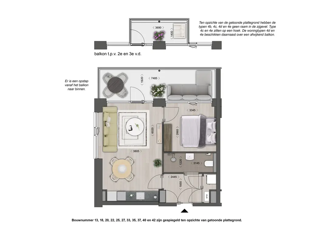 De slaapkamer biedt volop comfort en rust, met genoeg plek voor een kledingkast of werkhoek. De badkamer is modern en stijlvol uitgevoerd met een douche, wastafel en toilet. Dit appartement combineert modern woongenot met een doordachte indeling, een plek waar je elke dag met plezier thuiskomt. Kijk voor de verkoopvoorwaarden op de website: wonen-rozenrijk.nl