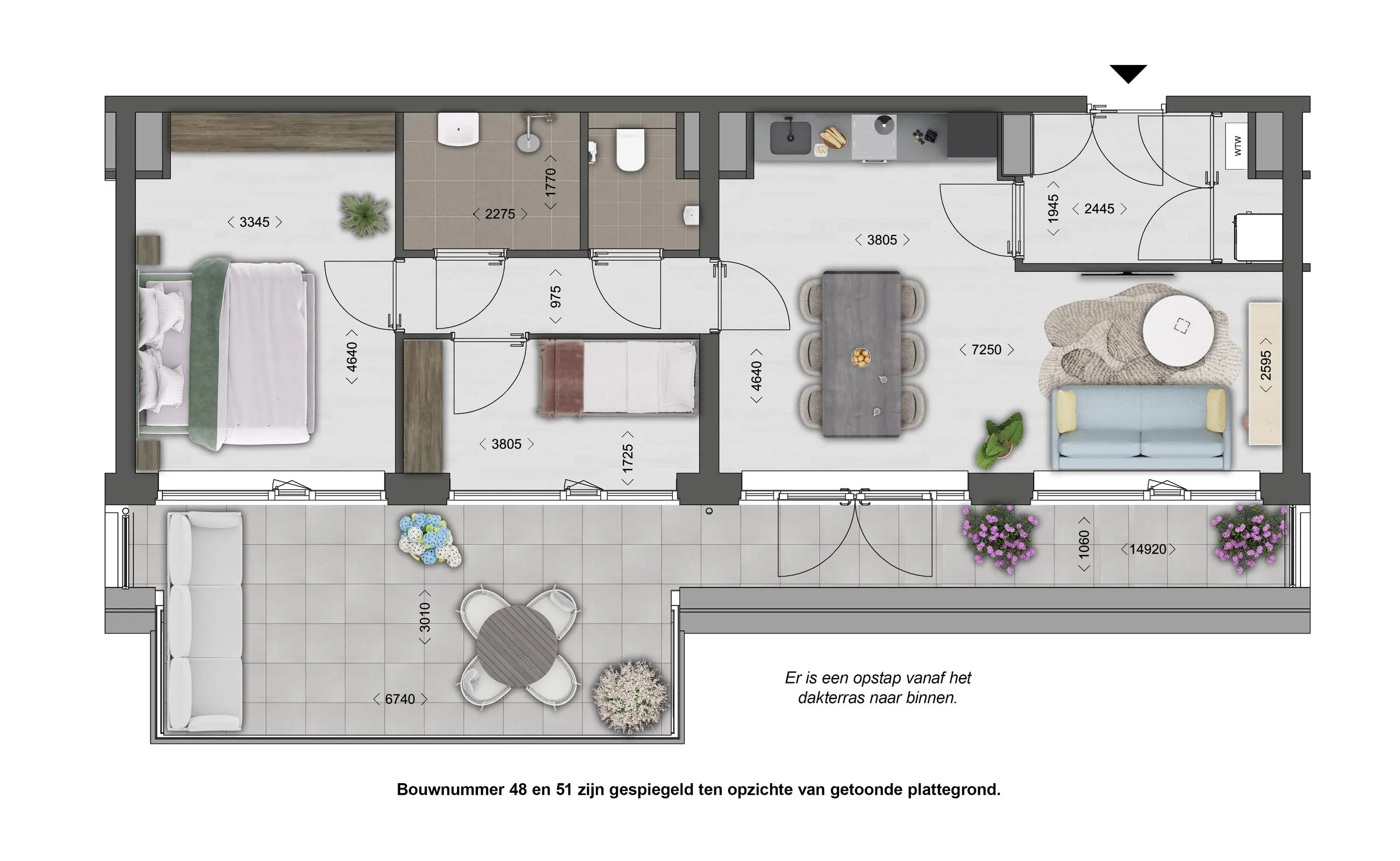 het appartement en is een lichte, open ruimte waar koken, eten en ontspannen vanzelf samenkomen. Via de openslaande deuren stap je het ruime dakterras met balkon op, een heerlijke plek om te genieten van het buitenleven. Het royale formaat maakt het