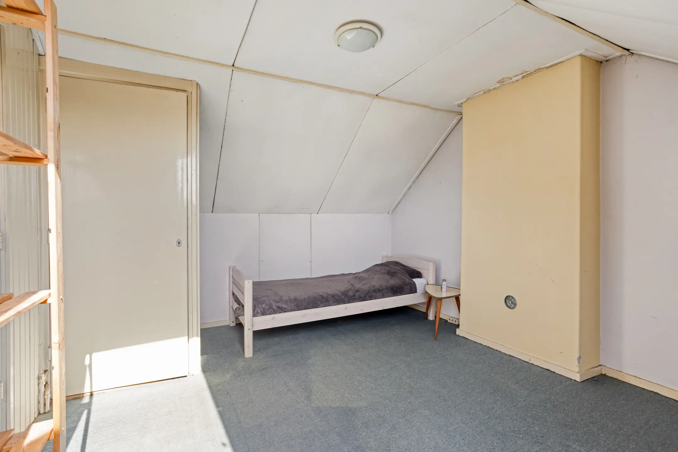 Op de verdiepingen ontvouwt zich het praktische karakter van de woning. Drie slaapkamers op de eerste verdieping bieden volop mogelijkheden of je nu een groot gezin hebt of gewoon graag wat extra ruimte om je heen hebt. De badkamer, vernieuwd in 2021, voelt fris en eigentijds aan; strak, comfortabel en precies wat je nodig hebt om de dag goed te beginnen of ontspannen af te sluiten. De voormalige badkamer is slim ingericht tot een praktische wasruimte, een detail dat het dagelijks leven nét even makkelijker maakt. Op de tweede verdieping vind je de vierde slaapkamer met een voorzolder waar veel bergruimte is achter de knieschotten en ook plek is voor de stookruimte.