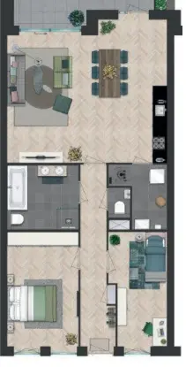 Gelegen op de tweede verdieping van dit nieuwbouwcomplex, beschikt het appartement over twee slaapkamers, een luxe badkamer, een apart toilet en een moderne woonkamer met een open keuken. Daarnaast heb je een heerlijk balkon op het zuidoosten, waar je heerlijk van de zon en het vrije uitzicht kunt genieten.