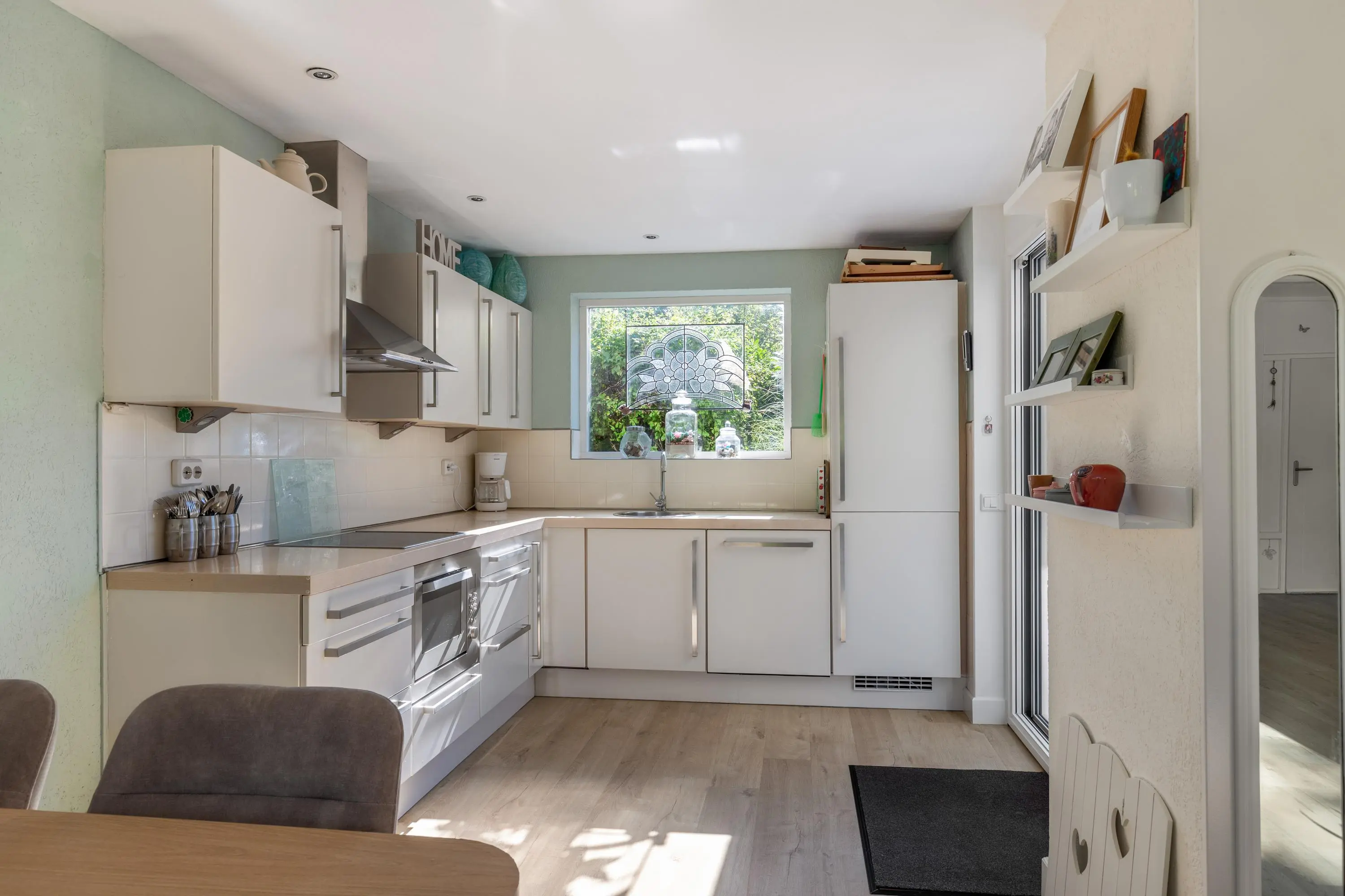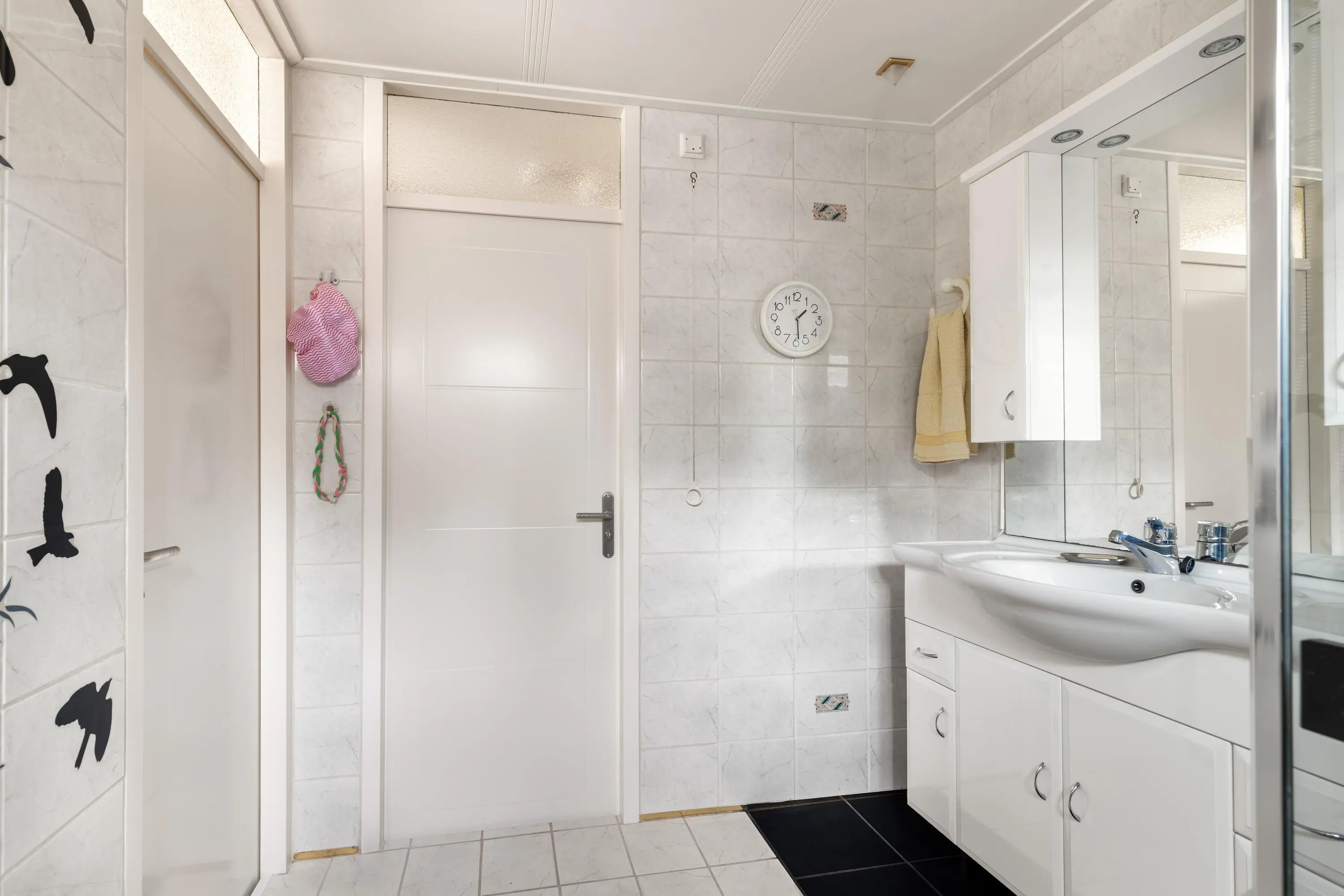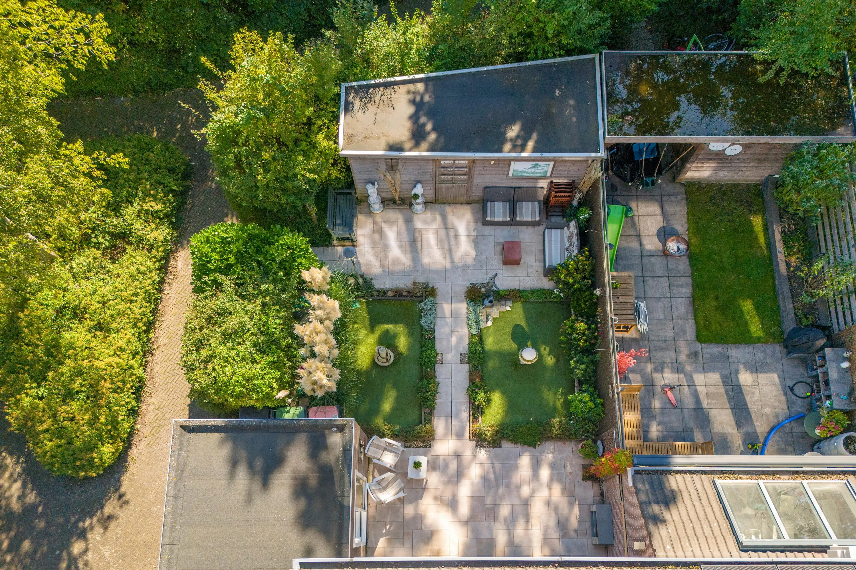 Bij binnenkomst tref je de hal met meterkast, toilet en de praktische berging met wasmachineopstelling. De royale woonkamer verrast door het vele daglicht, dankzij de ramen in de zijgevel vanwege de gunstige hoekligging en de schuifpui in de achtergevel (geplaatst in april dit jaar). De woonkamer loopt soepel over in de uitgebouwde keuken, die niet alleen veel ruimte biedt maar ook praktisch is ingericht. Hier kun je gemakkelijk met meerdere personen koken of gezellig met het gezin aan de eettafel zitten. Via de schuifpui bereik je de diepe achtertuin met ligging op het zuiden, waardoor je bijna de hele dag zon hebt. Achter in de tuin staat een aparte berging met genoeg ruimte voor fietsen of tuingereedschap. Parkeren doe je eenvoudig op de openbare weg.