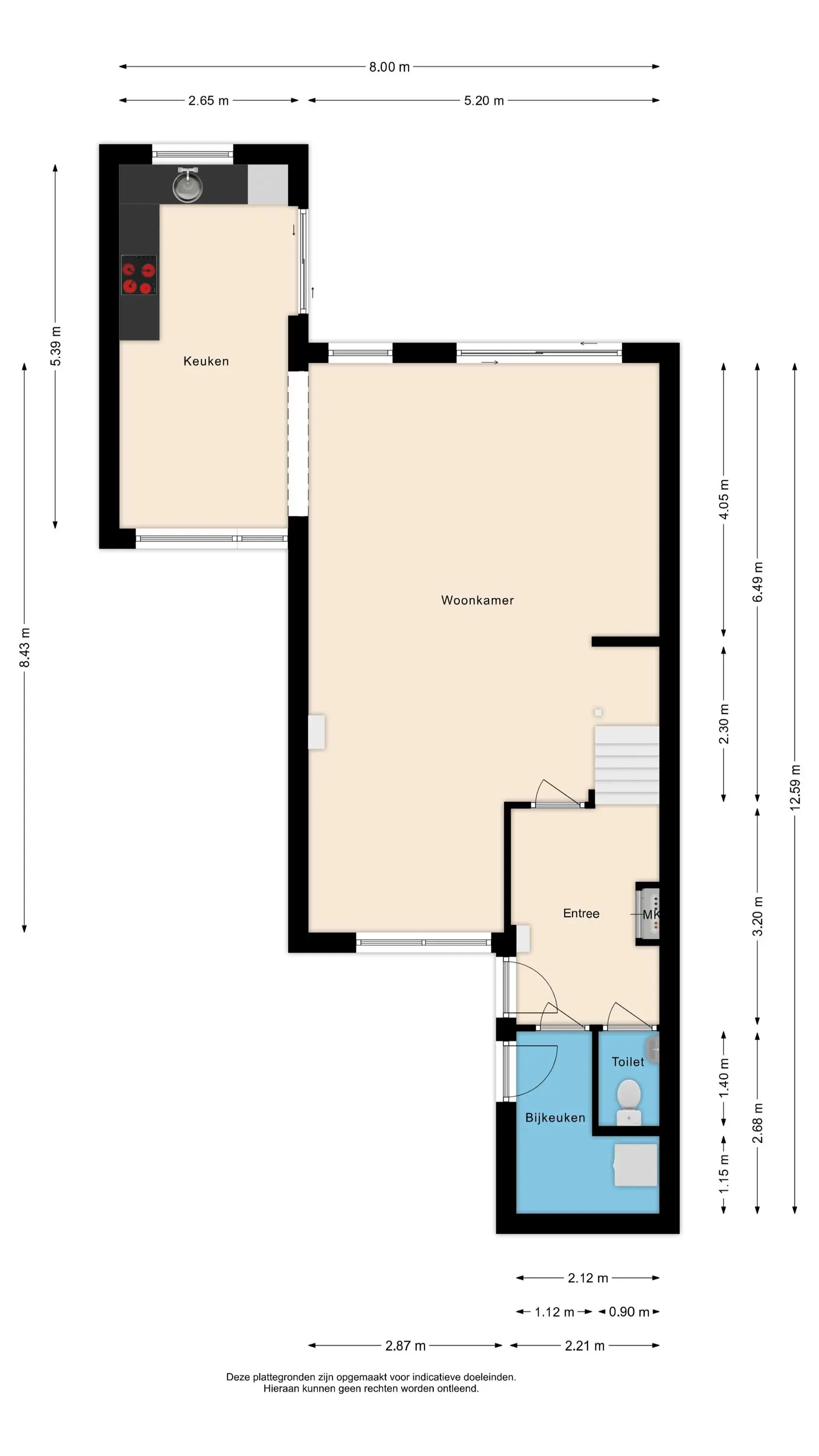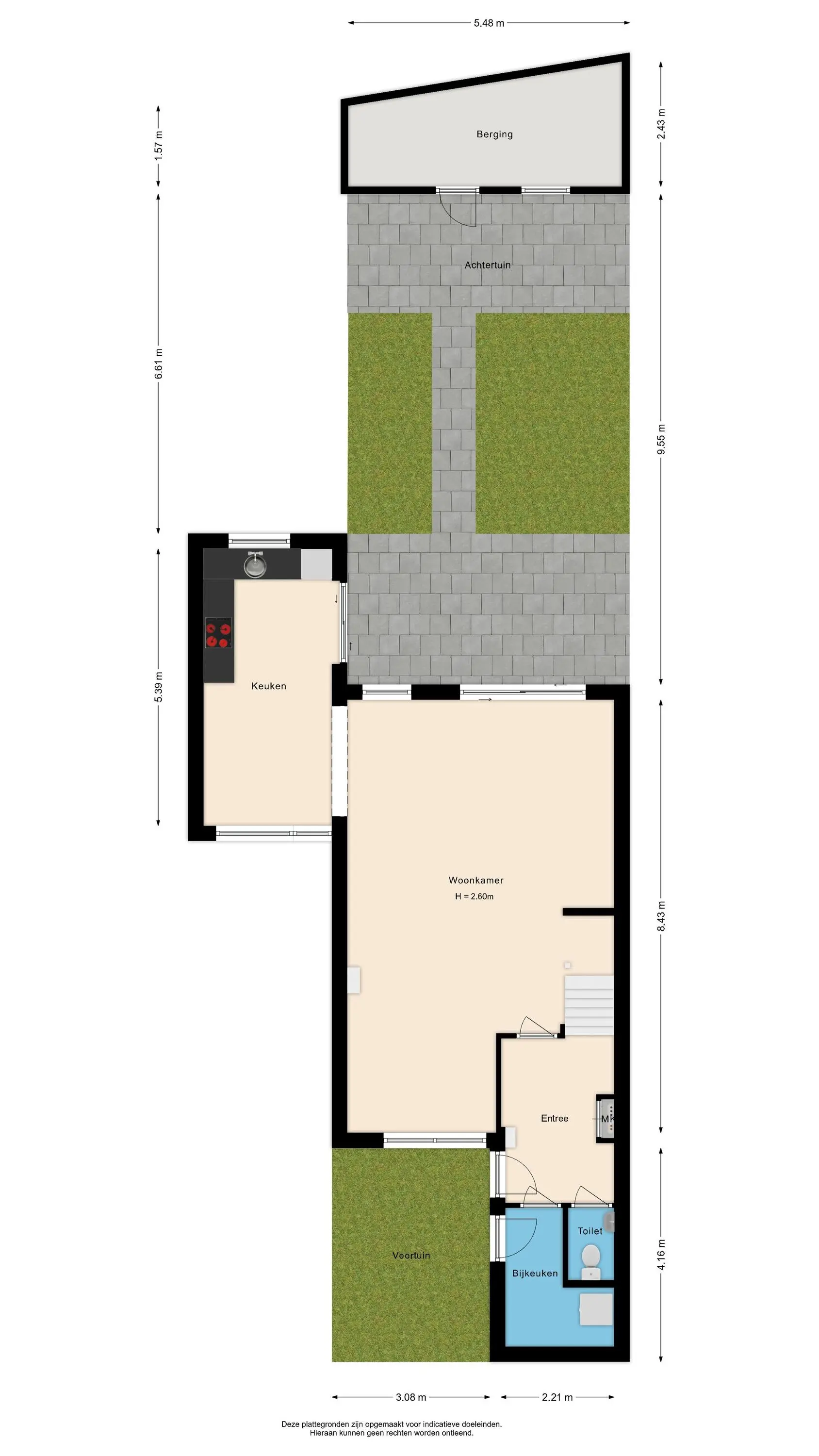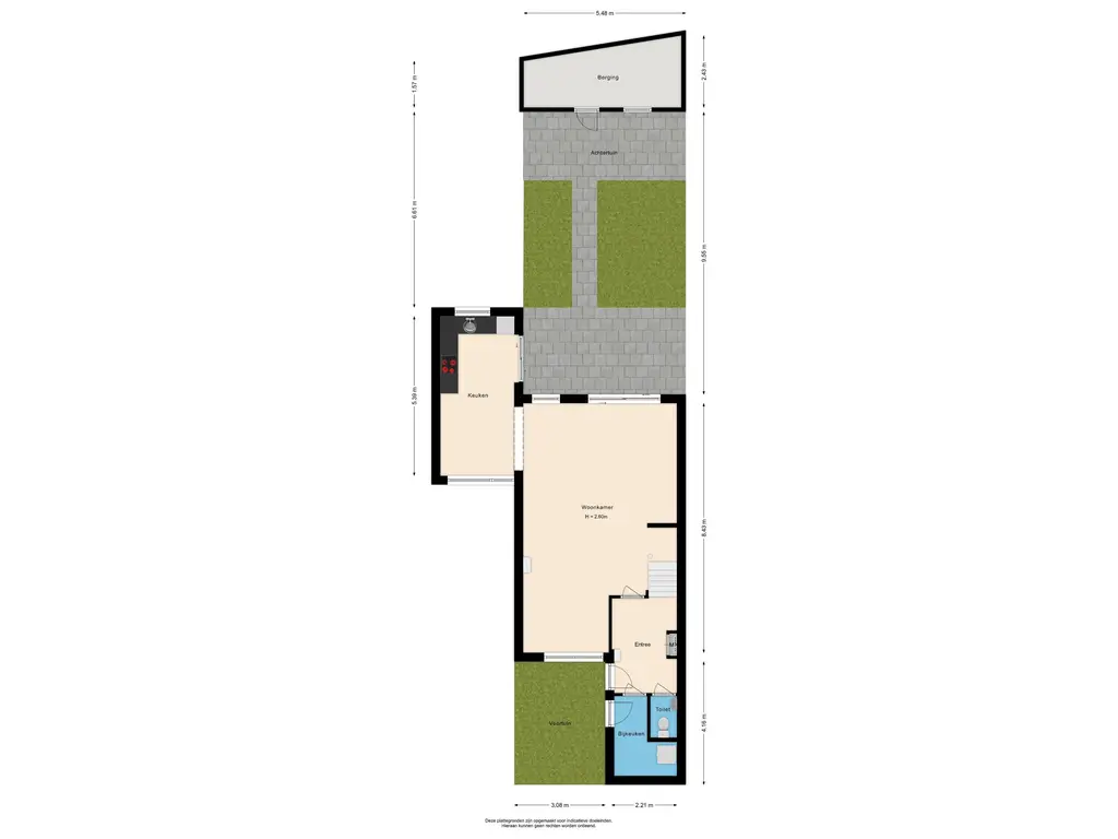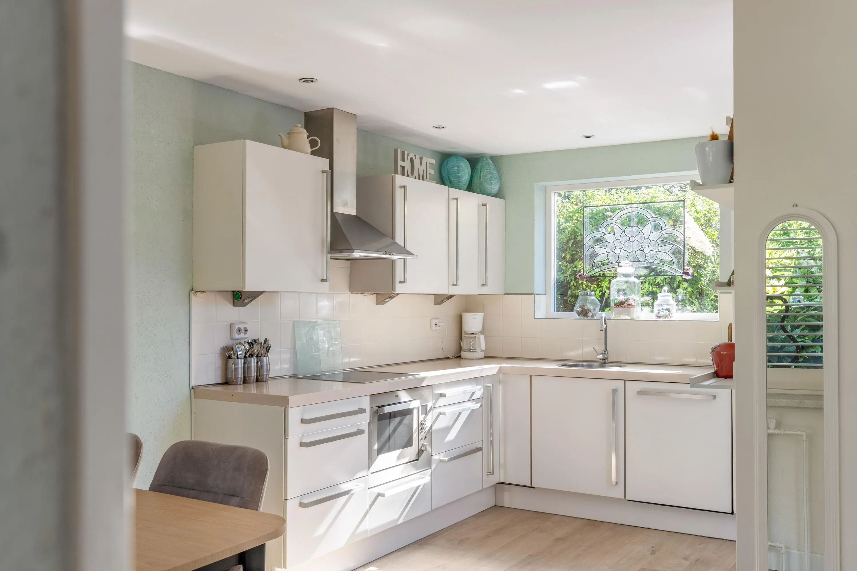 Bij binnenkomst tref je de hal met meterkast, toilet en de praktische berging met wasmachineopstelling. De royale woonkamer verrast door het vele daglicht, dankzij de ramen in de zijgevel vanwege de gunstige hoekligging en de schuifpui in de achtergevel (geplaatst in april dit jaar). De woonkamer loopt soepel over in de uitgebouwde keuken, die niet alleen veel ruimte biedt maar ook praktisch is ingericht. Hier kun je gemakkelijk met meerdere personen koken of gezellig met het gezin aan de eettafel zitten. Via de schuifpui bereik je de diepe achtertuin met ligging op het zuiden, waardoor je bijna de hele dag zon hebt. Achter in de tuin staat een aparte berging met genoeg ruimte voor fietsen of tuingereedschap. Parkeren doe je eenvoudig op de openbare weg.