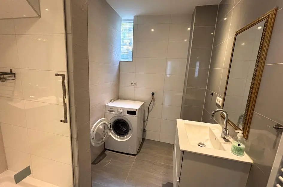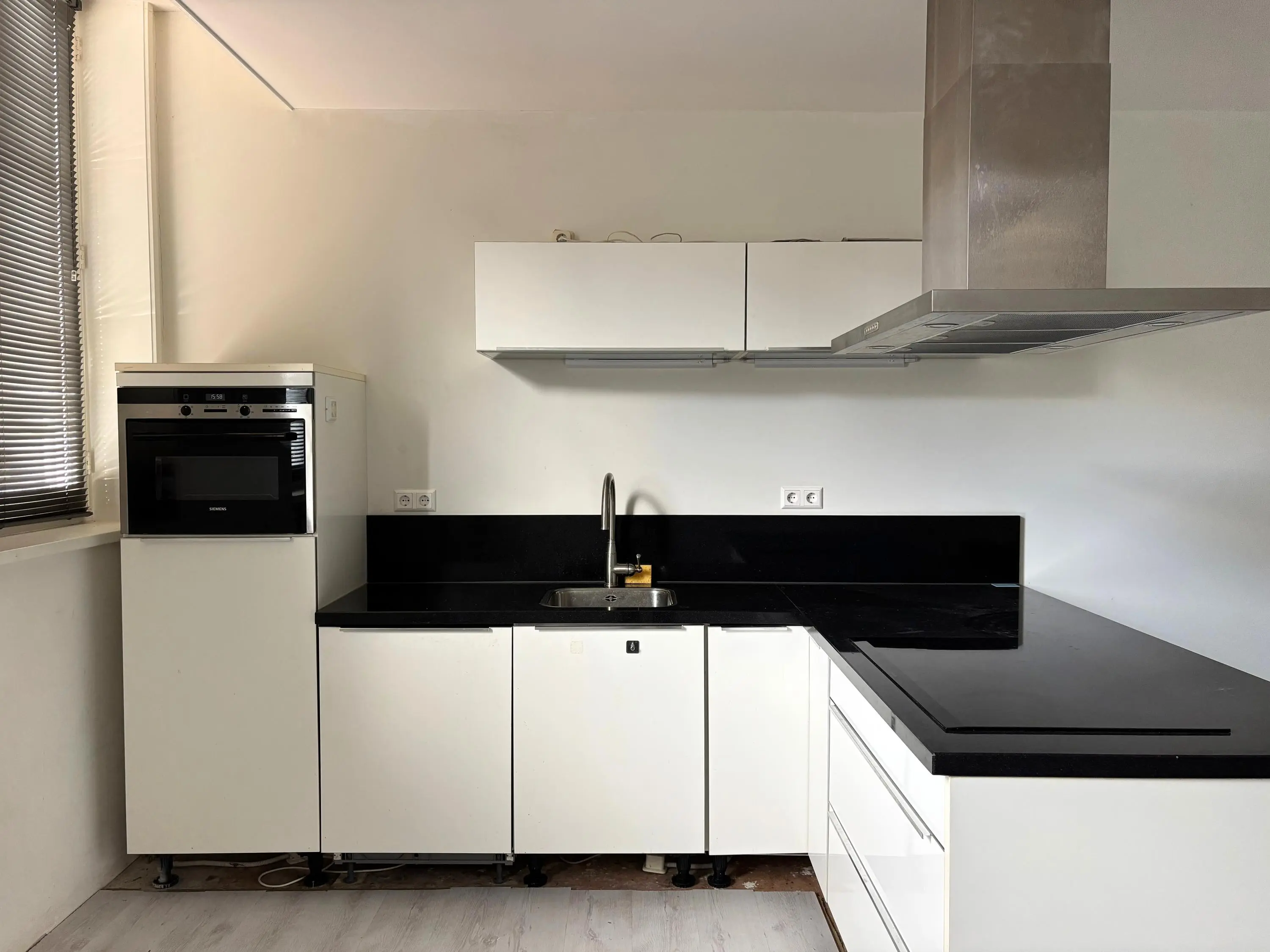 De lichte woonkamer met open keuken is voorzien van moderne inbouwapparatuur en biedt een prettige leefruimte. Vanuit de woonkamer heb je toegang tot een sfeervolle buitenruimte, ideaal om buiten te zitten. Daarnaast beschikt het appartement over een ruime slaapkamer en een nette badkamer met douche, wastafel en aansluiting voor de wasmachine. Op het gezamenlijke privé terrein is voldoende parkeergelegenheid beschikbaar.