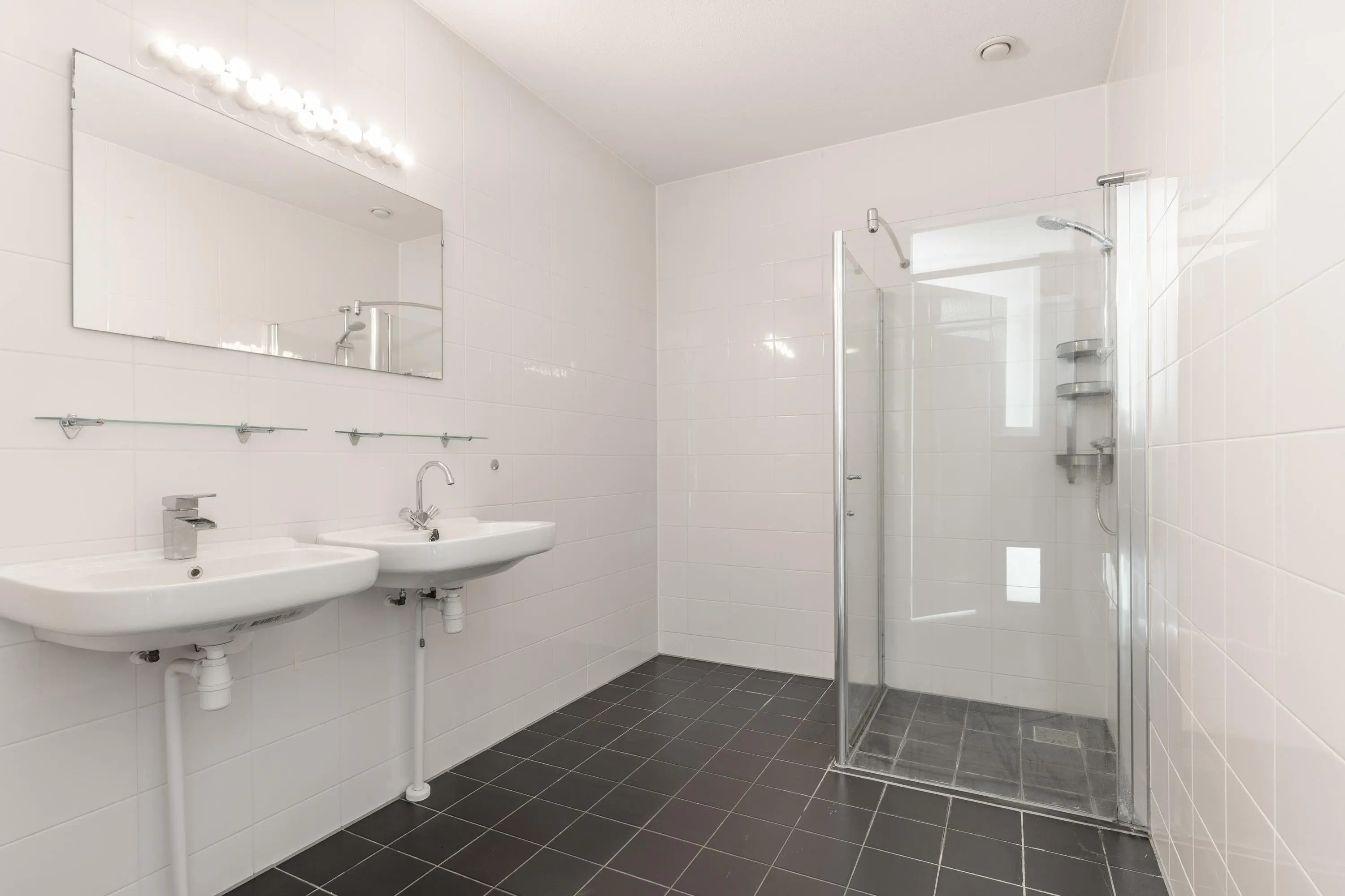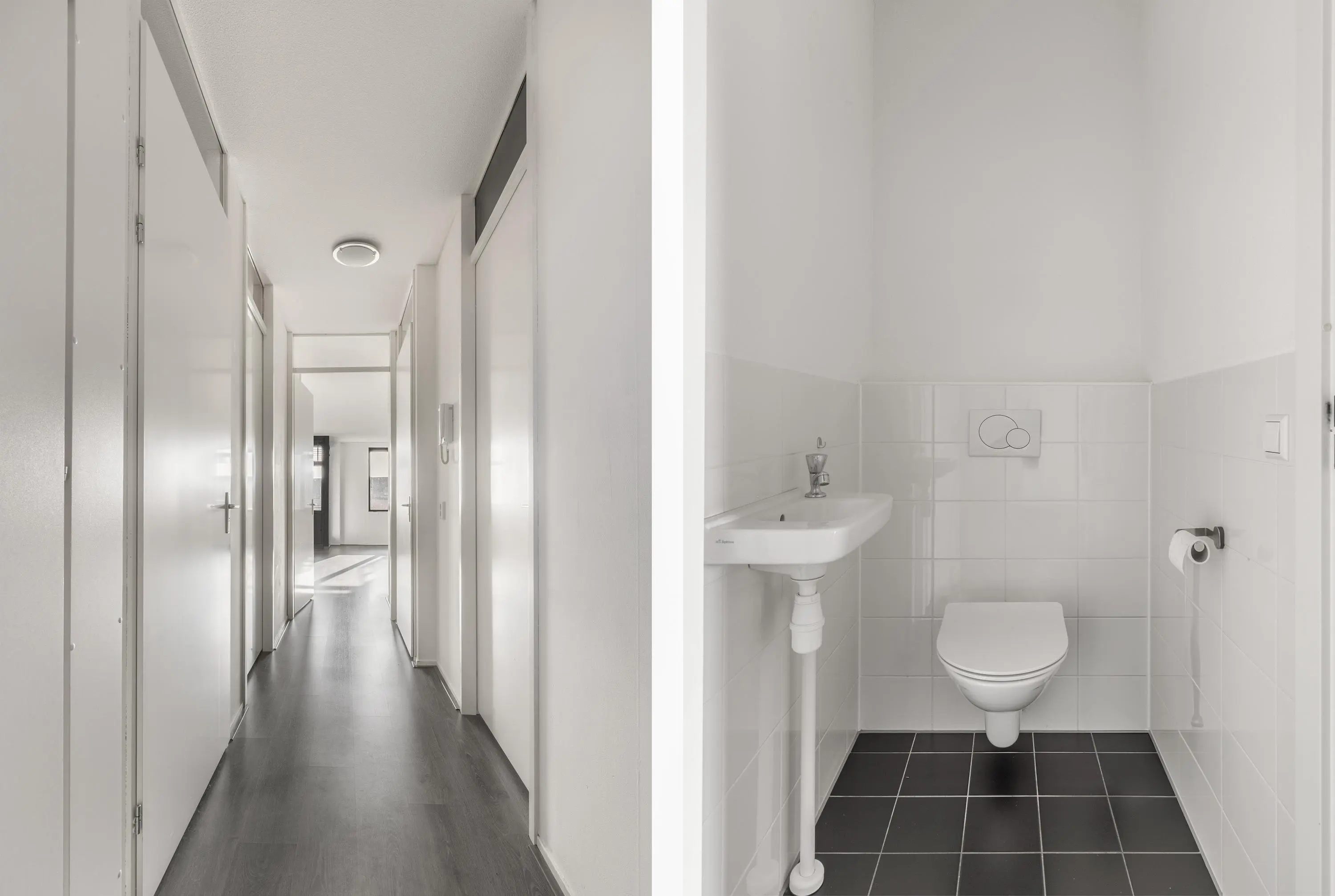 Het appartement beschikt over twee slaapkamers, beide van goed formaat. De badkamer is praktisch ingedeeld en uitgerust met een dubbele wastafel en een douche. Het toilet is apart en deze is vanuit de hal bereikbaar. Daarnaast beschikt de woning ook over een aparte bergruimte in de woning met de aansluitingen voor de wasmachine en droger. Het appartement beschikt daarnaast over een berging voor de fiets en een eigen parkeerplaats op het afgesloten parkeerdek.