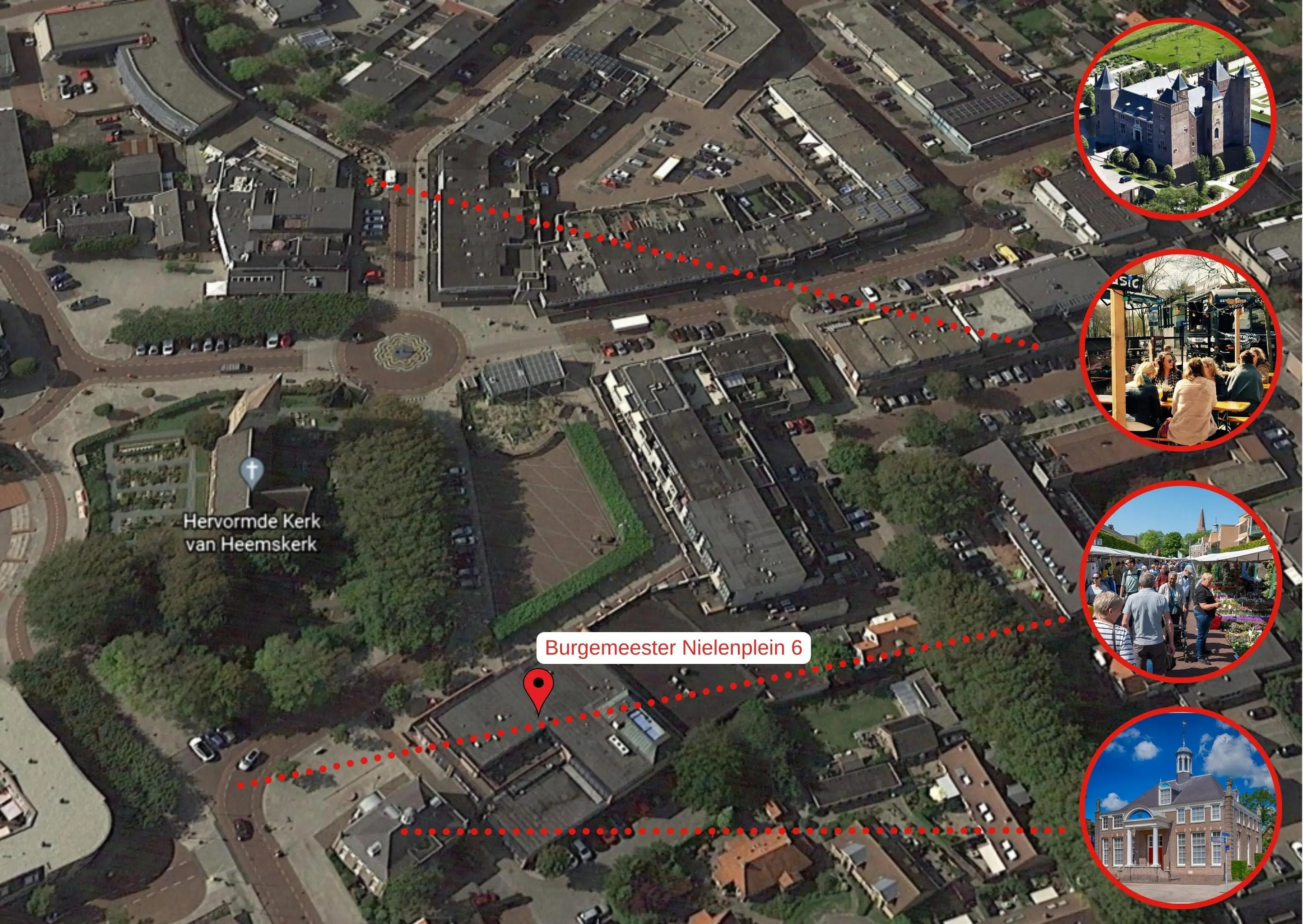 Op een A1 locatie in het centrum Heemskerk. Goed te bereiken per openbaar- en eigen vervoer.