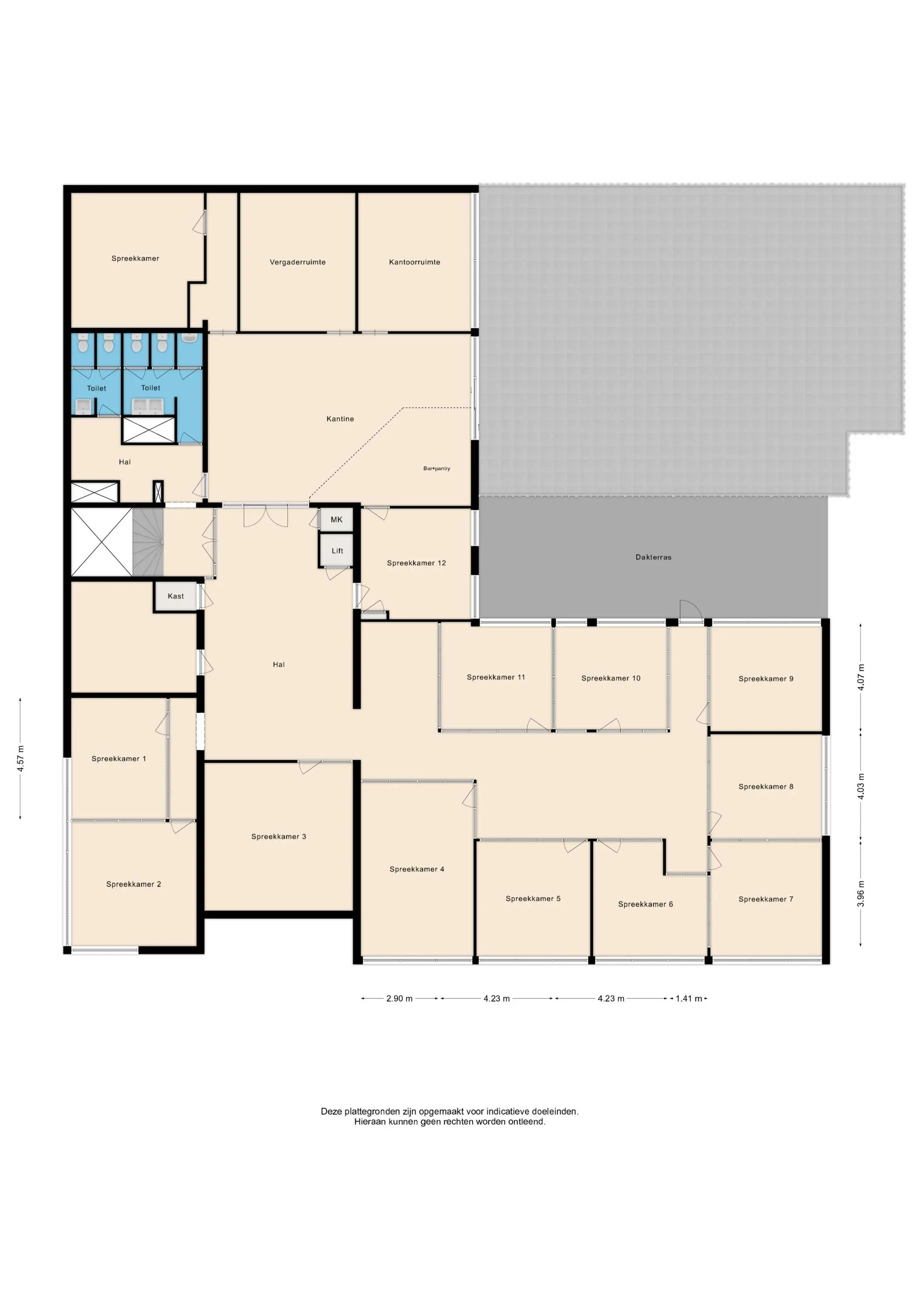 - 17 kantoor-/spreekkamers (Eventuele mogelijkheid tot verwijderen)