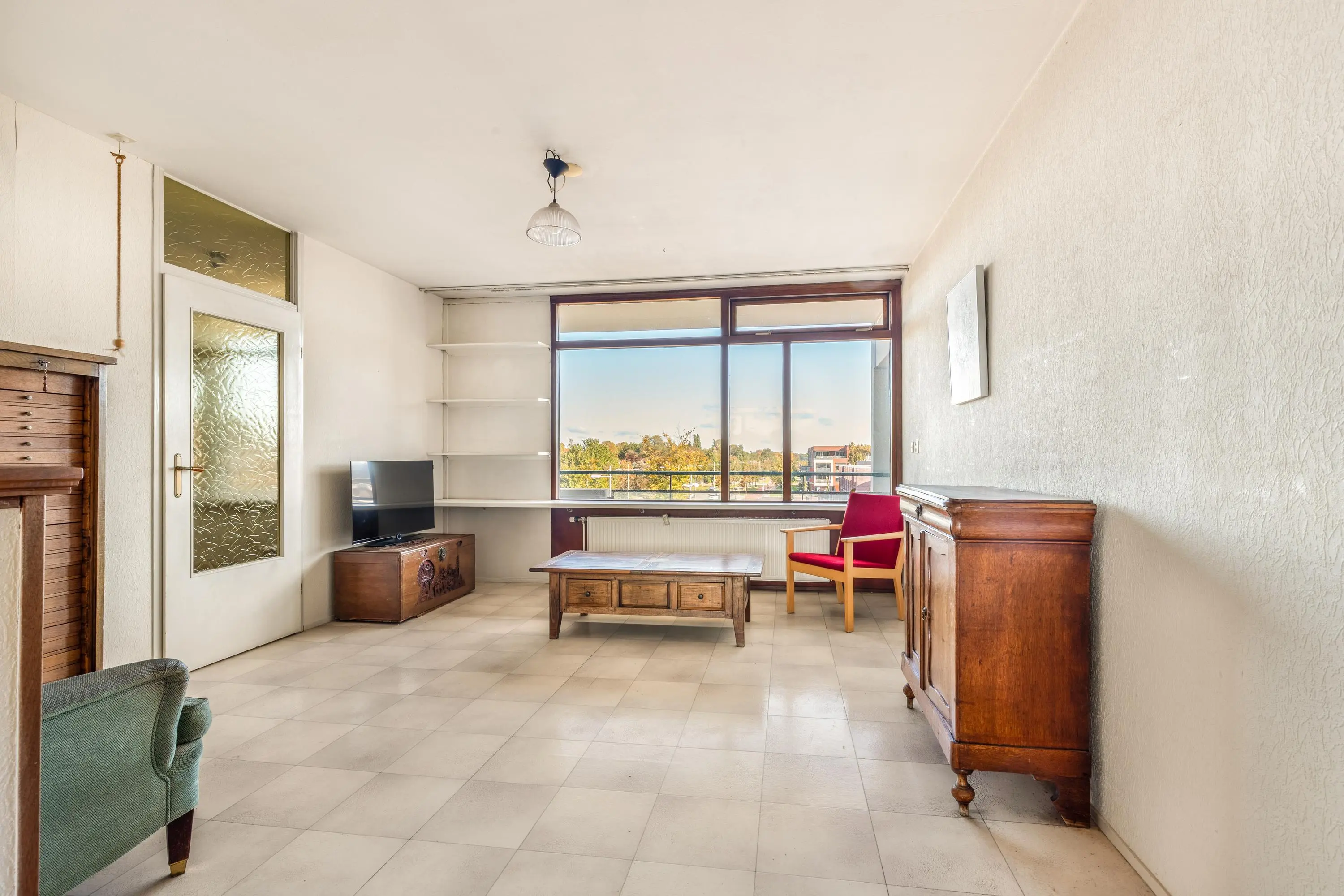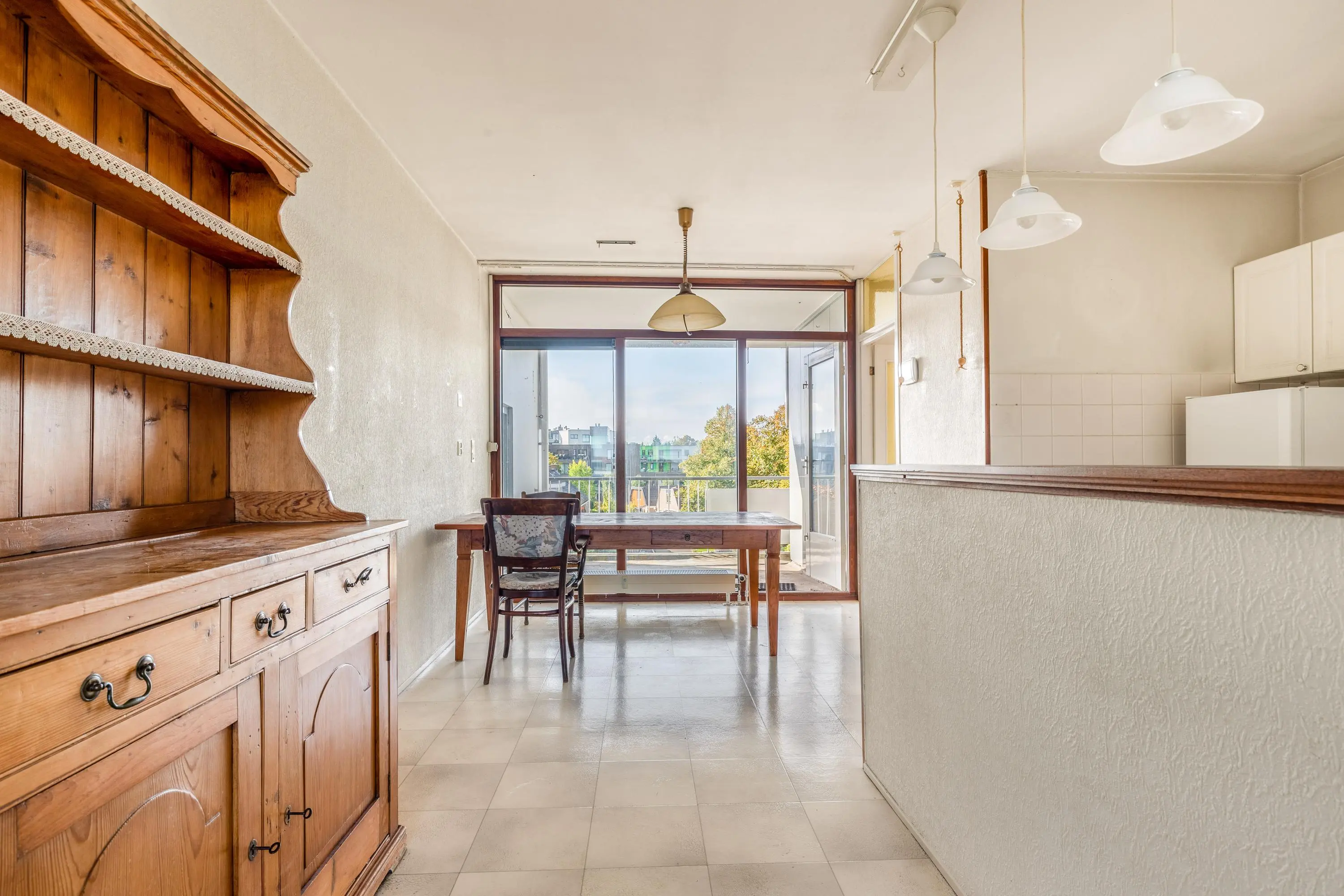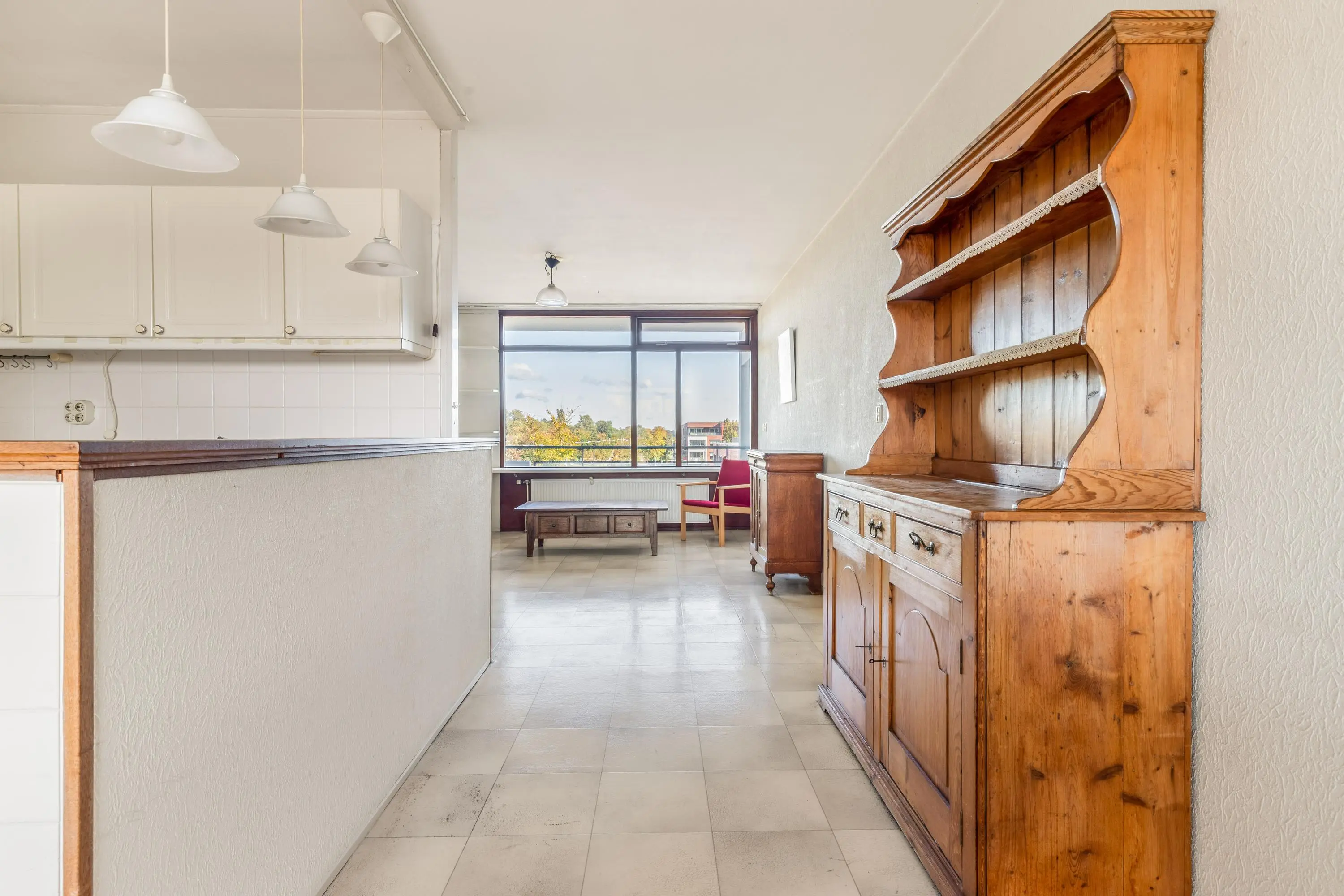 Het appartement biedt volop mogelijkheden om naar eigen smaak te maken. Aan de voorzijde vind je de ruime, lichte woonkamer met vrij uitzicht. In het midden is de nette open keuken het hart van het appartement. Door de raampartijen aan zowel de voor- als achterzijde van de woonkamer, valt er veel licht naar binnen waardoor de woning prettig overzichtelijk is. De keuken is praktisch ingericht met een losse koel- en vriescombinatie en een 4-pits gasfornuis met oven. Aan de achterzijde bevindt zich het eetgedeelte dat aansluit op de keuken. Op het zuiden gelegen ligt het heerlijke zonnige balkon. Dit is de ideale plek om te relaxen in het zonnetje!