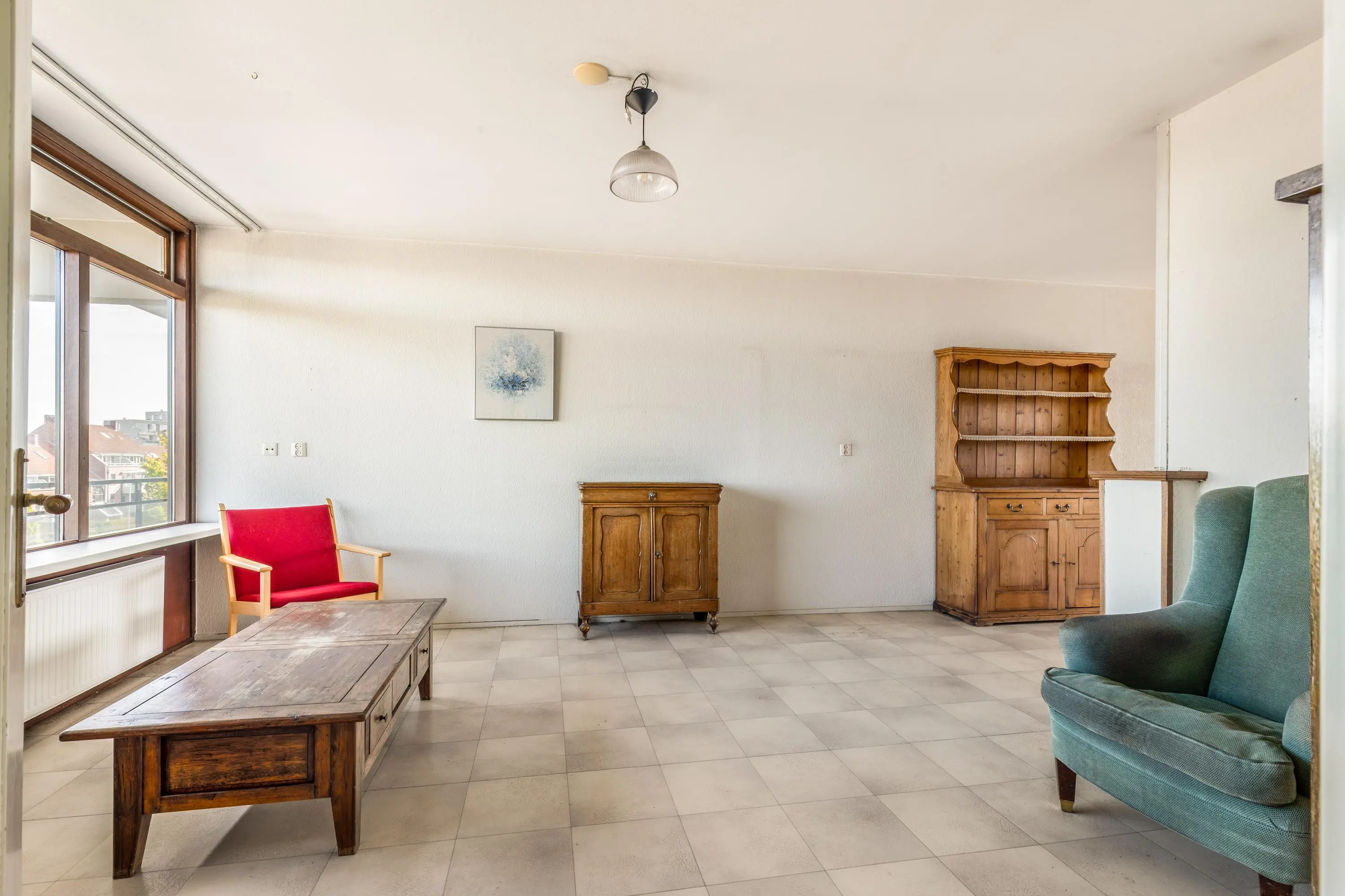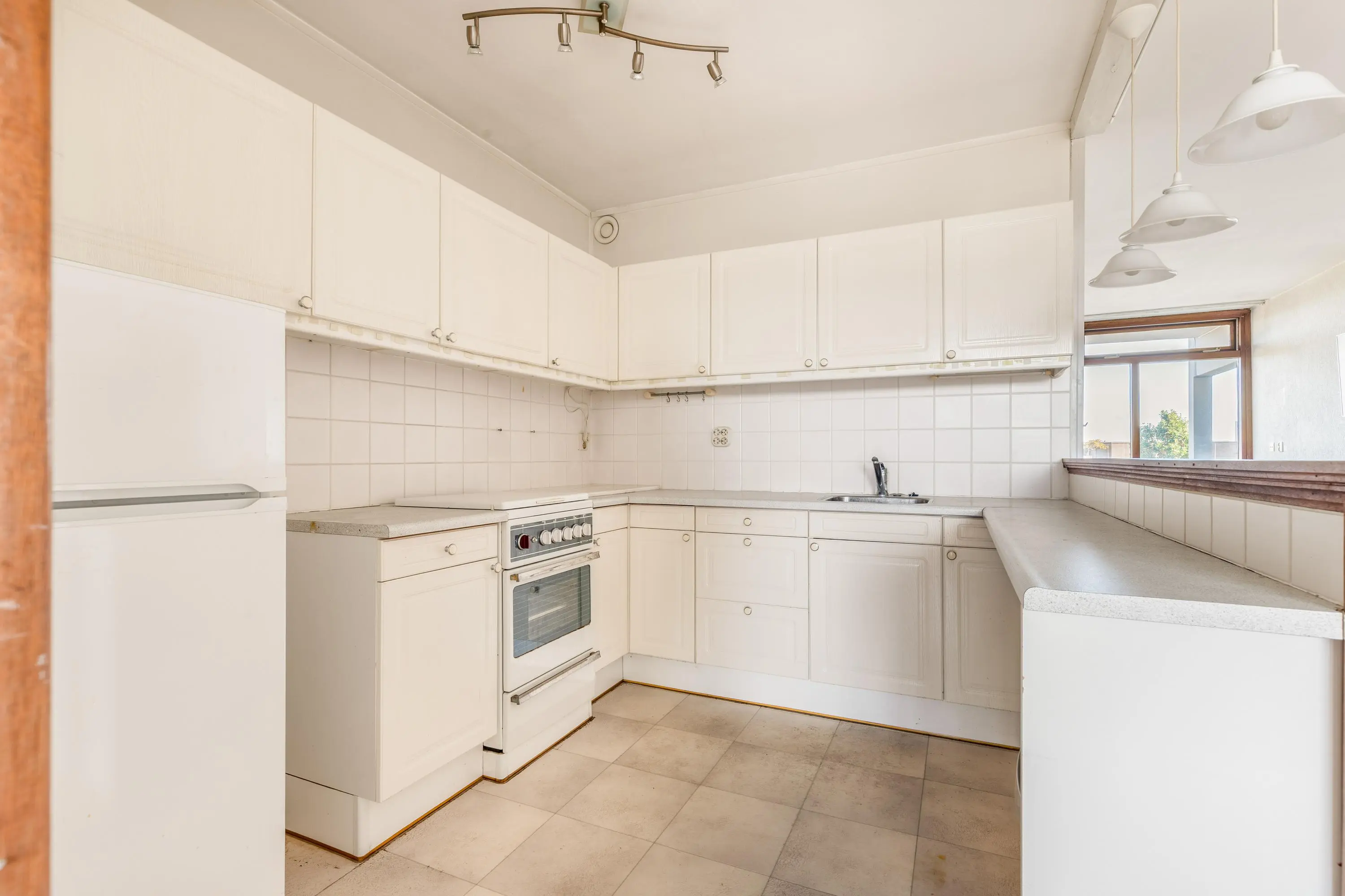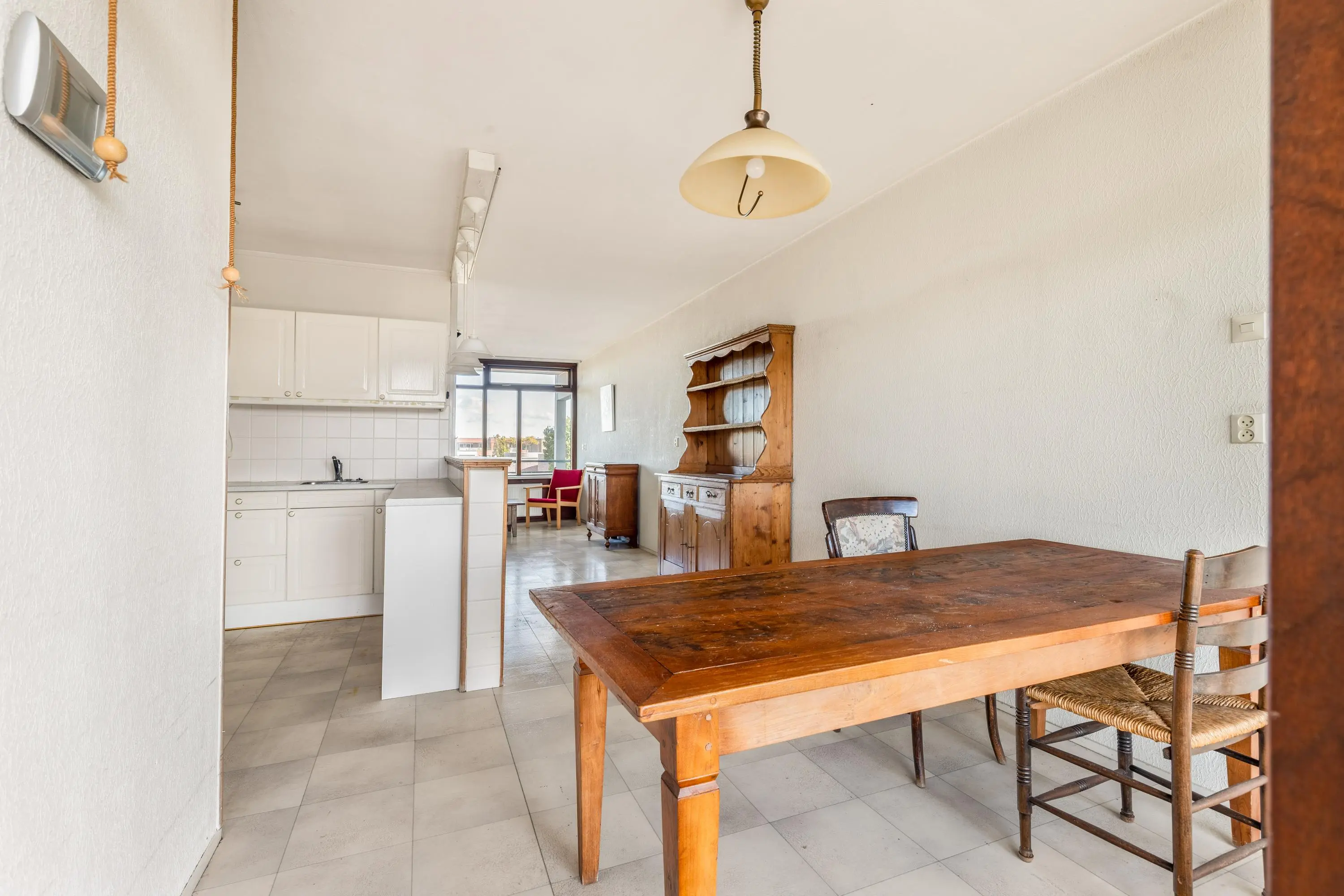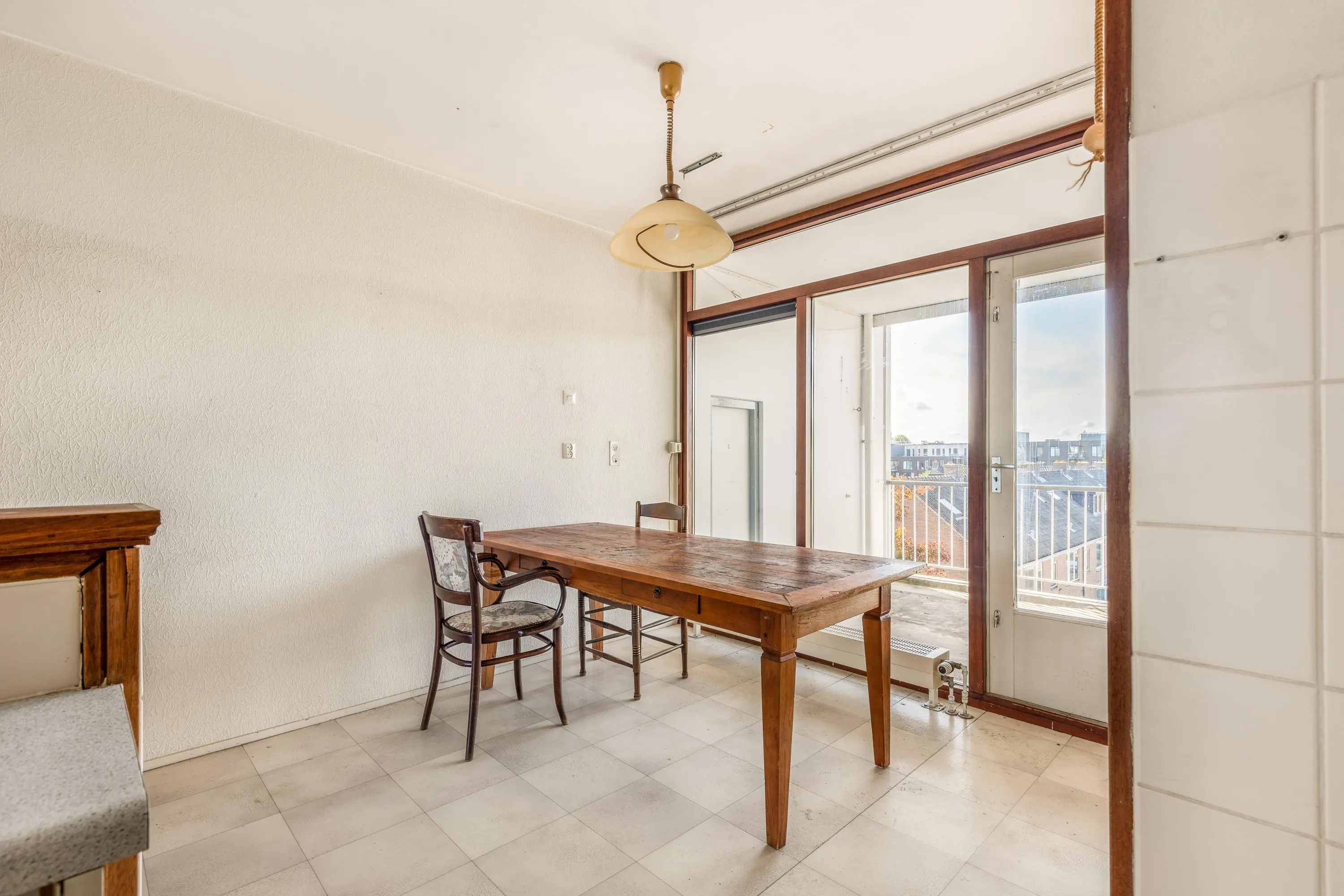 Het appartement biedt volop mogelijkheden om naar eigen smaak te maken. Aan de voorzijde vind je de ruime, lichte woonkamer met vrij uitzicht. In het midden is de nette open keuken het hart van het appartement. Door de raampartijen aan zowel de voor- als achterzijde van de woonkamer, valt er veel licht naar binnen waardoor de woning prettig overzichtelijk is. De keuken is praktisch ingericht met een losse koel- en vriescombinatie en een 4-pits gasfornuis met oven. Aan de achterzijde bevindt zich het eetgedeelte dat aansluit op de keuken. Op het zuiden gelegen ligt het heerlijke zonnige balkon. Dit is de ideale plek om te relaxen in het zonnetje!