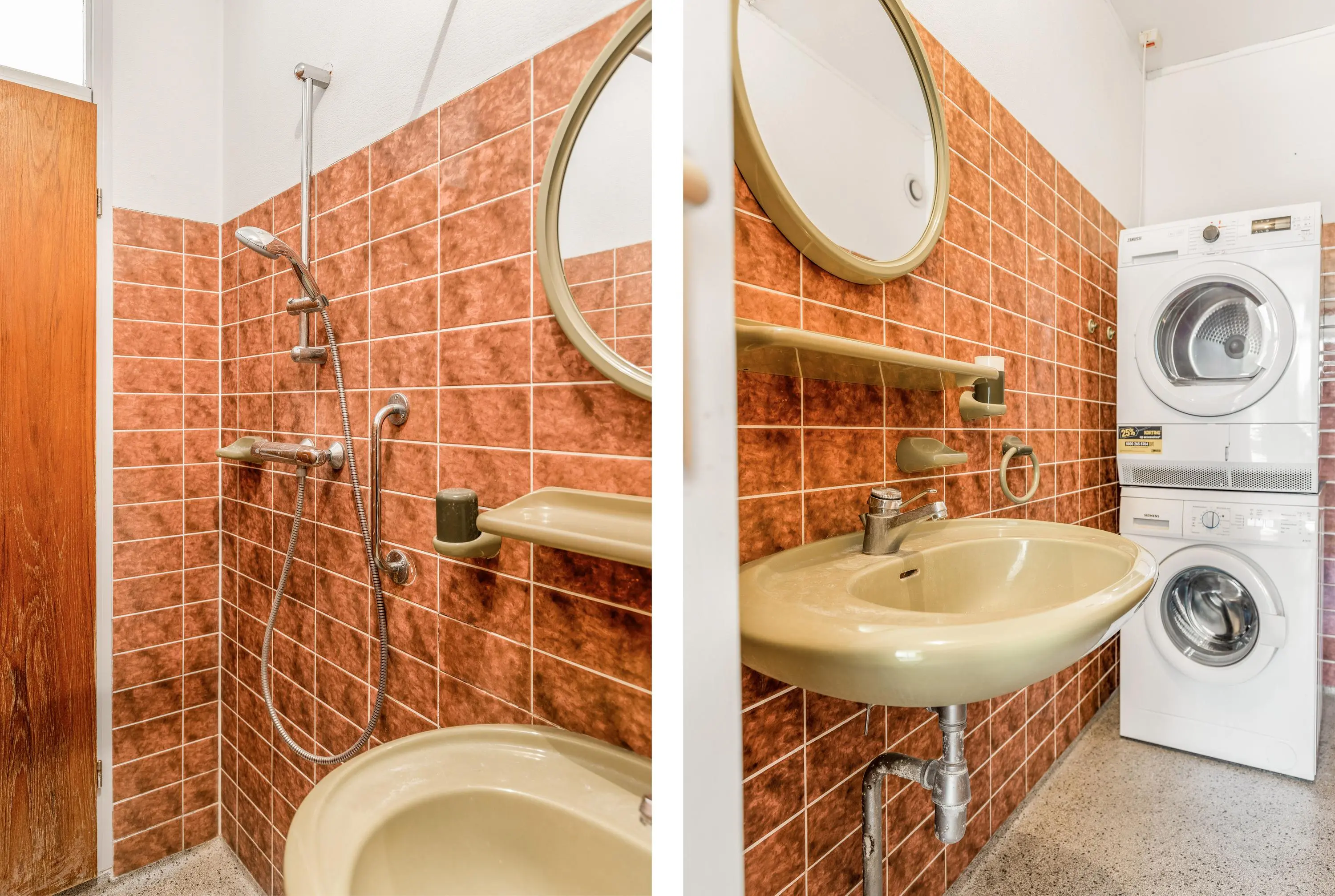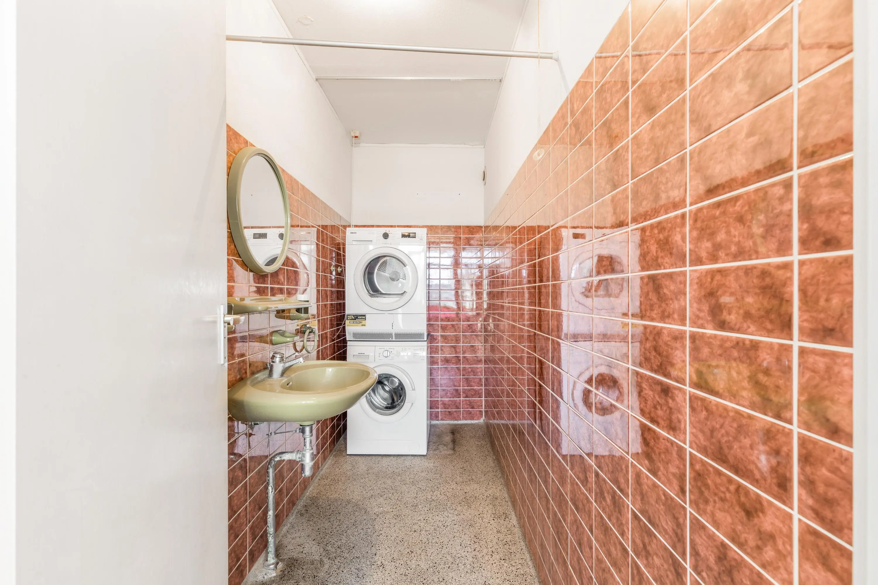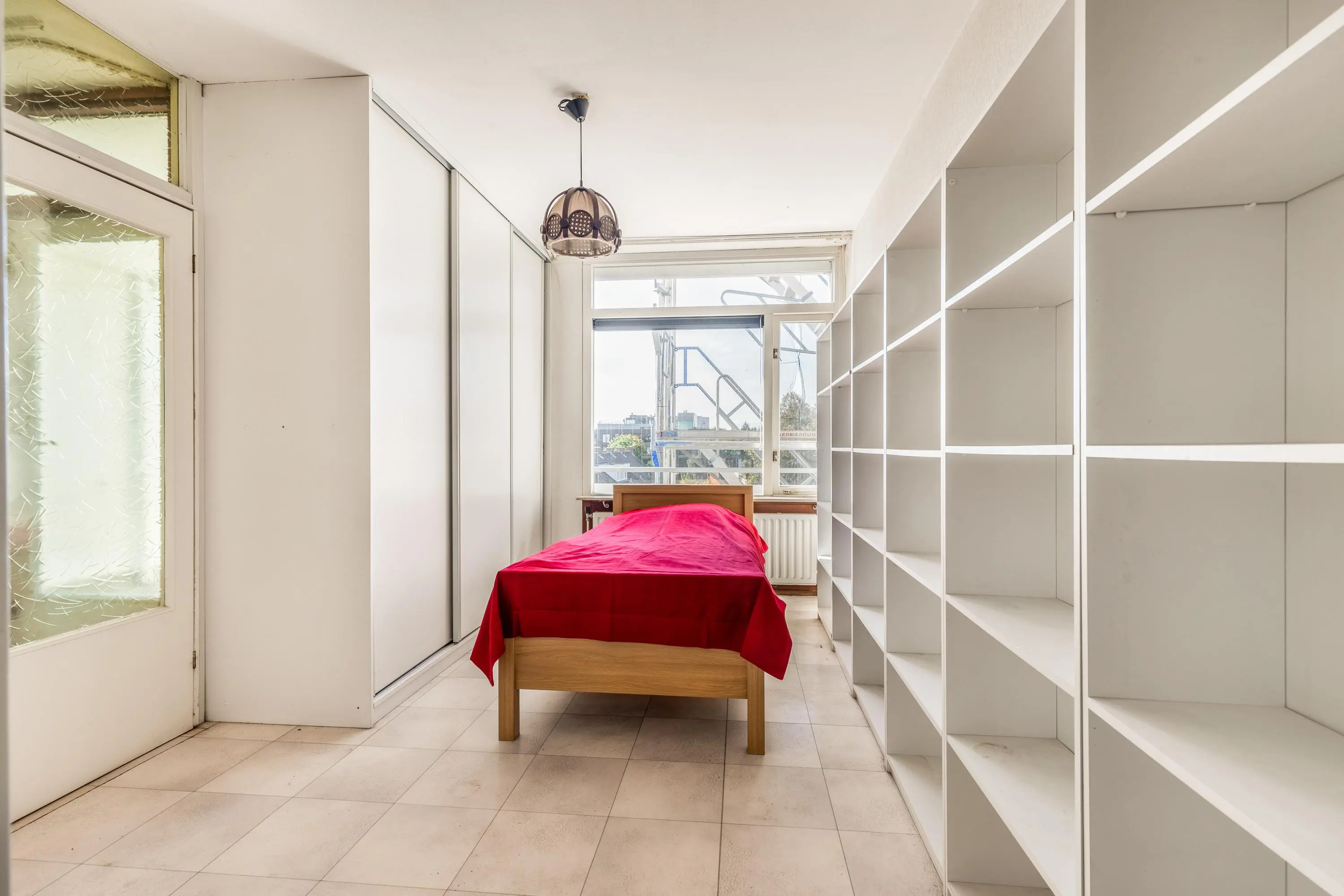 De slaapkamer biedt voldoende ruimte en is aan de achterzijde van de woning gelegen, waardoor je er veel rust ervaart. Direct aan de slaapkamer gelegen is een eenvoudige badkamer voorzien van een ruime inloopdouche en een wastafel. Tevens vind je hier de wasmachine- en drogeropstelling. In de hal vind je het separate toilet.