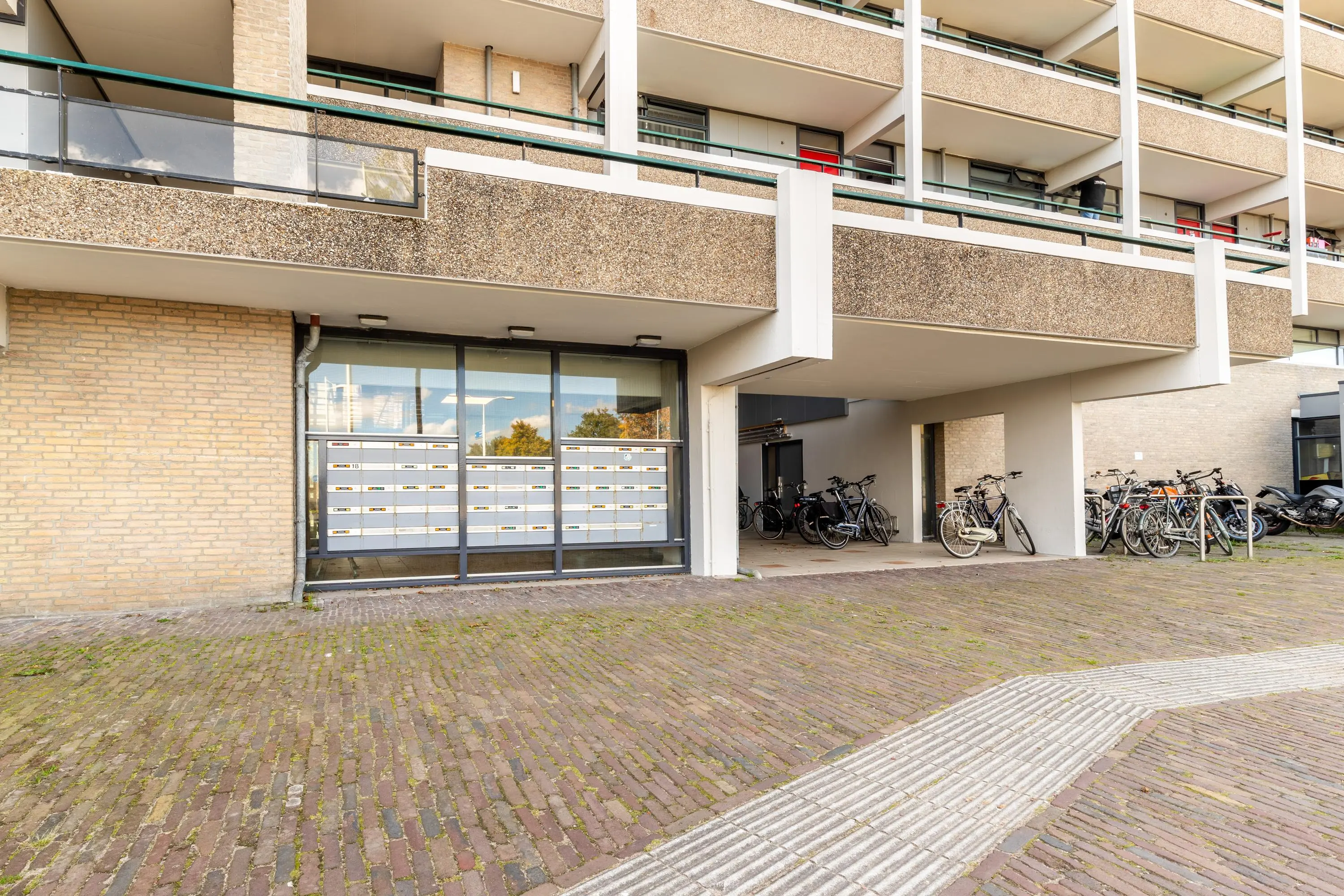 Het complex beschikt over liften en aan de achterzijde is er voldoende parkeergelegenheid. Op de begane grond zijn meerdere entrees, zowel aan de voorzijde als aan de achterzijde van het gebouw. Bij de entree vind je het bellentableau voorzien van intercominstallatie, de brievenbussen en de toegang naar de bergingen. Via de trap of lift is de derde verdieping eenvoudig te bereiken.