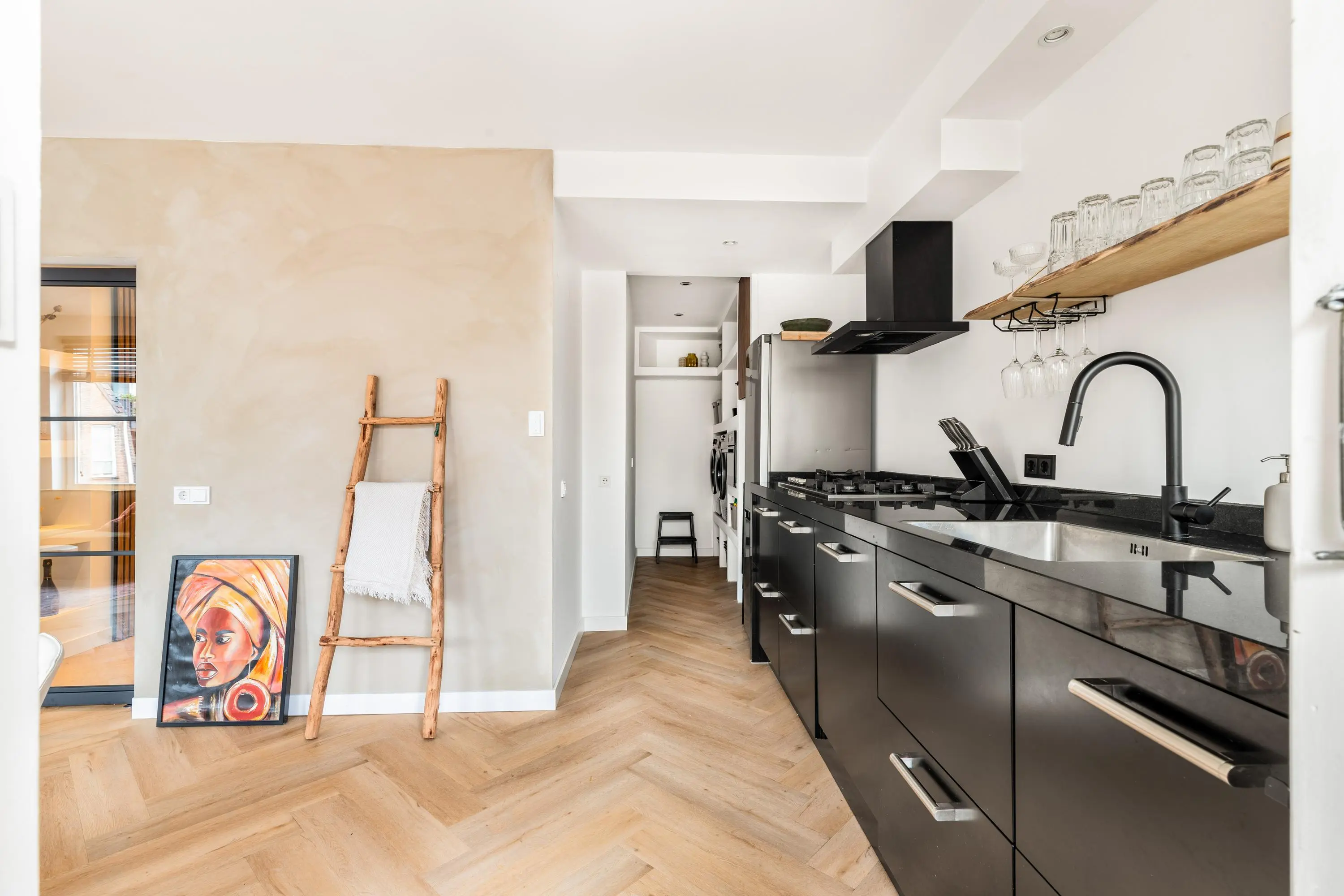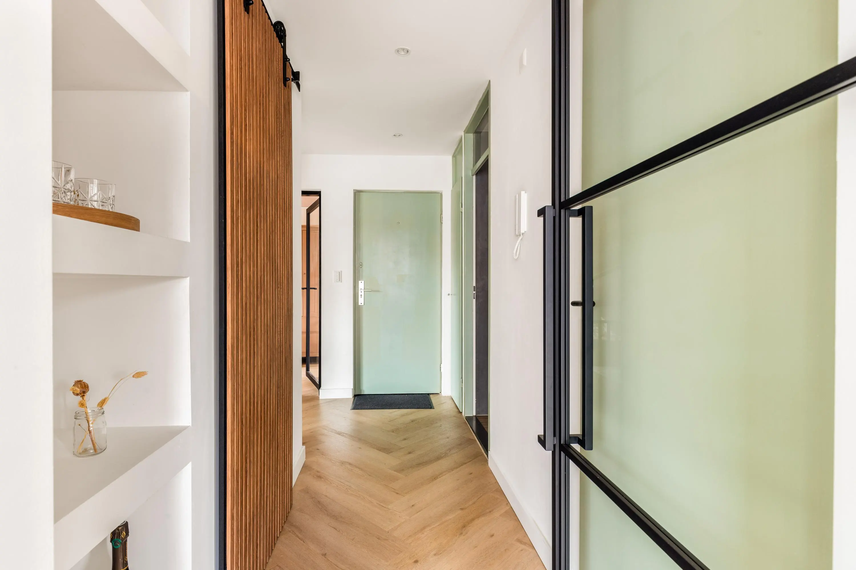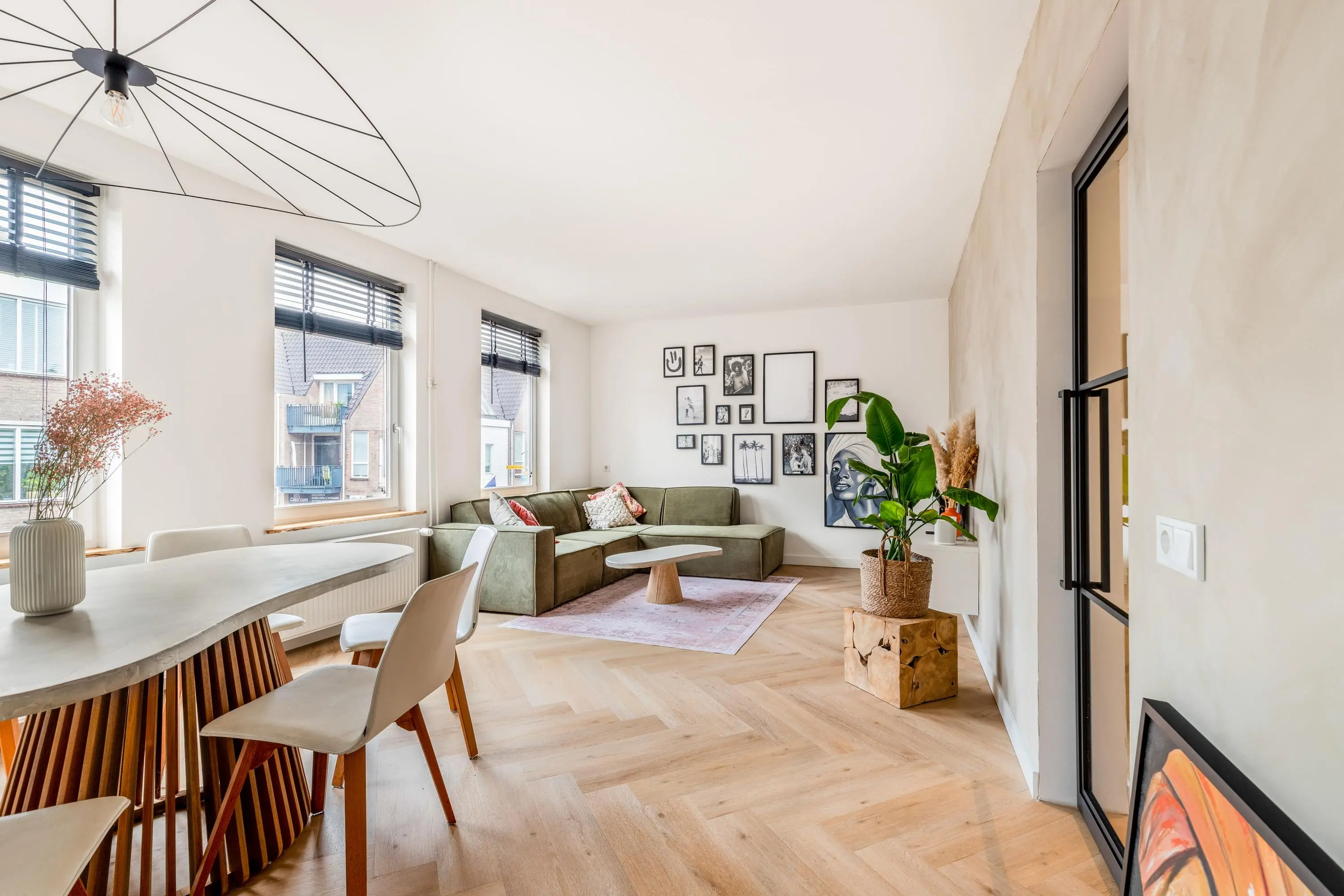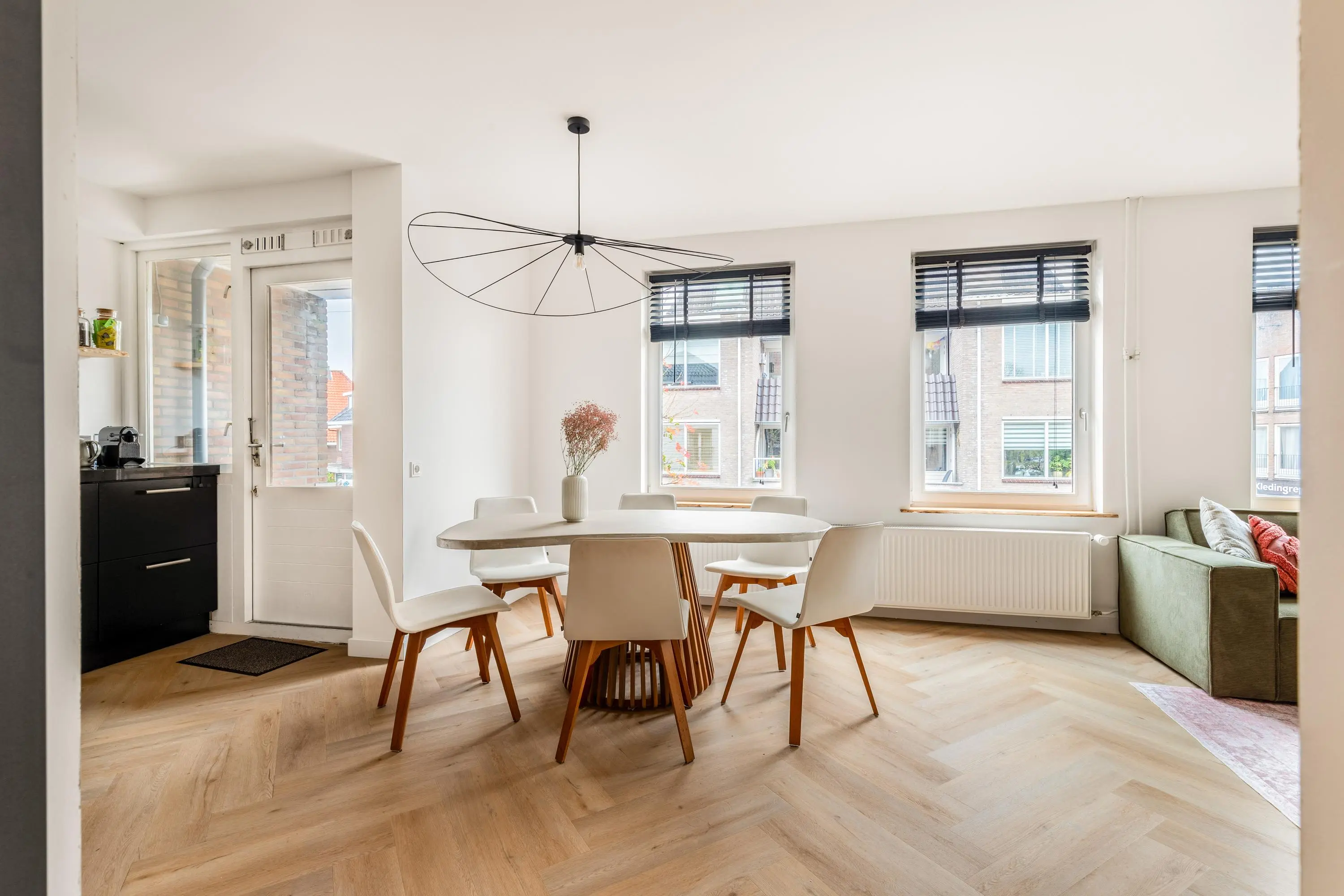 Het 3-kamerappartement bevindt zich op de eerste verdieping en is volledig gerenoveerd en voorzien van dubbel glas en HR glas. Het resultaat is dan ook verbluffend; een stijlvol, licht en tot in de puntjes afgewerkt geheel waar je zó in kunt trekken.
