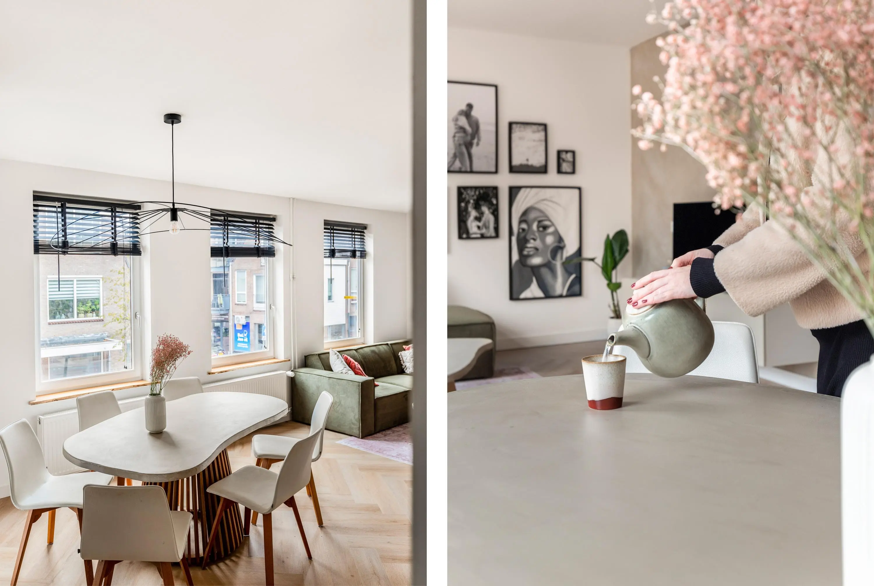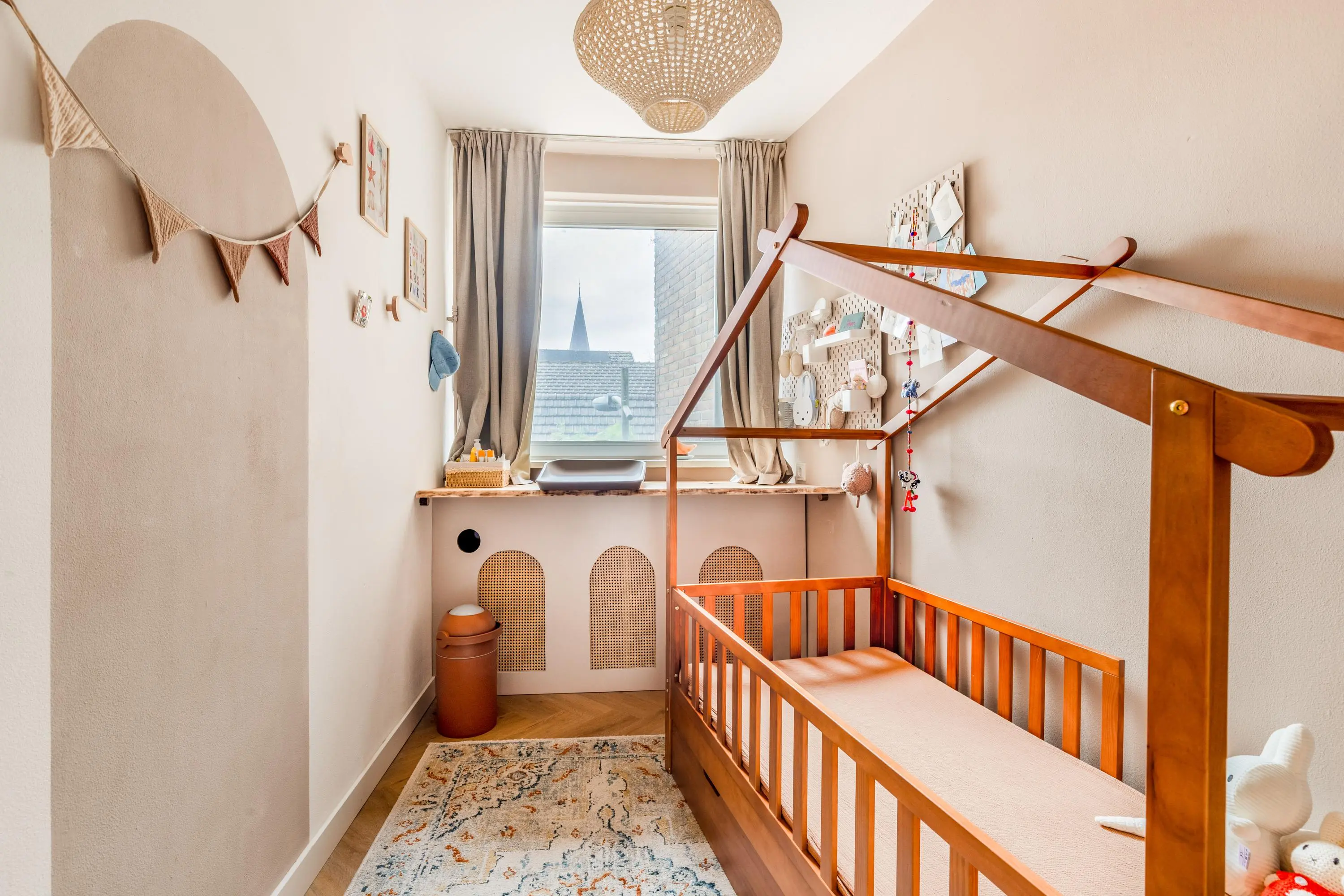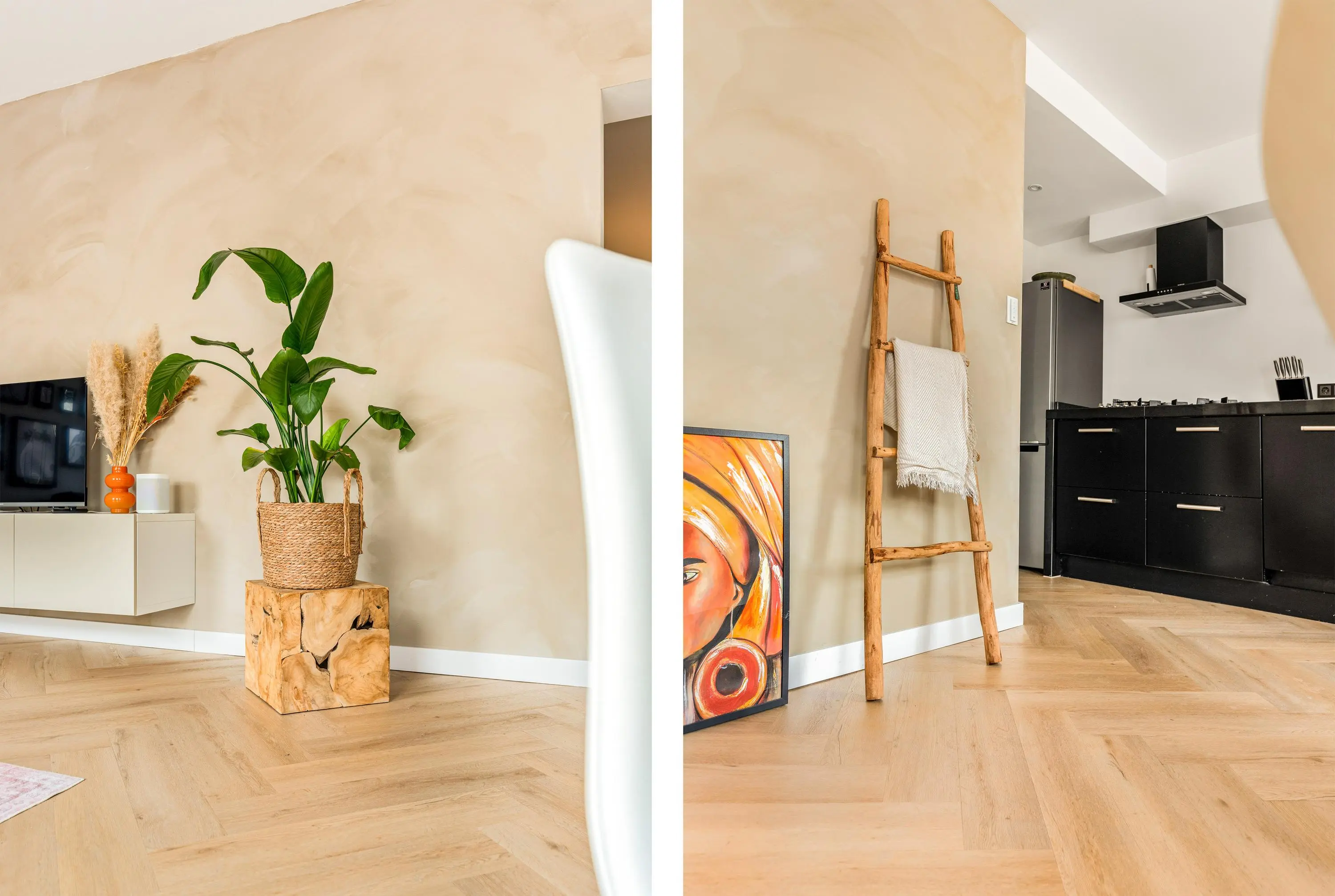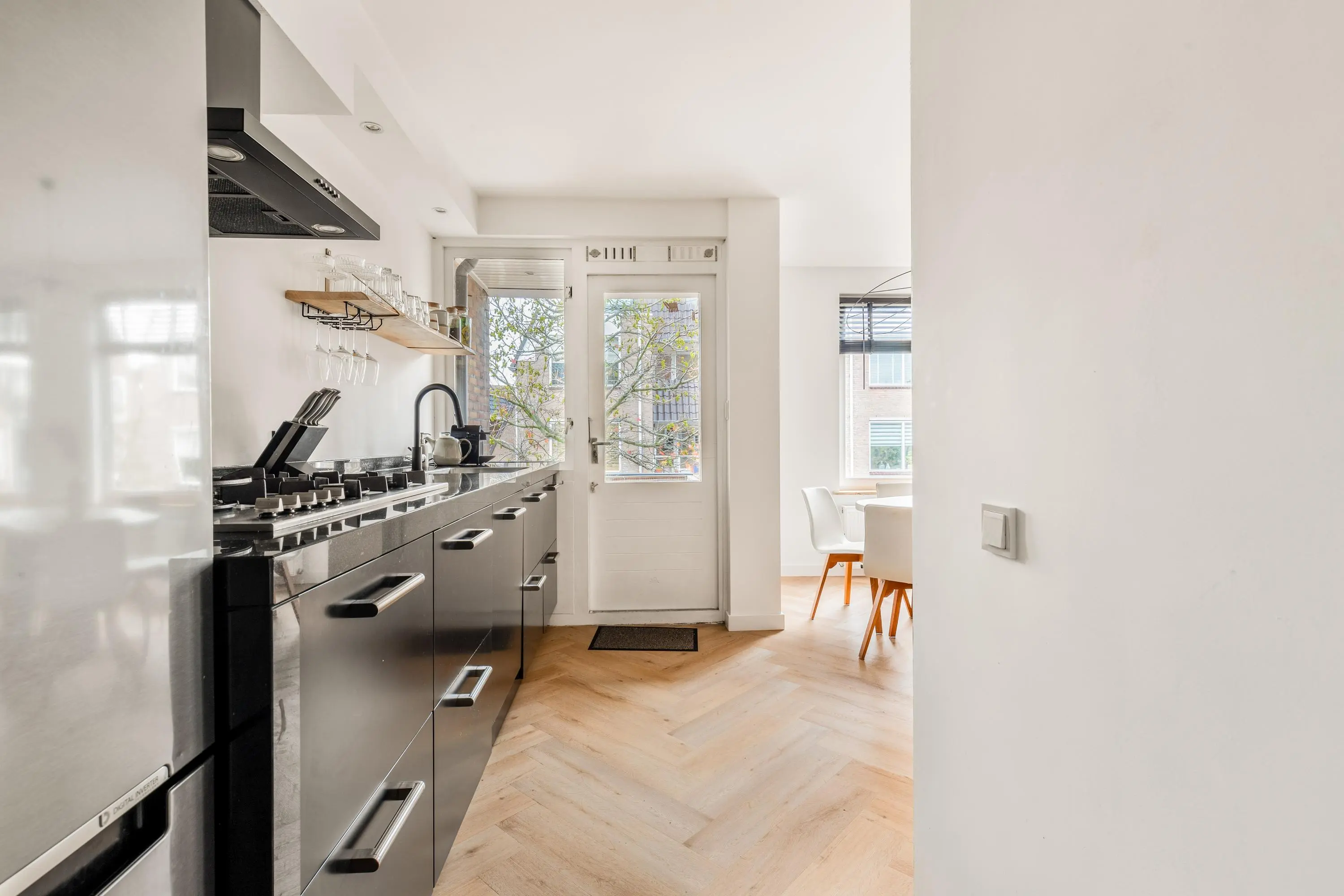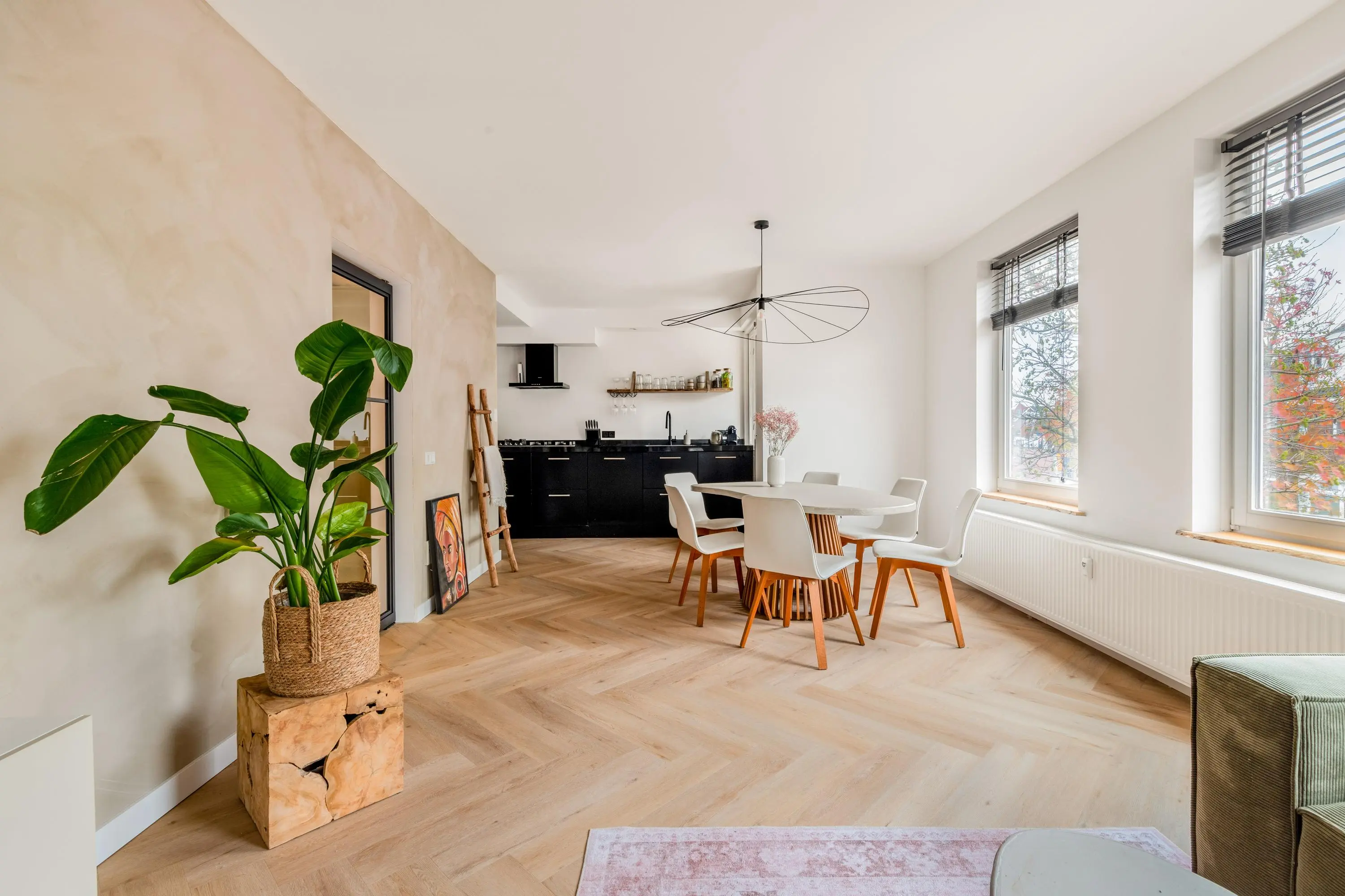 Het 3-kamerappartement bevindt zich op de eerste verdieping en is volledig gerenoveerd en voorzien van dubbel glas en HR glas. Het resultaat is dan ook verbluffend; een stijlvol, licht en tot in de puntjes afgewerkt geheel waar je zó in kunt trekken.