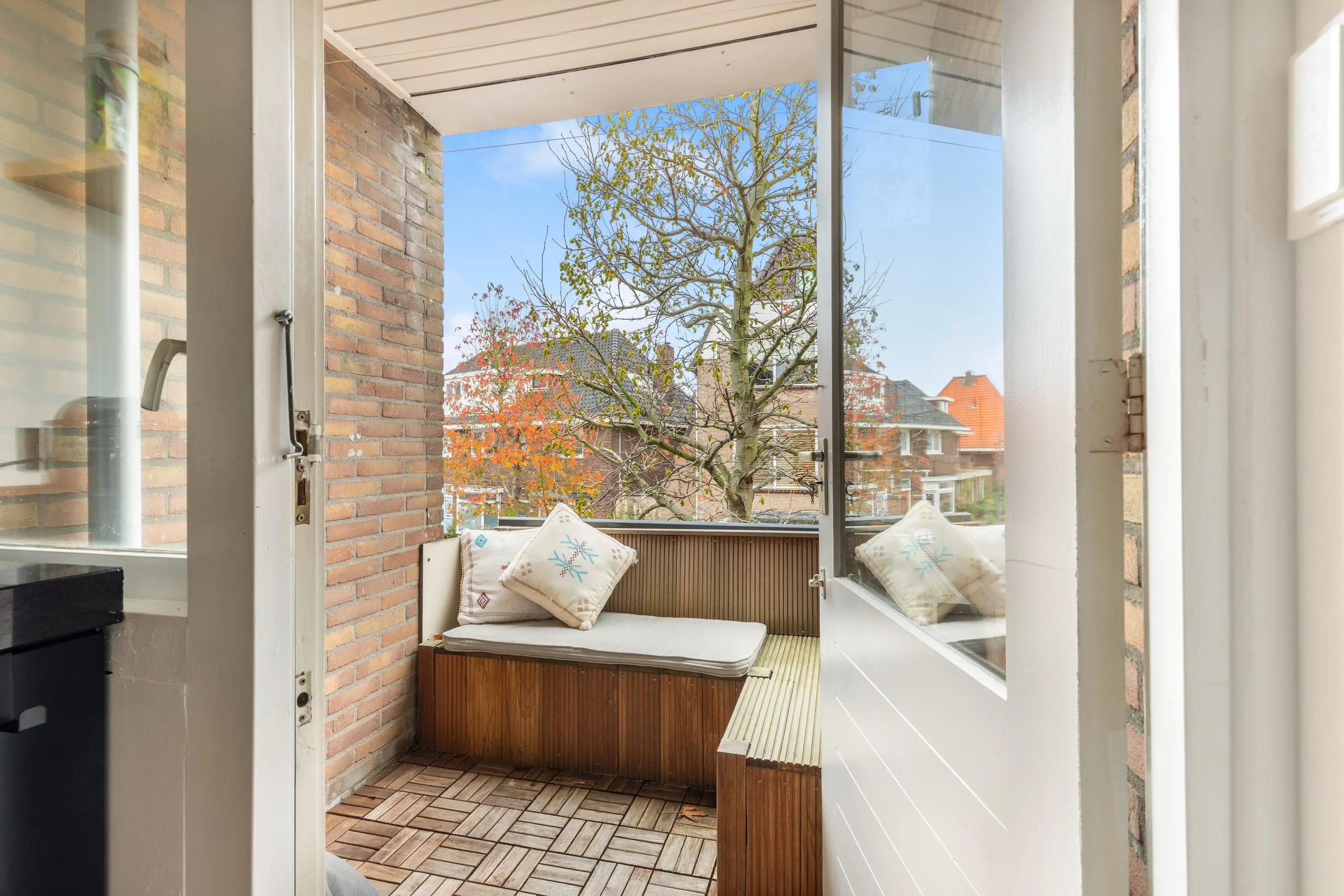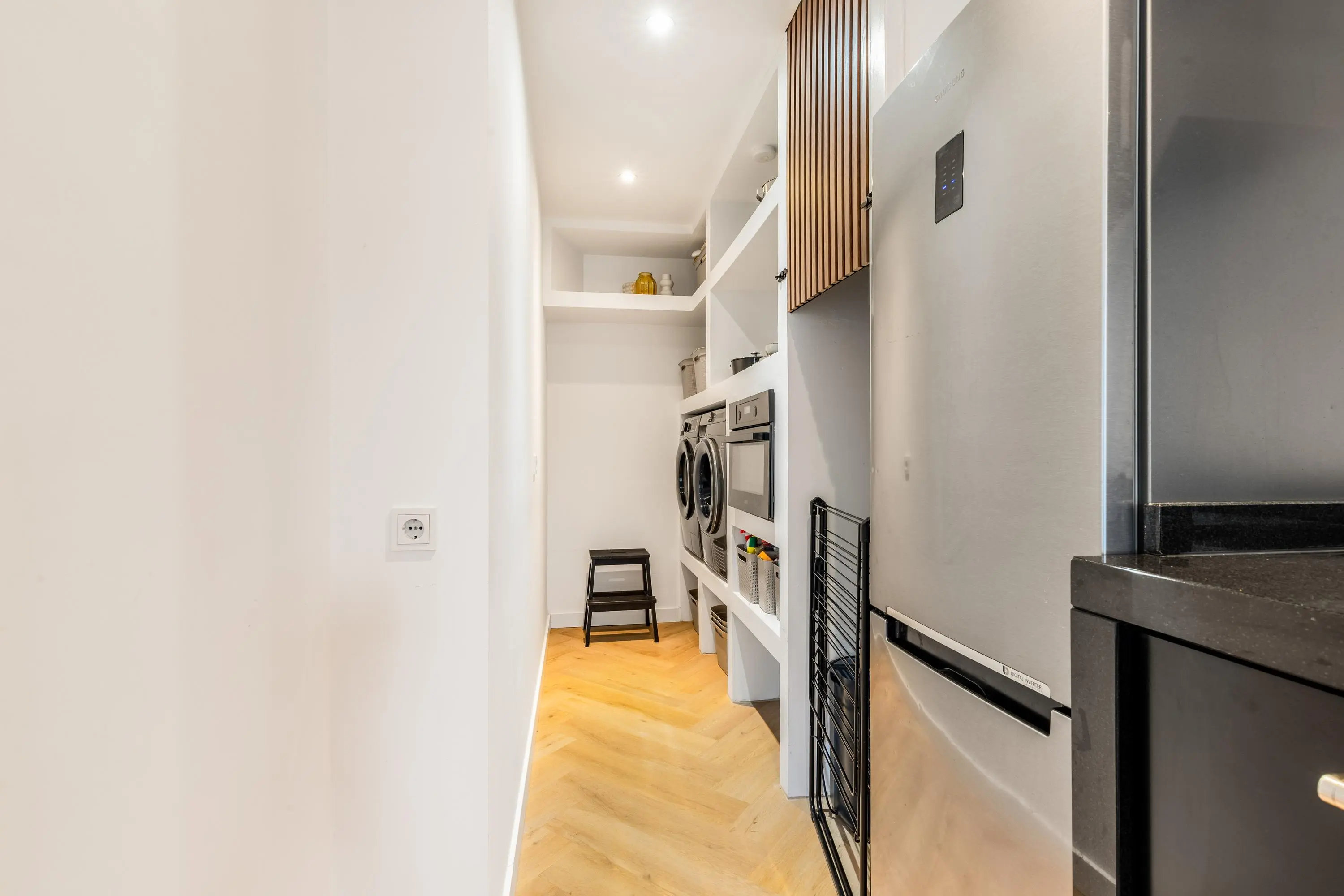De woonkamer is een heerlijke plek om te ontspannen. De grote raampartijen zorgen voor een zee aan licht en een prettige sfeer. De moderne open keuken is voorzien van alle inbouwapparatuur en sluit direct aan op een ruime bijkeuken met volop bergruimte en de aansluiting voor je wasmachine. Vanuit de keuken heb je toegang tot het balkon, dat uitkijkt over de levendige Dorpsstraat. In de moderne badkamer bevindt zich een inloopdouche en een wastafelmeubel met een strakke afwerking. Via de sfeervolle hal, voorzien van een luxe inbouwkast, bereik je het separate toilet en de twee slaapkamers. De hoofdslaapkamer heeft een prachtige inbouwkast en de tweede slaapkamer is veelzijdig in te richten als kinderkamer of werkkamer.