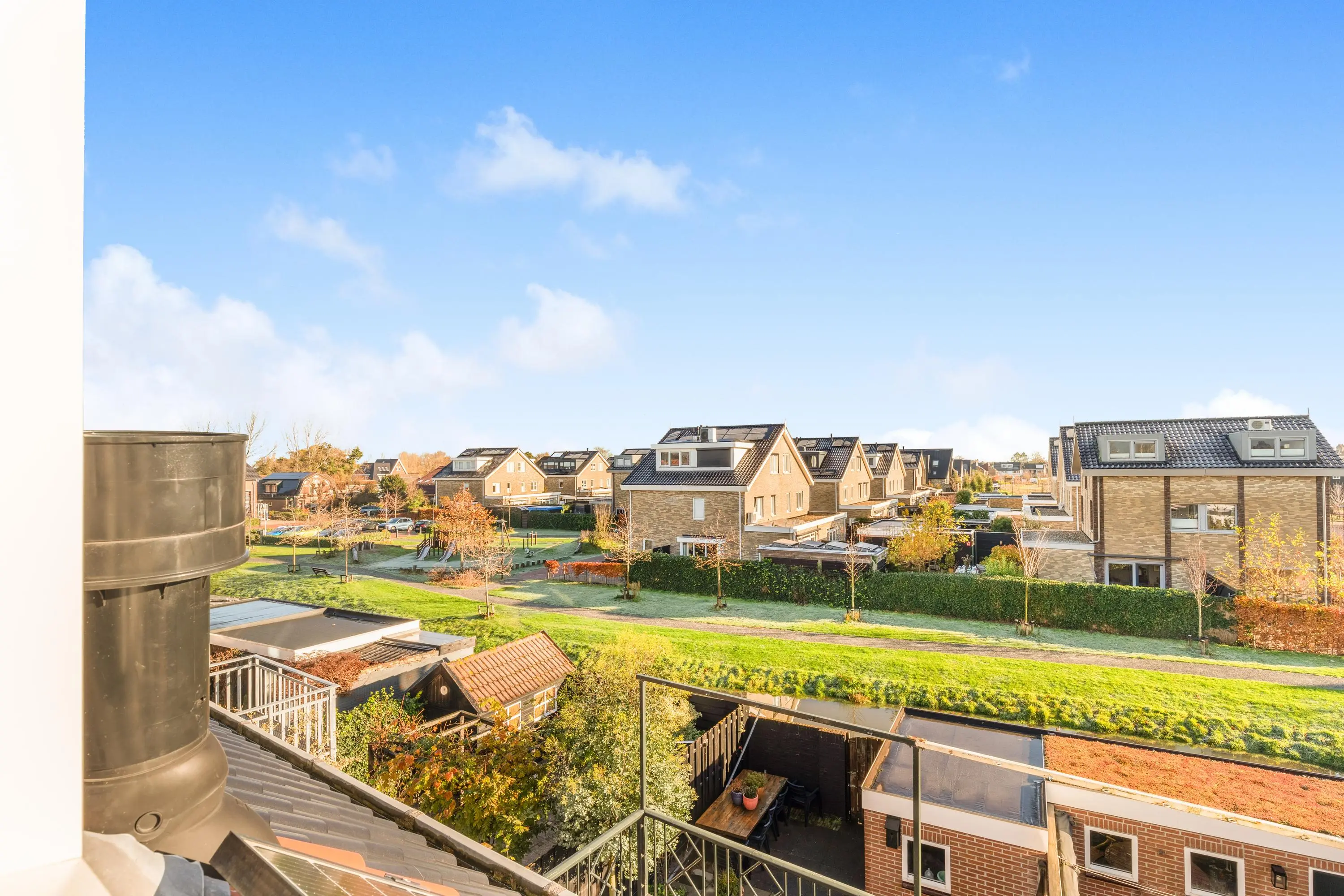 Ook aan duurzaamheid is gedacht. De woning beschikt over veertien zonnepanelen, wat zorgt voor lagere energielasten. Op de begane grond ligt een comfortabele betonvloer die is voorzien van vloerverwarming. Op de tweede verdieping is airconditioning aanwezig, waardoor het in de zomer heerlijk koel blijft.