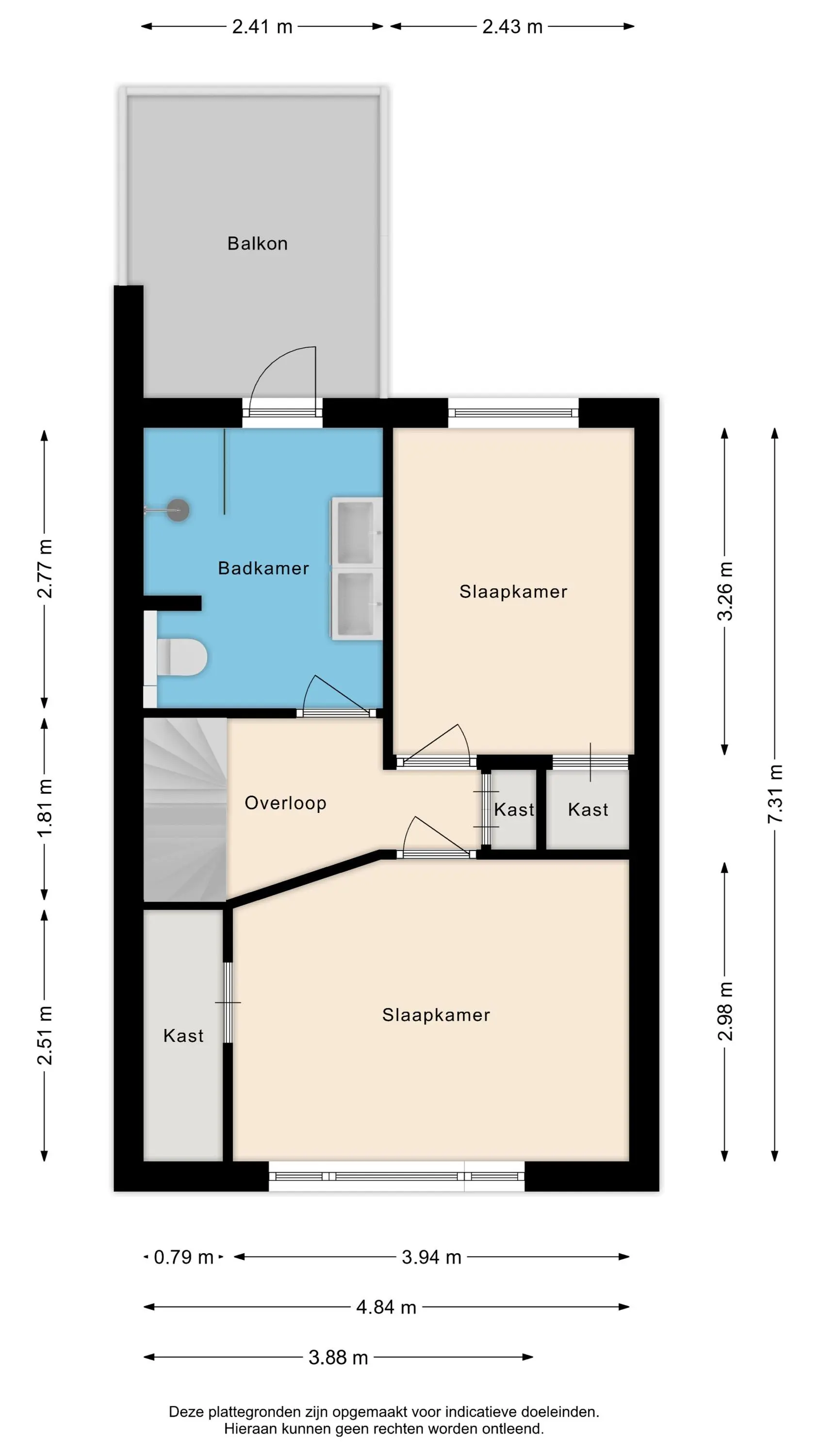 De eerste verdieping biedt twee royale slaapkamers met vaste (inloop)kasten. De moderne badkamer, welke is vernieuwd in 2017, is een echte luxe toevoeging. Deze is uitgerust met een ruime inloopregendouche met sunshower, een stijlvol dubbel wastafelmeubel, een toilet en geeft toegang tot een zonnig balkon.