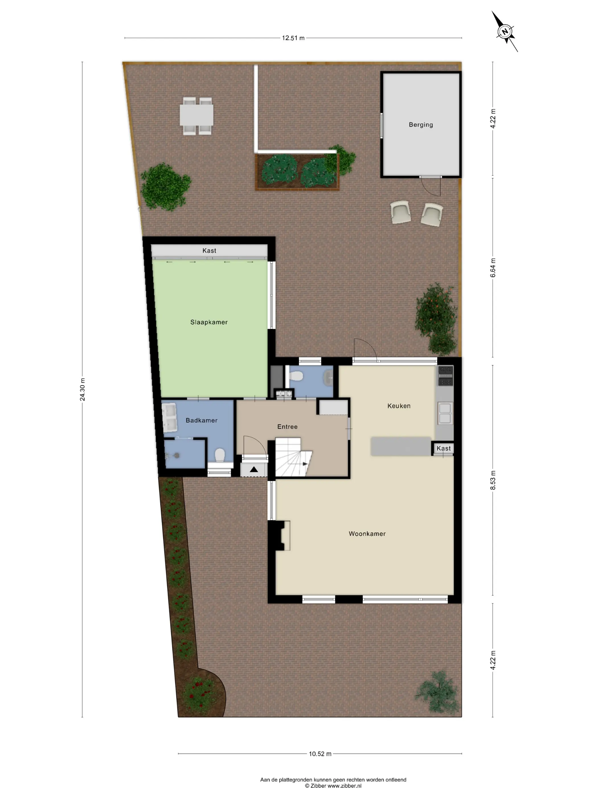 De royale voor- en achtertuin maken het geheel compleet. De achtertuin is gelegen op het Noordoosten. Hierdoor kun je in de ochtend al heerlijk van de eerste zonnestralen genieten. Er is genoeg ruimte voor een loungeset en eettafel. De stenen berging is handig voor het stallen van fietsen en andere tuinspullen. Daarnaast is er een achterom aanwezig.