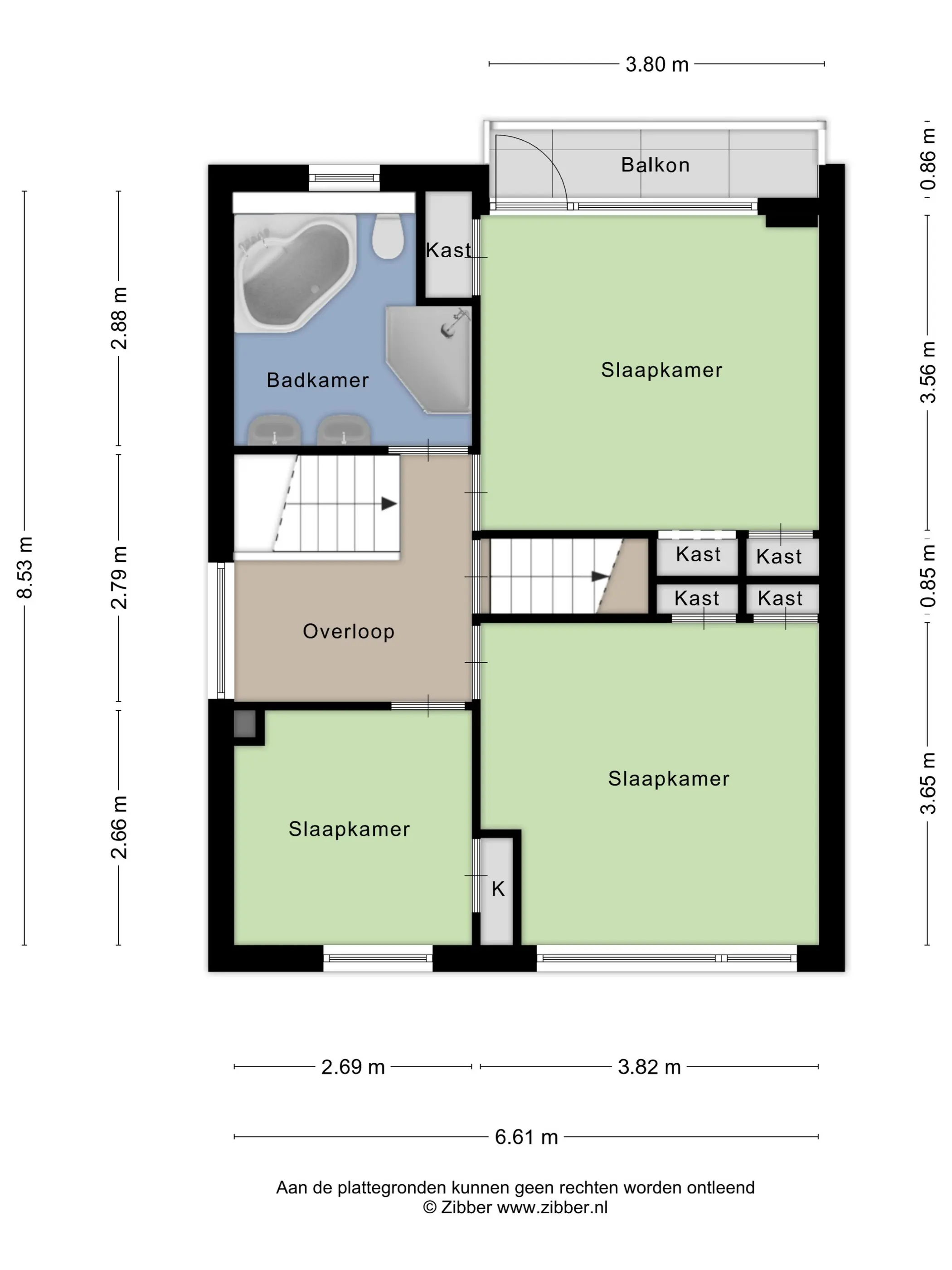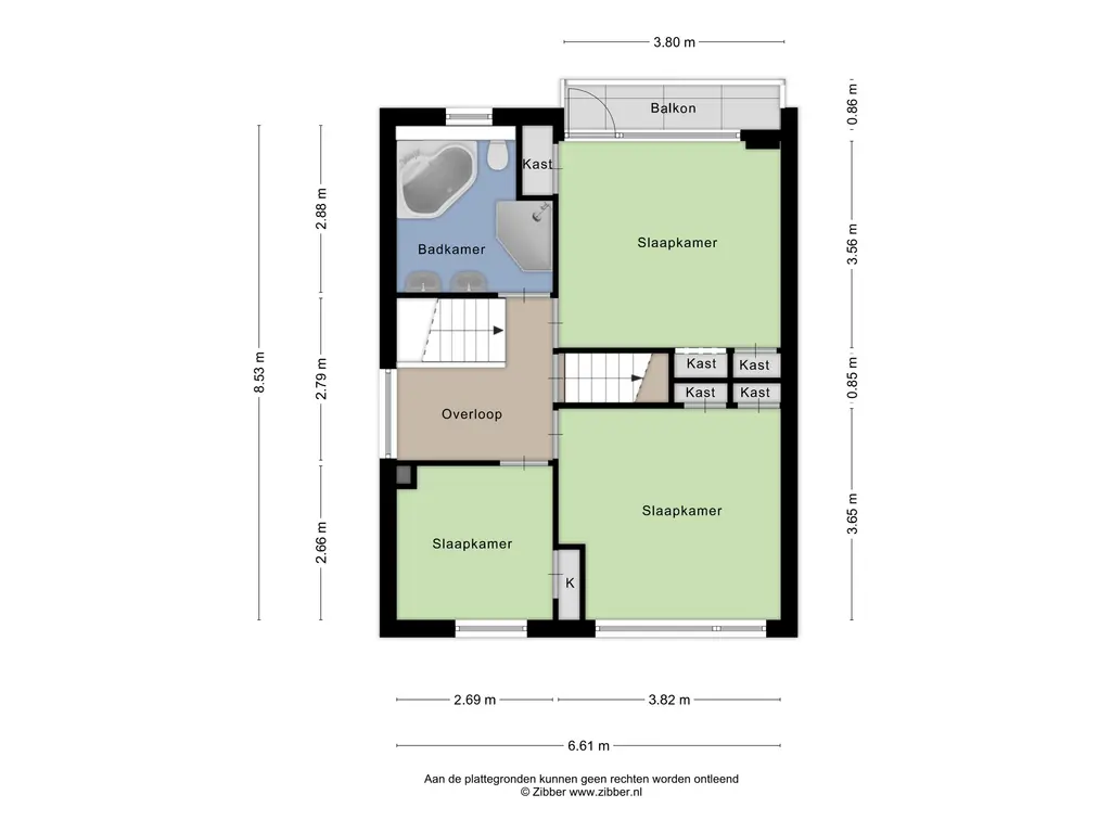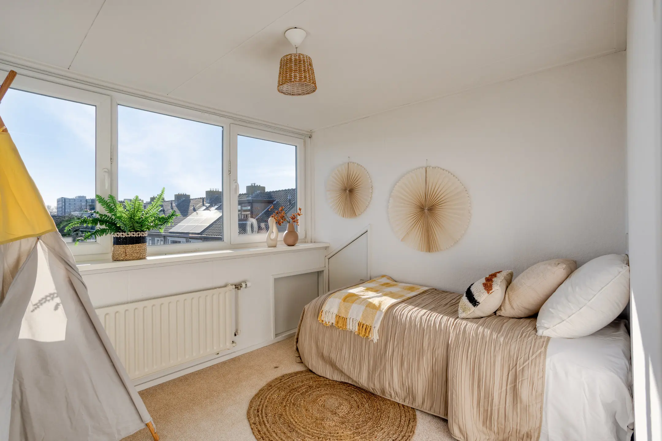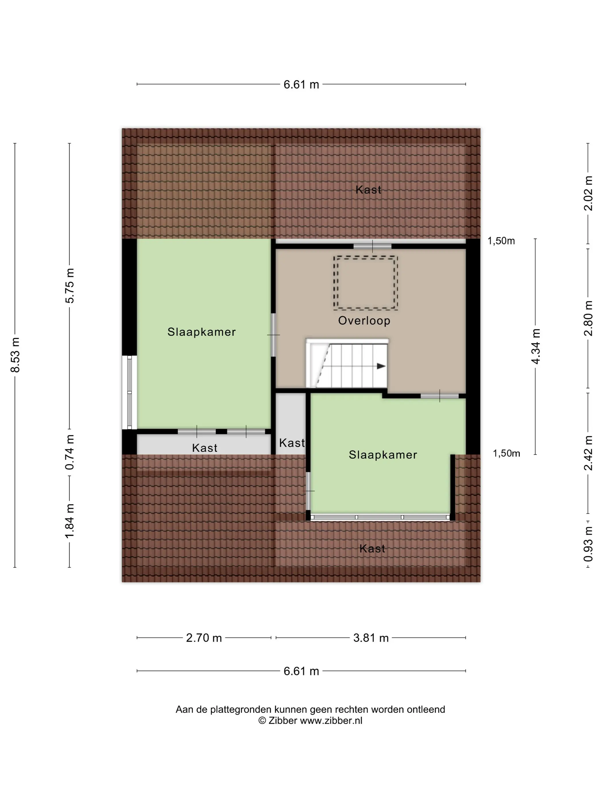 De tweede verdieping telt nog eens twee slaapkamers, waarvan één is voorzien van een dakkapel. Ook in deze kamers zijn weer inbouwkasten aanwezig. Aan opbergruimte is zeker geen gebrek in deze woning!