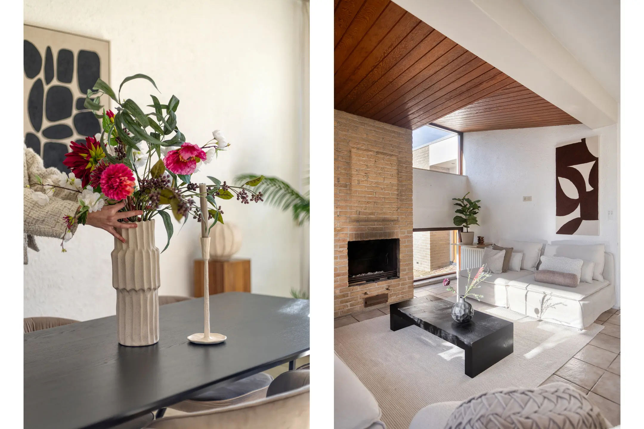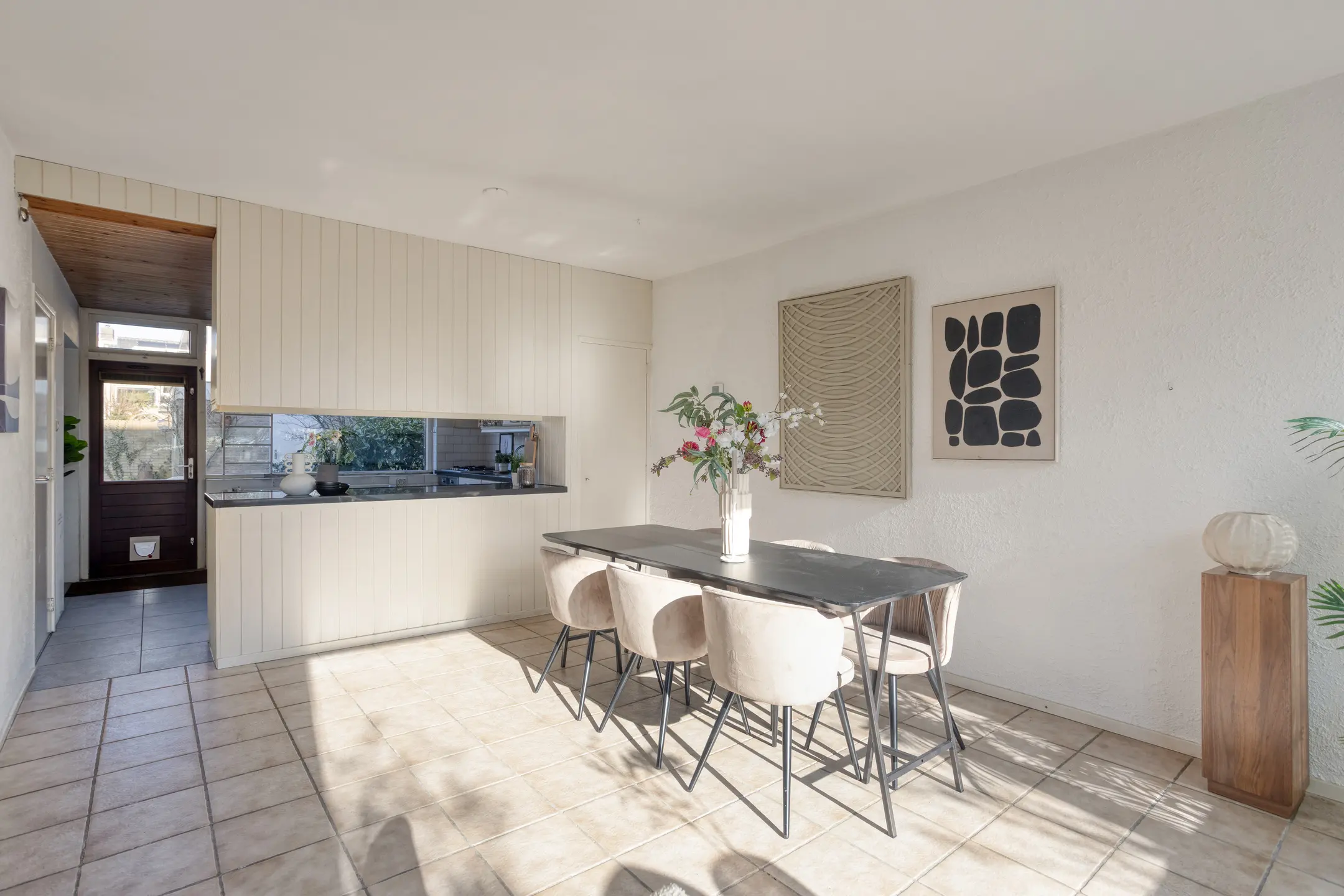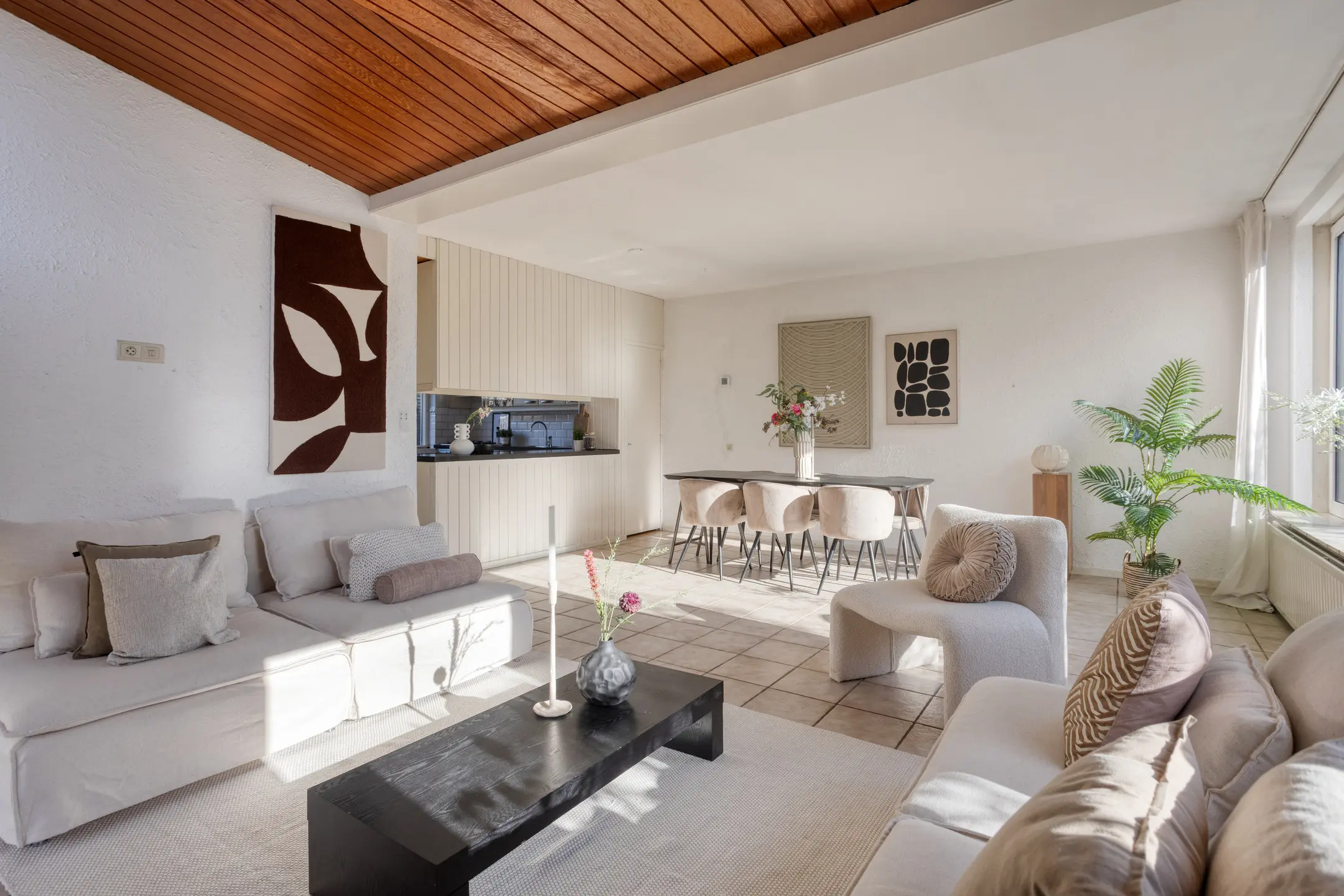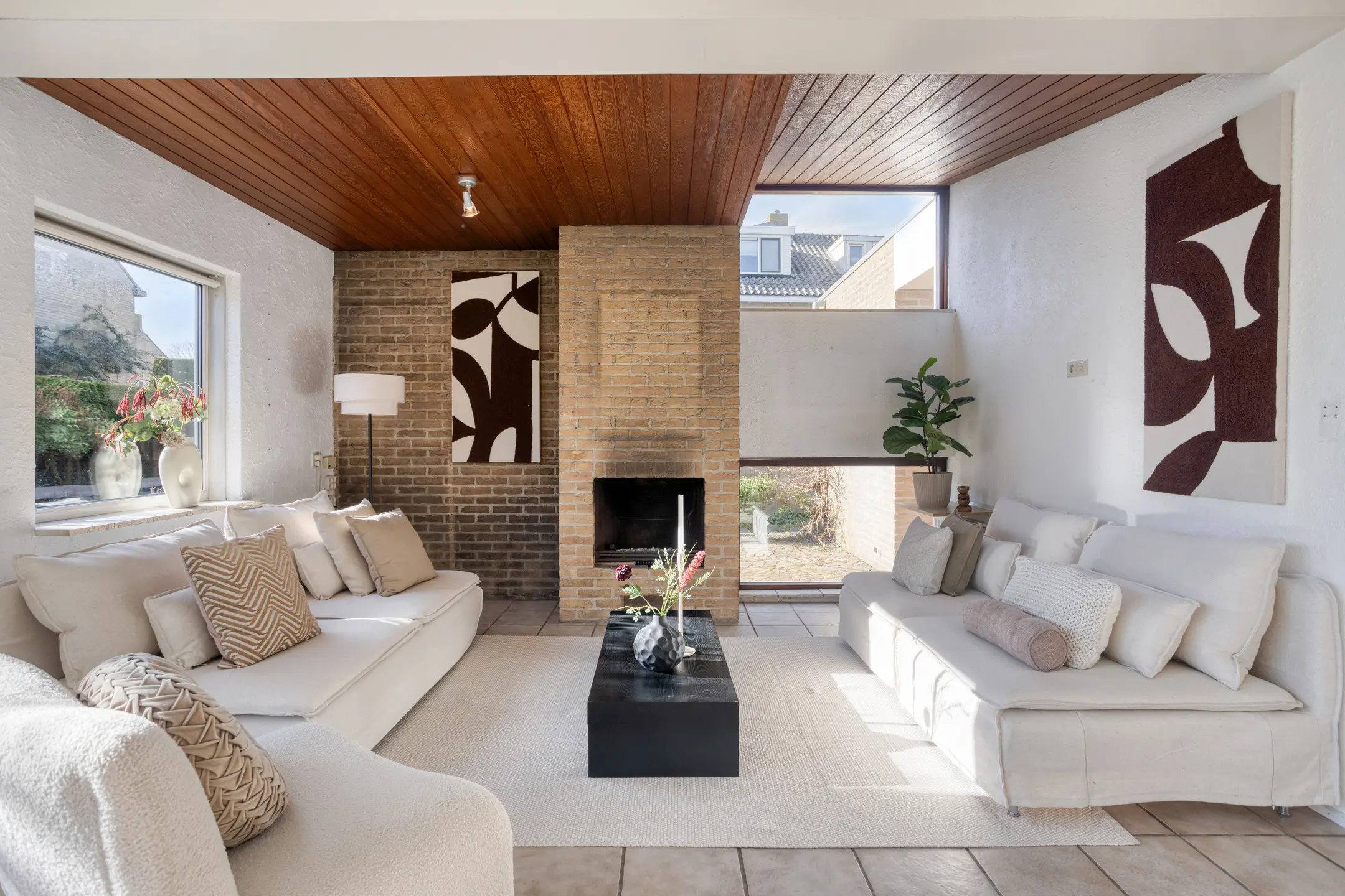 Via de ruime entree met open trap naar de eerste verdieping heb je toegang tot de woon- en eetkamer, maar ook het toilet, de badkamer en de slaapkamer op begane grond. In de woonkamer valt direct de speelse indeling met de keuken en het eetgedeelte op. De keuken is momenteel voorzien van een schiereiland, maar als je liever kiest voor een meer open verbinding met de rest van de ruimte, dan is dit eenvoudig naar wens aan te passen. In het zitgedeelte zorgt de open haard voor extra sfeer en comfort. Daarnaast is er veel prettige en natuurlijk lichtinval dankzij de vele ramen. Je kijkt uit op het plantsoen aan de voorzijde, maar de raampartij tot aan de grond geeft ook zicht op de zijkant van de woning.