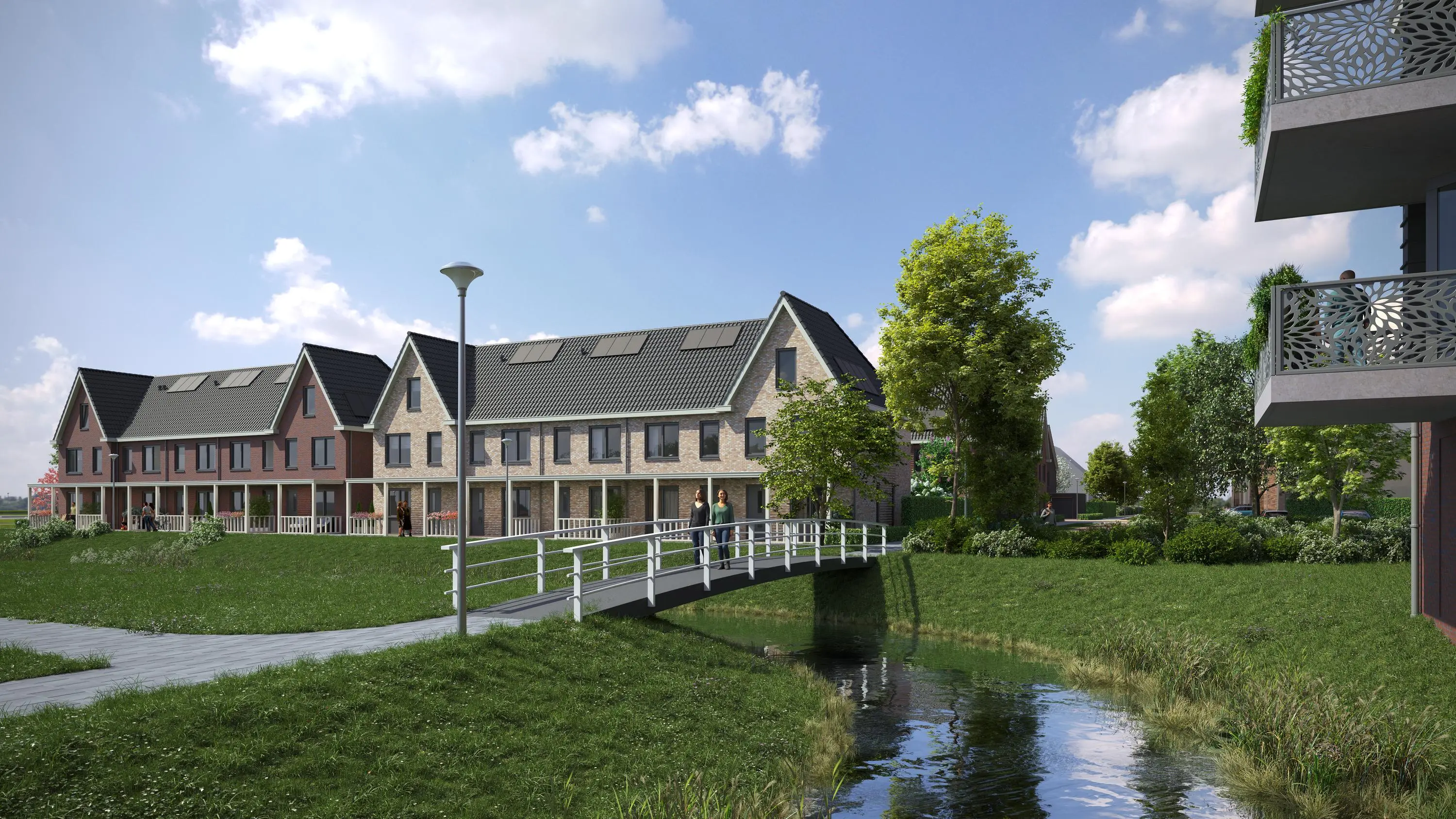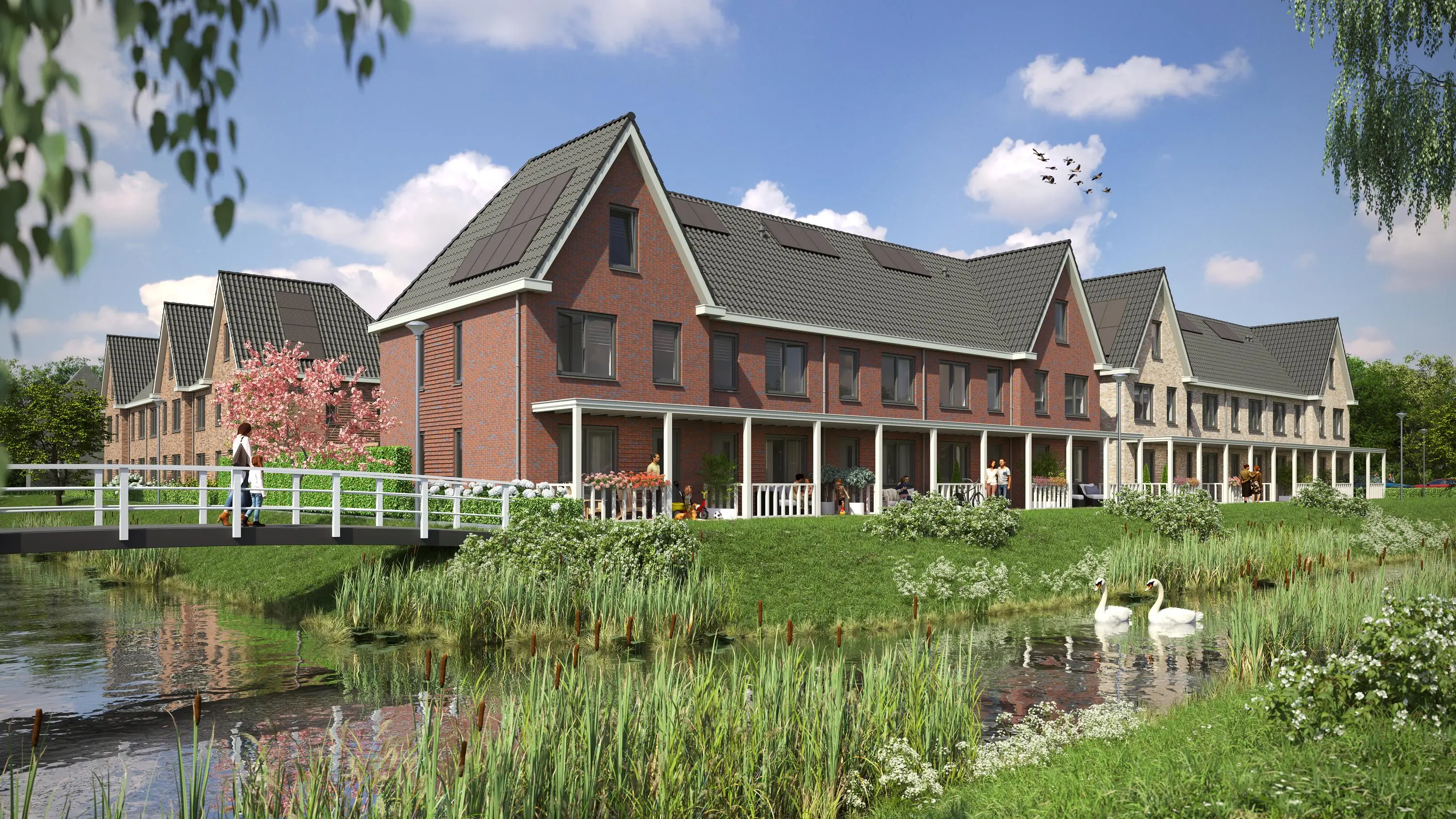 specifieke levensstijl en woonwensen. De woningen hebben een ruime achtertuin én in uw voortuin is het ook heerlijk verblijven onder uw veranda, uitkijkend over de met ruim groen omklede watergang. Aan de voorzijde van de woning loopt enkel een voetpad wat de rust en veiligheid bevordert. Deze veelzijdigheid maakt het mogelijk om de