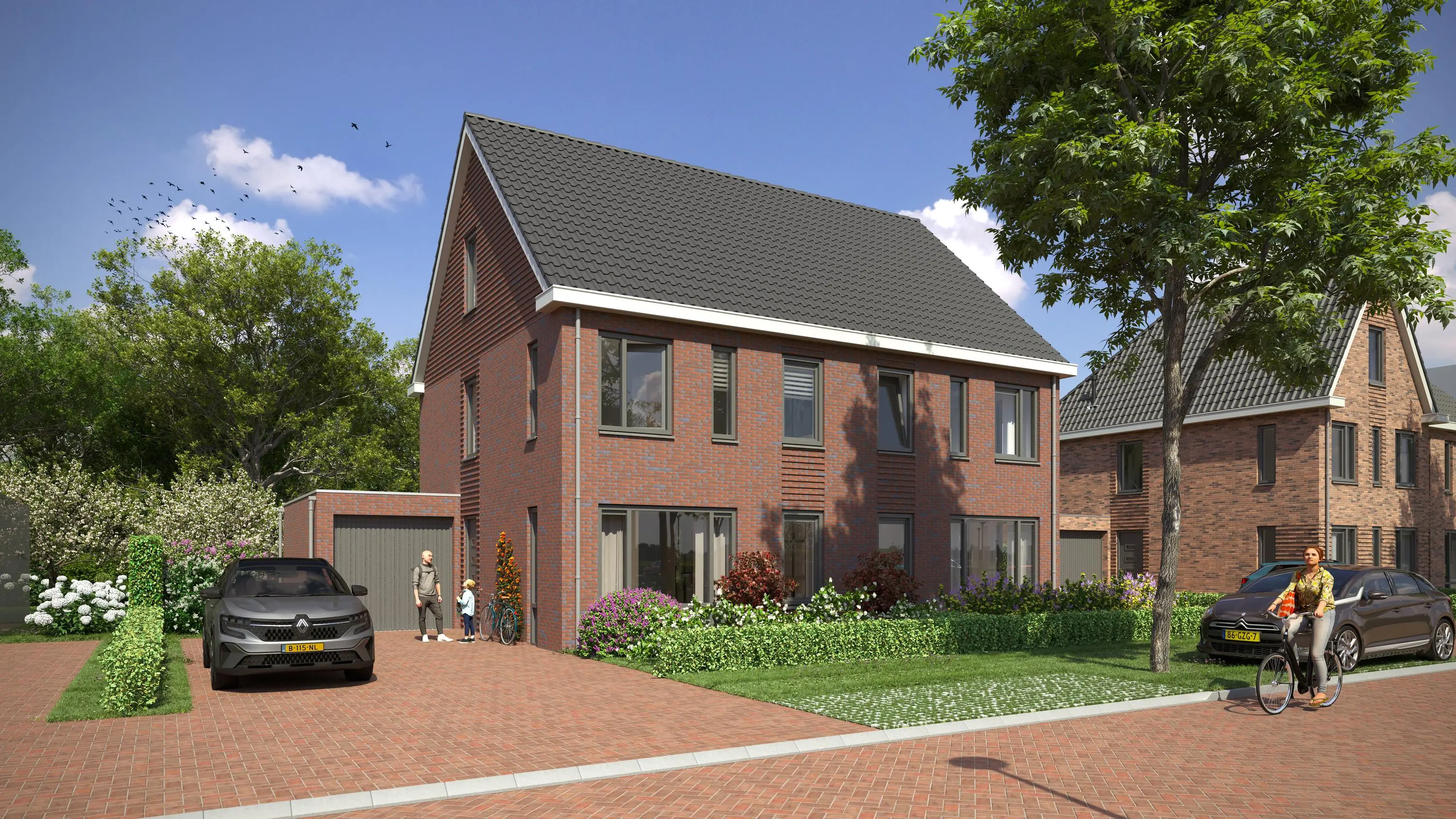 De tweekappers in het plan zijn de perfecte keuze voor gezinnen of stellen die op zoek zijn naar ruimte en comfort. De woningen zijn ontworpen met aandacht voor detail en bieden een unieke architectuur die de buurt karakter geeft. Zorgvuldig ontworpen met aandacht voor detail en esthetiek. Moderne lijnen, harmonieuze gevels en hoogwaardige materialen creëren een eigentijds en verfijnd uiterlijk. Met hun eigen oprit en ruime tuin, bieden deze tweekappers voldoende ruimte voor kinderen om te spelen en voor ouders om te ontspannen. De grote ramen zorgen voor overvloedig natuurlijk licht en bieden een prachtig uitzicht op de omgeving. De twee-onder-een-kapwoningen kennen verschillende ontwerpen. Door deze variatie in architectuur en indeling krijgt de wijk een levendig en aantrekkelijk