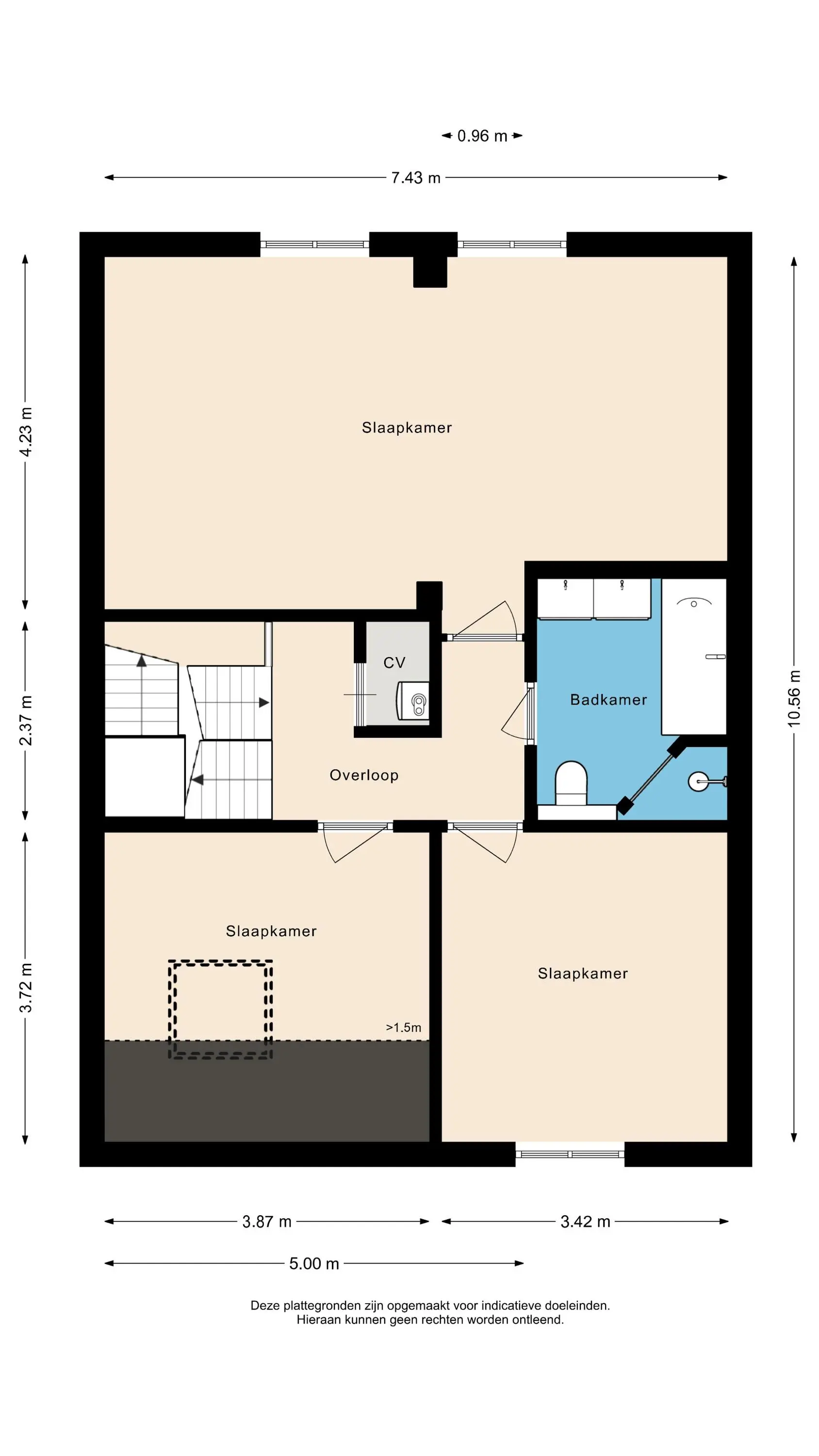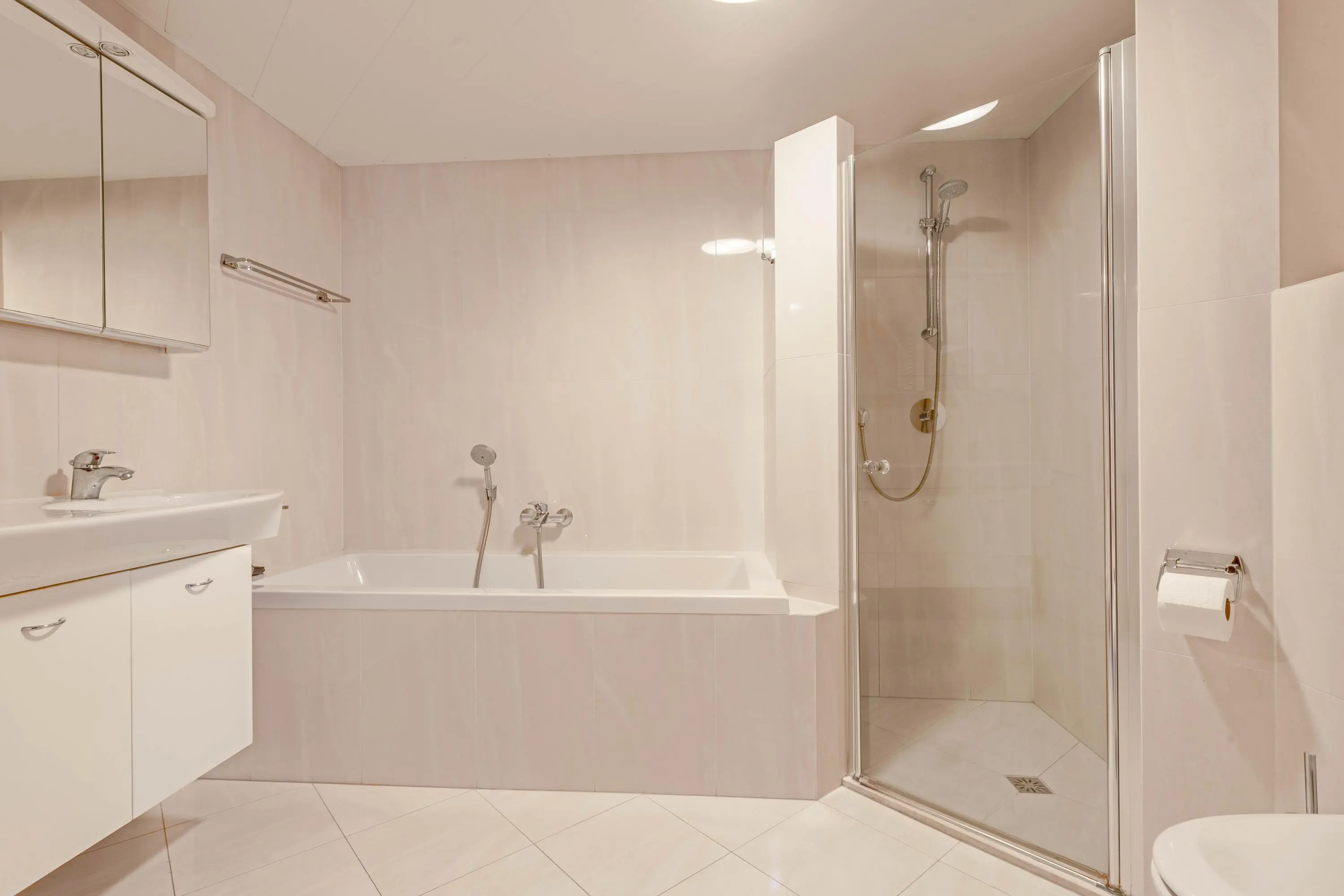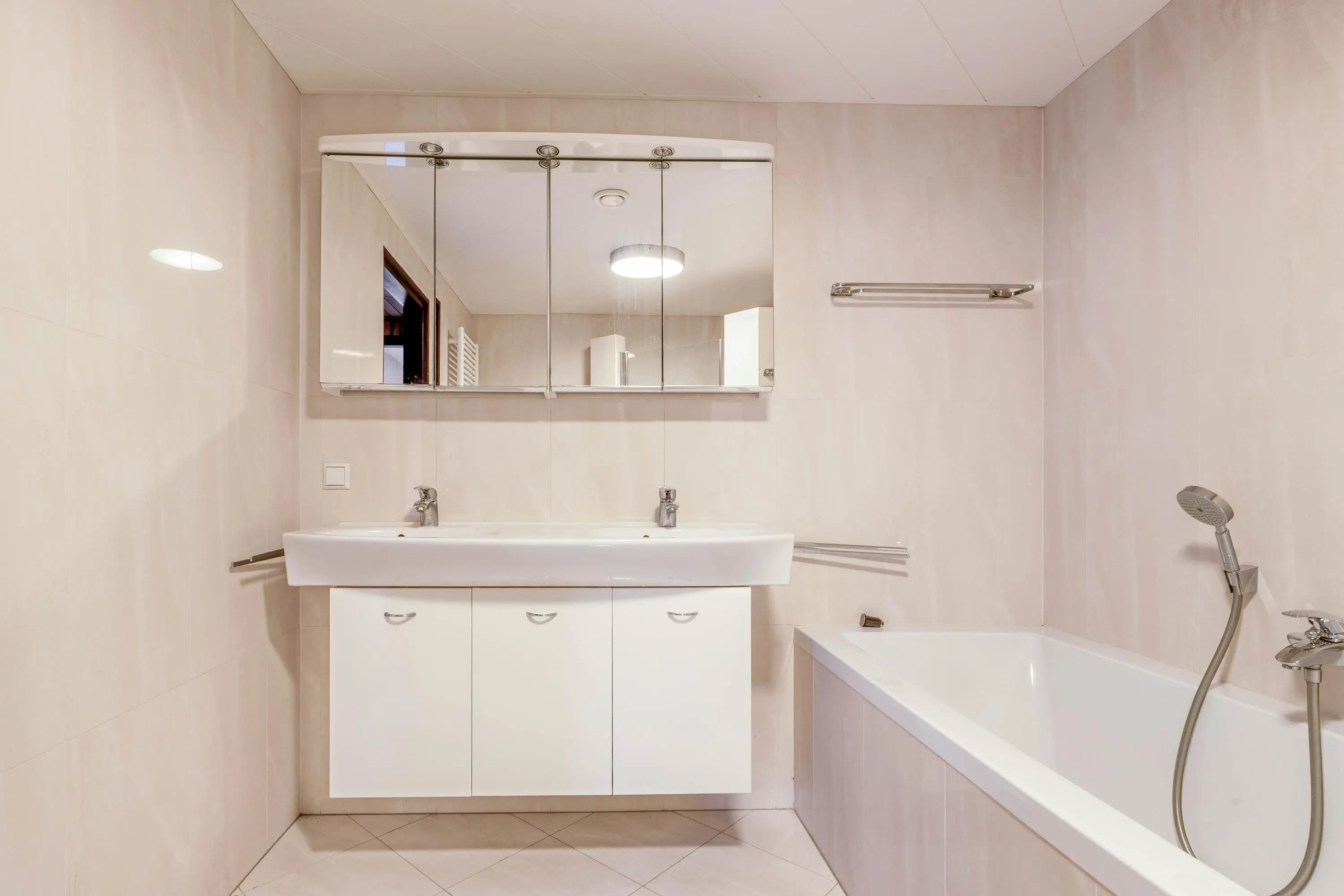 Op de eerste verdieping zijn momenteel drie slaapkamers, waaronder een zeer royale slaapkamer aan de achterzijde. Deze kamer kan eenvoudig worden gesplitst in twee slaapkamers indien gewenst. Verder vind je op deze verdieping de stookruimte met de cv-ketel en de badkamer. De badkamer is compleet uitgerust met een ligbad, douche, toilet en een dubbele wastafel met meubel. De tweede verdieping beschikt over een handige berging en een extra slaapkamer, waarmee het totaal aantal kamers verder wordt uitgebreid.