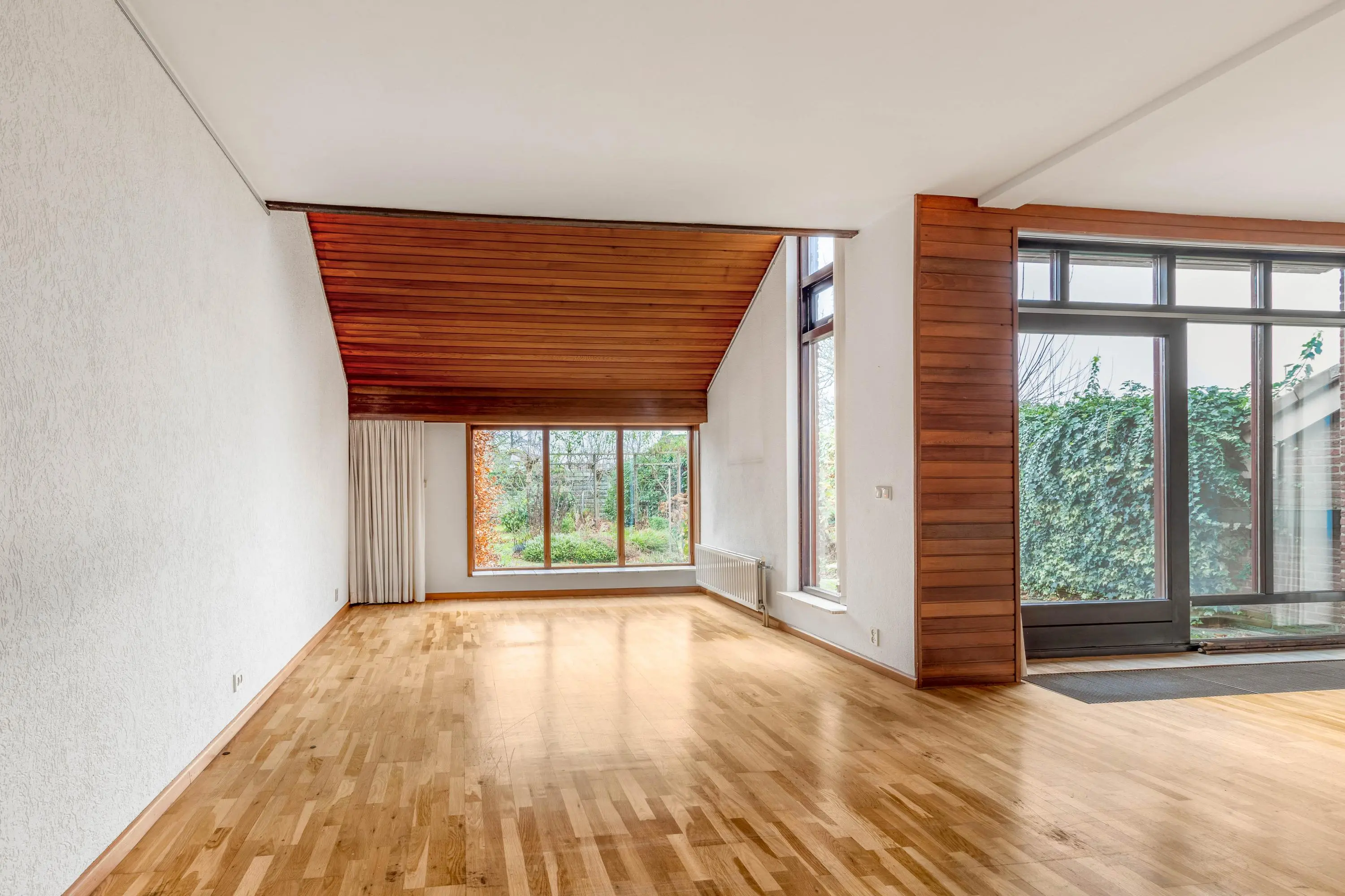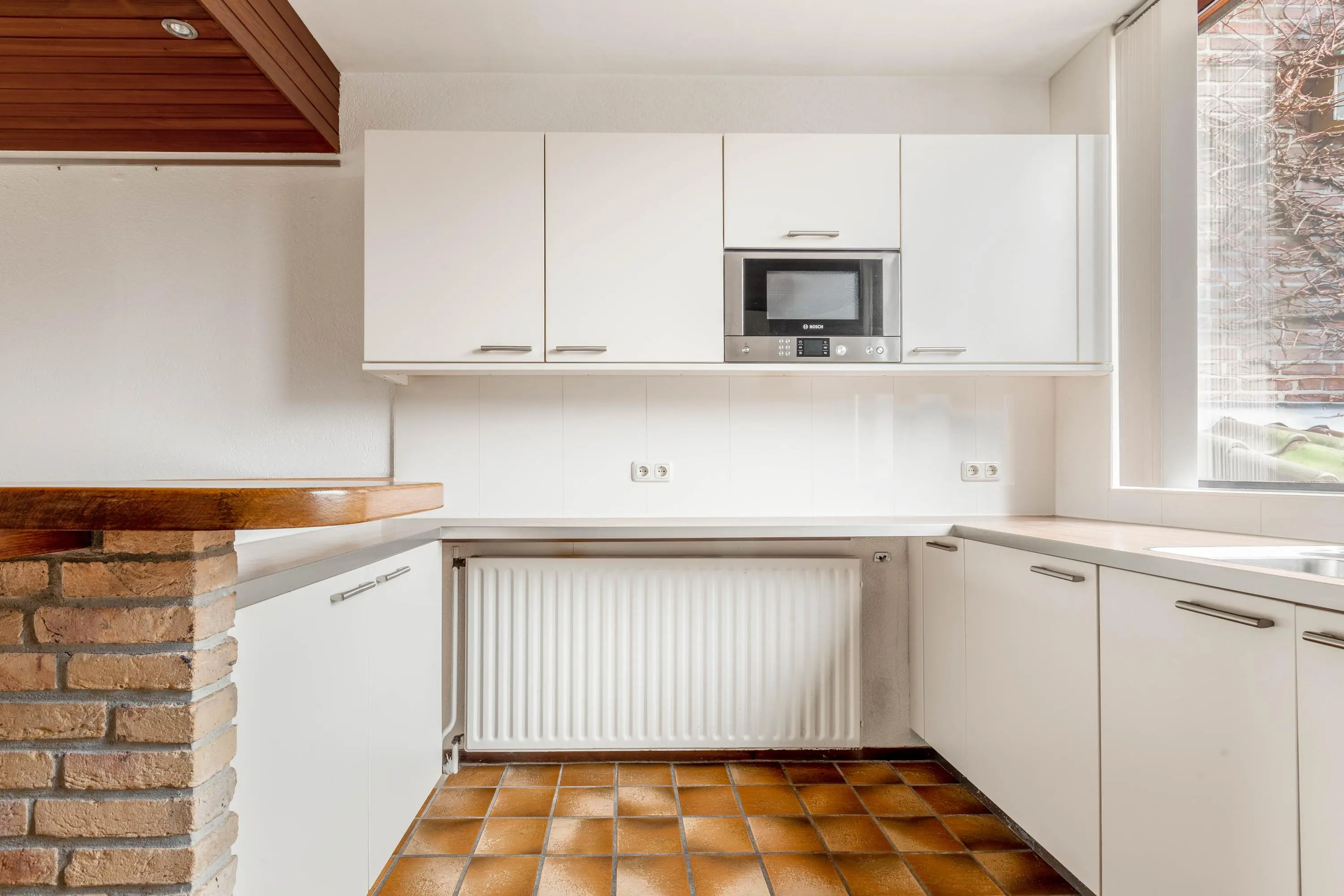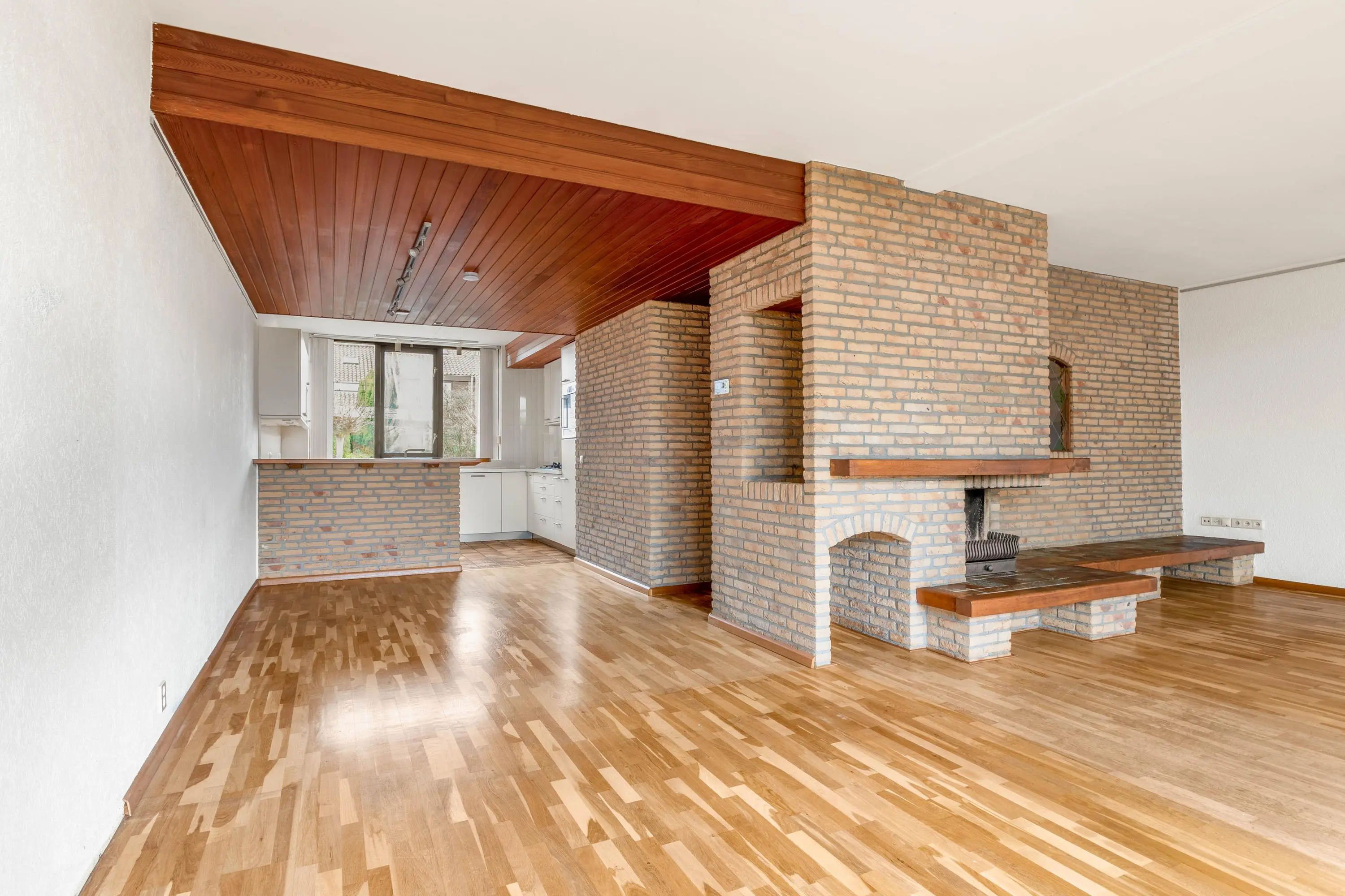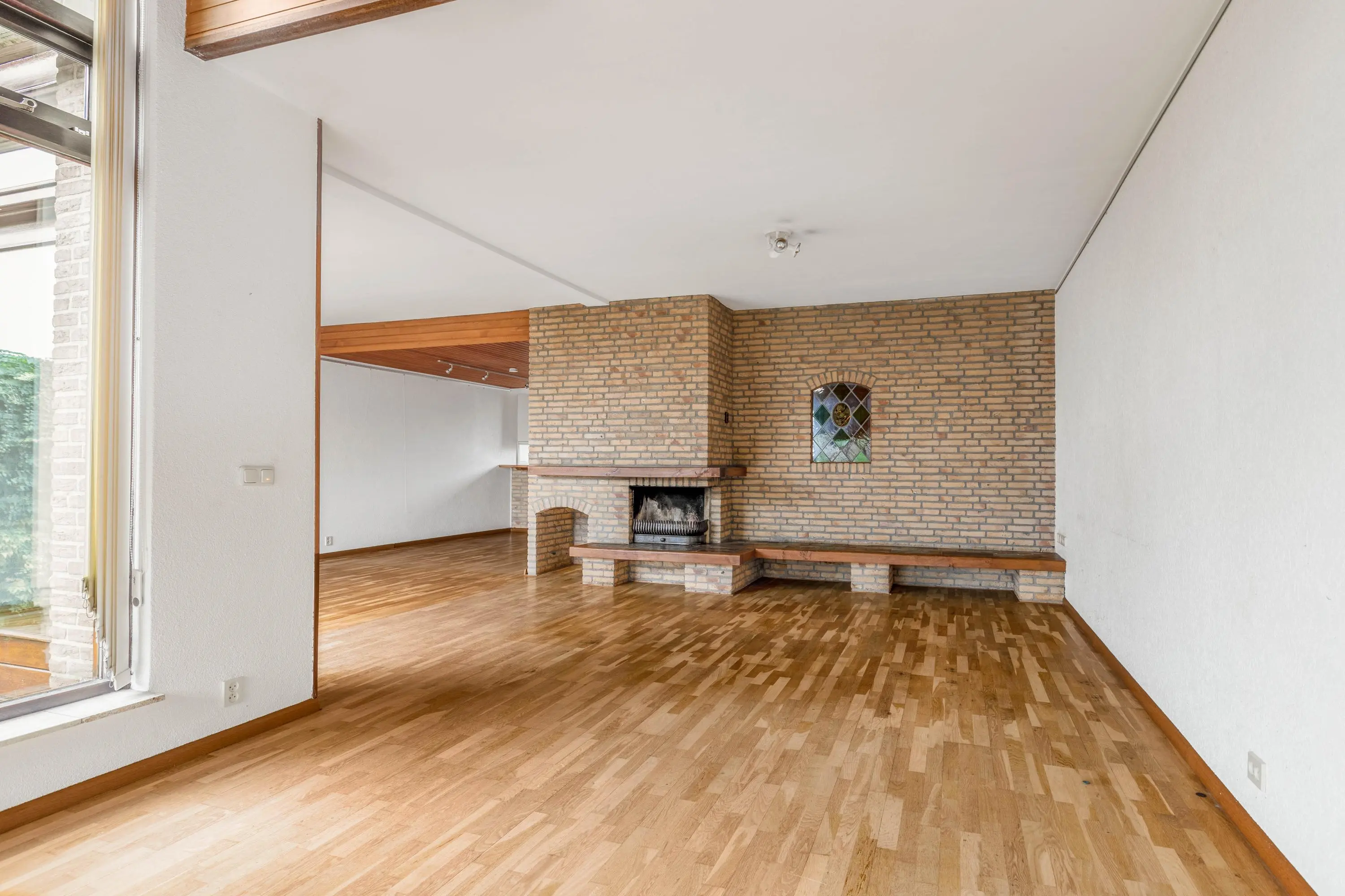 De Z-vormige woonkamer is licht en ruim door de grote raampartijen en de praktische indeling. Aan de voorzijde van de woning bevindt zich de keuken, voorzien van diverse inbouwapparatuur zoals een 5-pits gaskookplaat, afzuigkap, oven, magnetron, vaatwasser, koelkast en vriezer. Aan de achterzijde zorgen de grote schuifpui en de ligging op het oosten ervoor dat je direct de fijne tuin in loopt. In het midden van de woonkamer bevindt zich bovendien een gezellige haard.