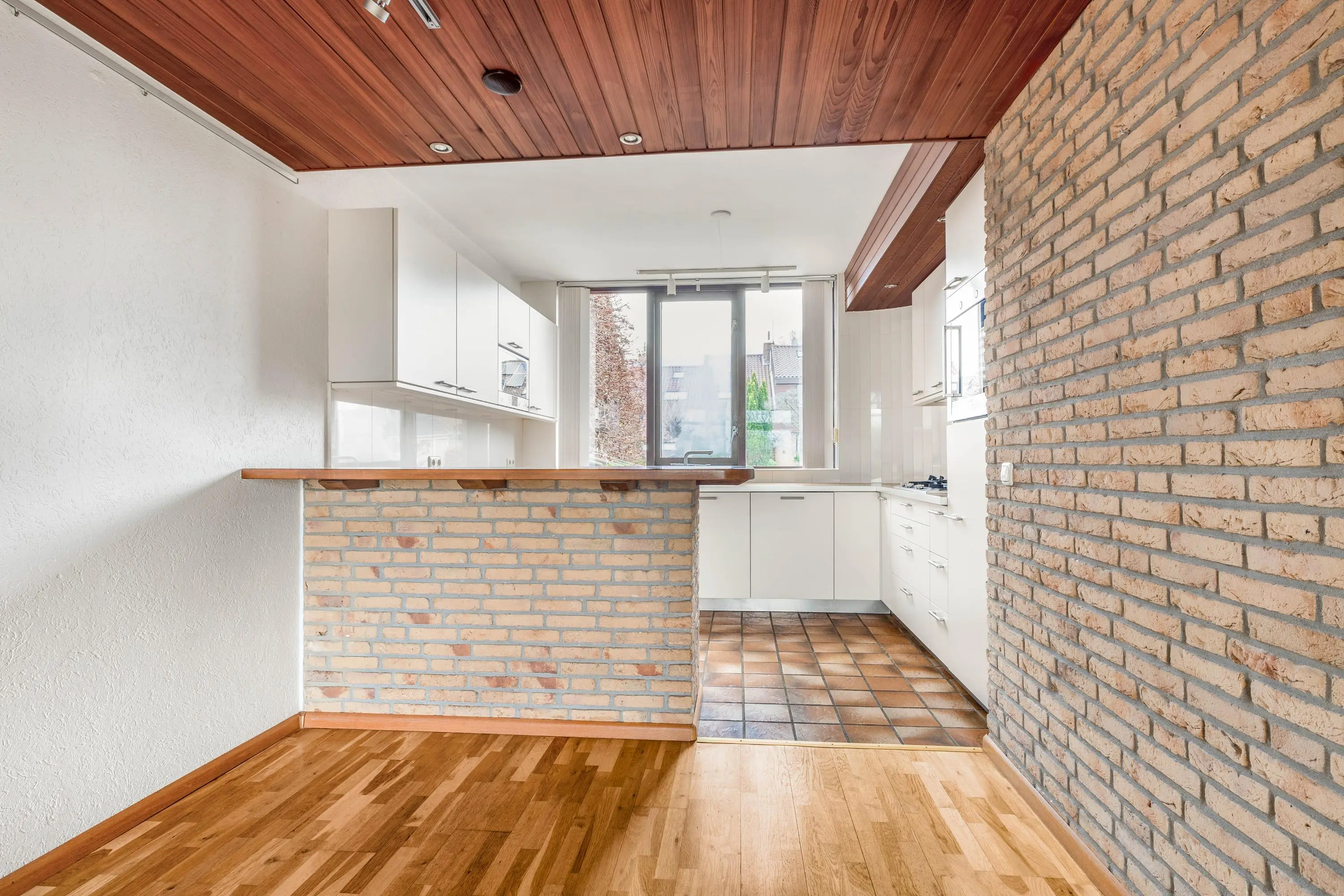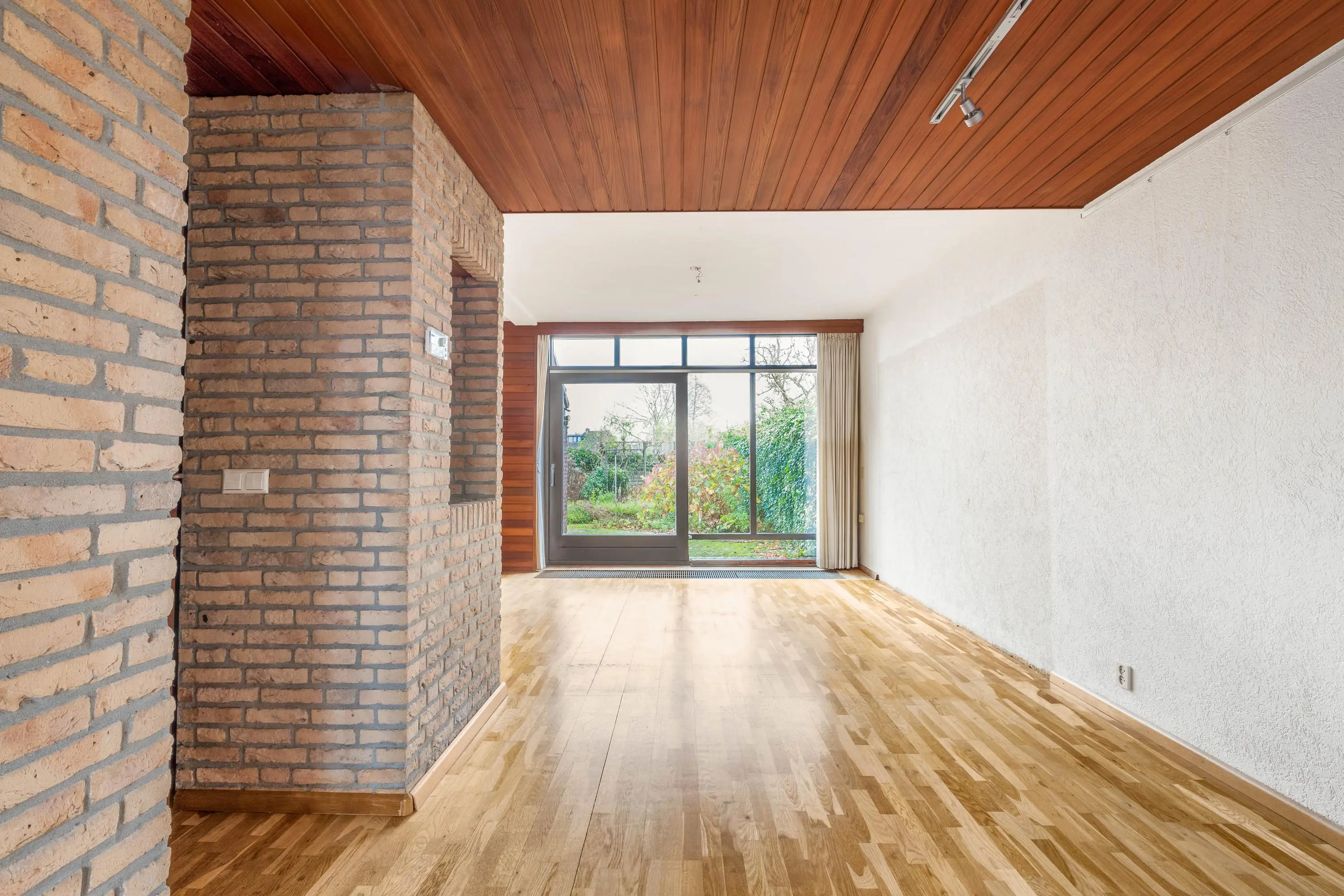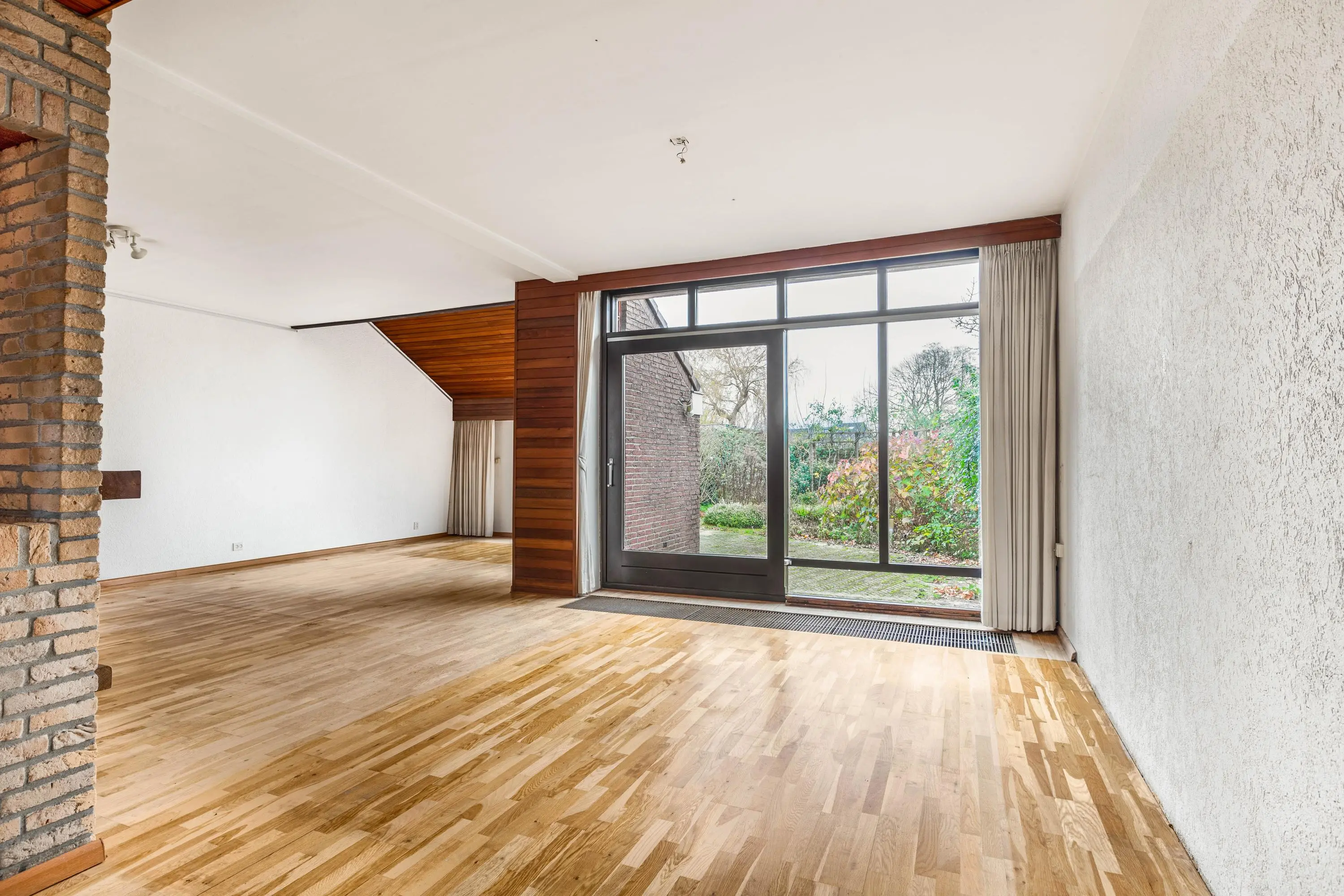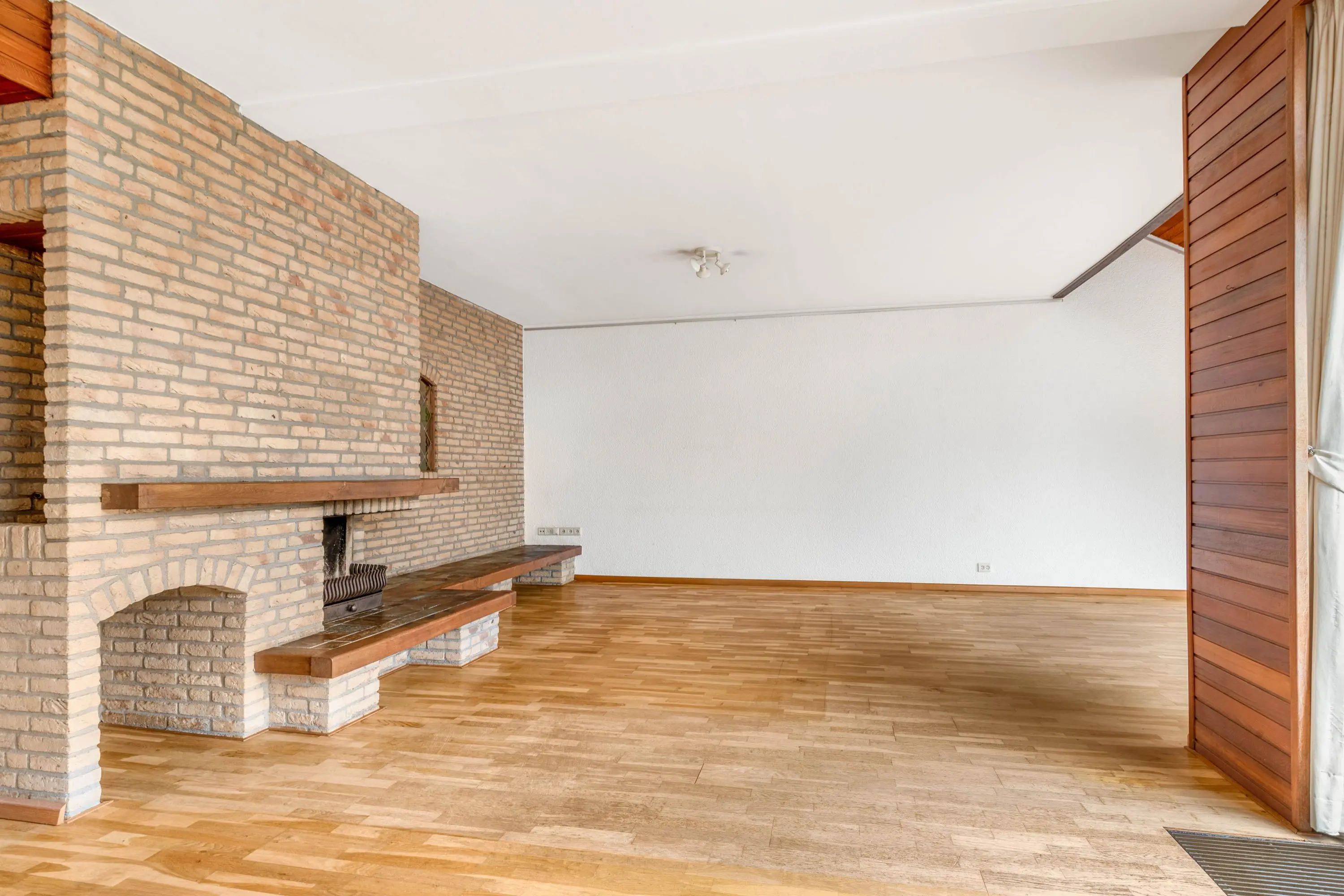 De Z-vormige woonkamer is licht en ruim door de grote raampartijen en de praktische indeling. Aan de voorzijde van de woning bevindt zich de keuken, voorzien van diverse inbouwapparatuur zoals een 5-pits gaskookplaat, afzuigkap, oven, magnetron, vaatwasser, koelkast en vriezer. Aan de achterzijde zorgen de grote schuifpui en de ligging op het oosten ervoor dat je direct de fijne tuin in loopt. In het midden van de woonkamer bevindt zich bovendien een gezellige haard.