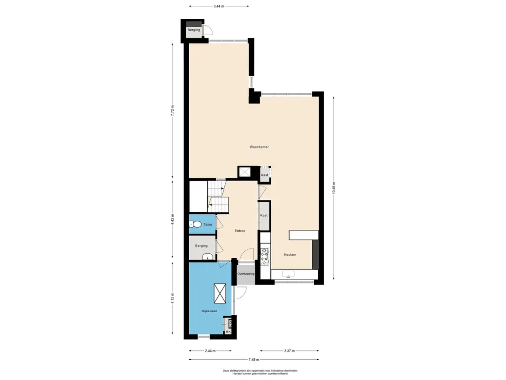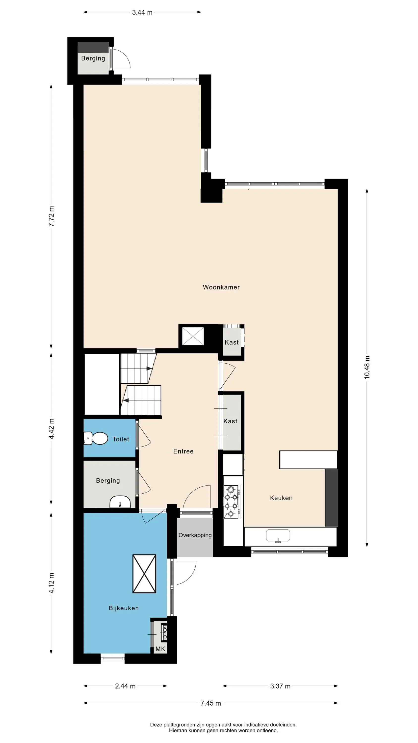 Via de voordeur kom je binnen in de ruime entree. Hier bevinden zich de trap naar de eerste verdieping, het toilet, de wasruimte, een multifunctionele ruimte en toegang tot de woonkamer. In de multifunctionele ruimte aan de voorzijde wacht een leuke verrassing: vanuit hier is de kelder bereikbaar, ideaal voor wijnliefhebbers of als extra opslagruimte. Daarnaast bevindt zich hier de meterkast. Dankzij de eigen zijentree is deze ruimte uitermate geschikt als thuiskantoor of praktijk aan huis.