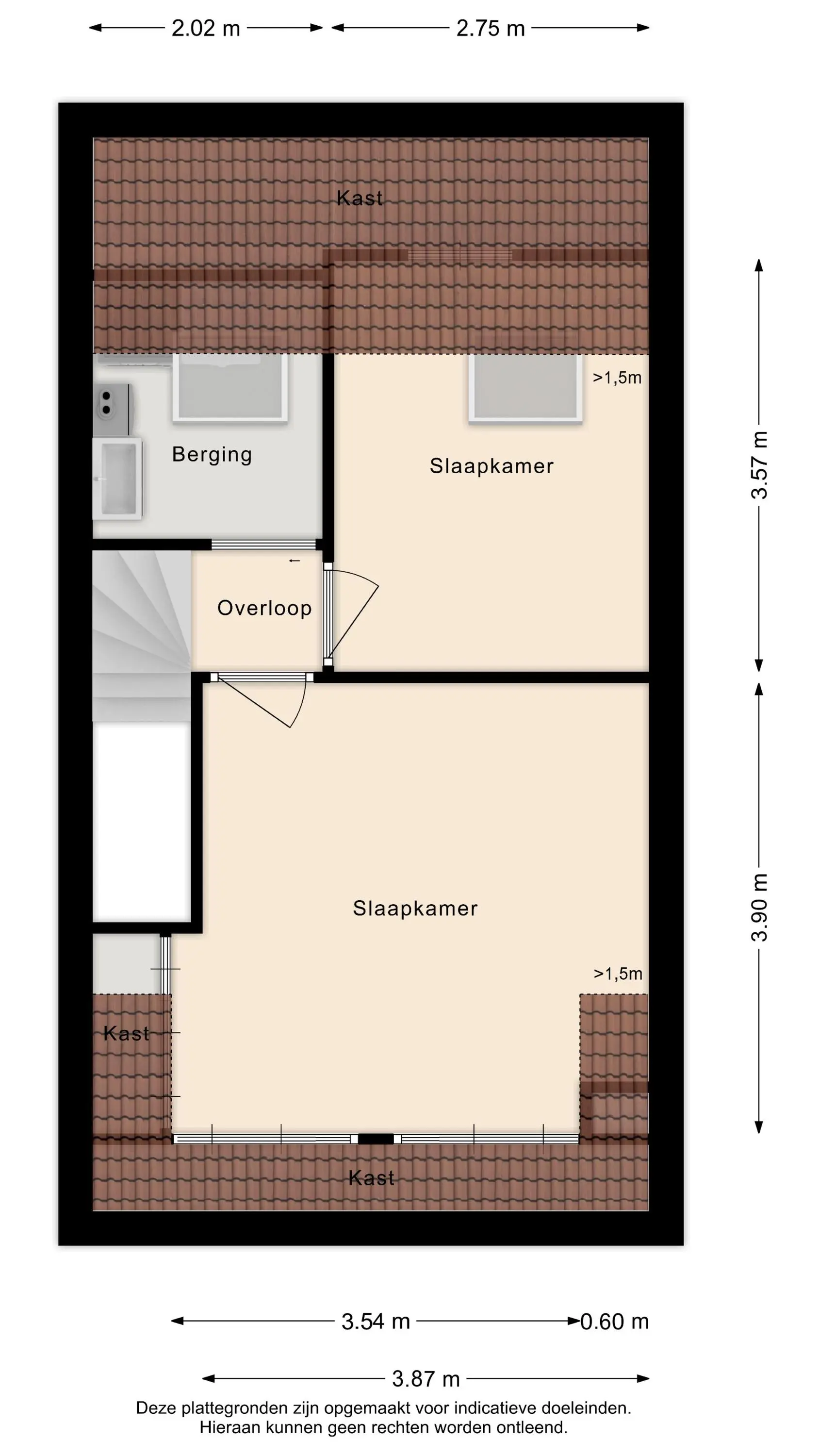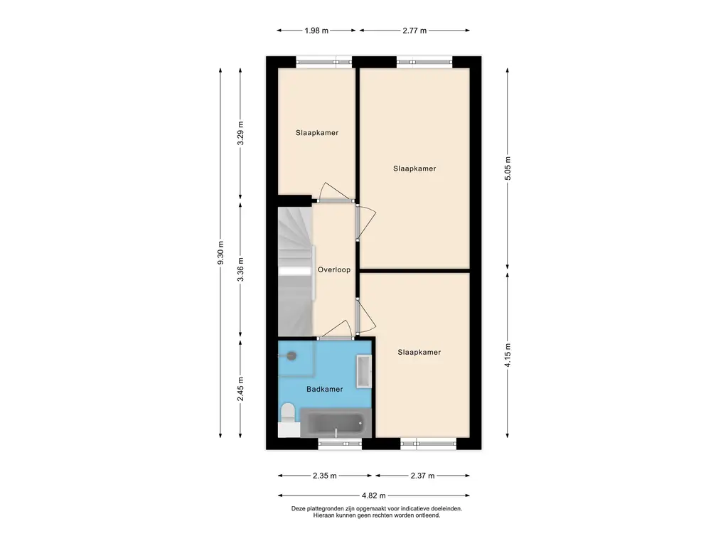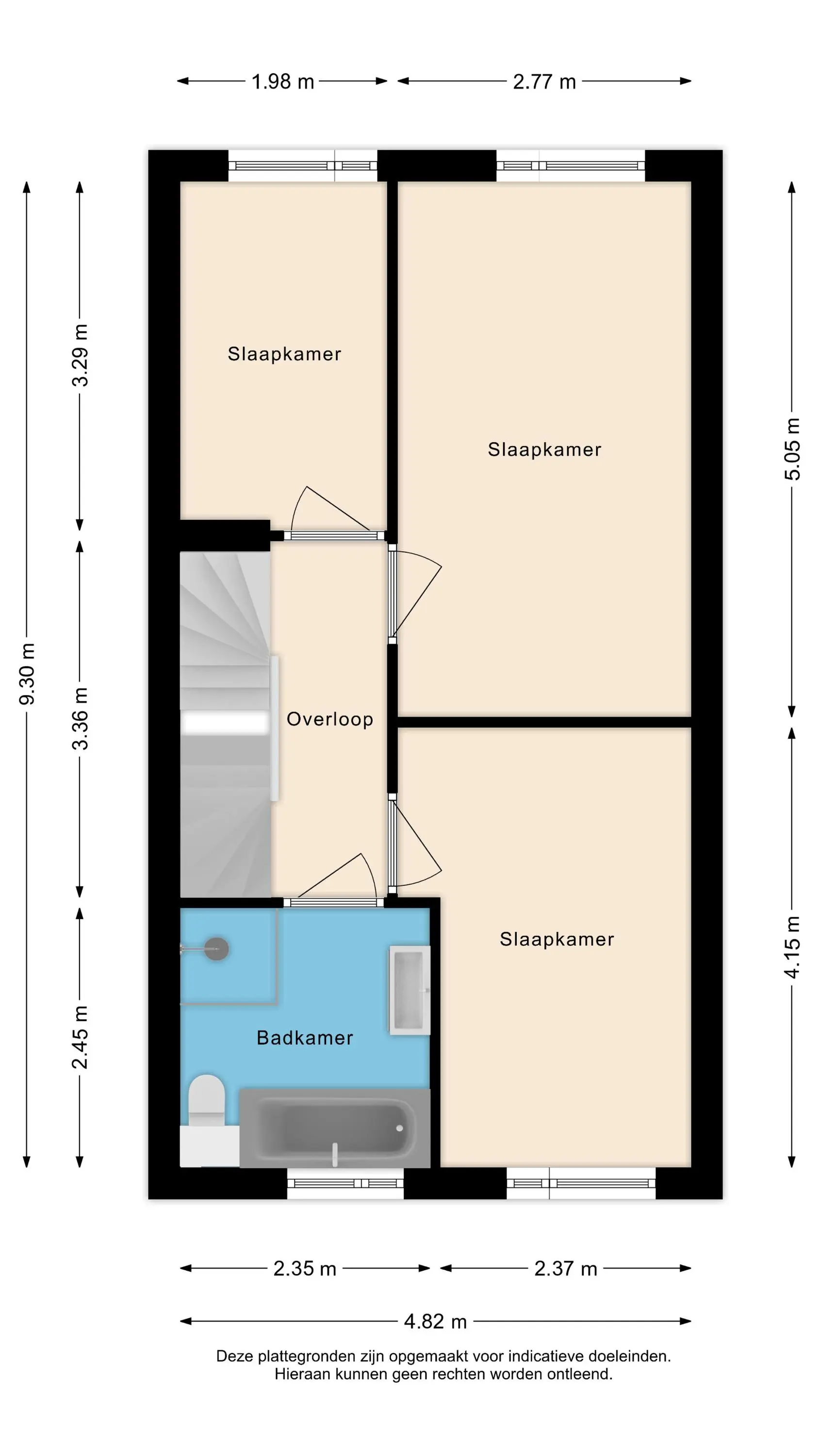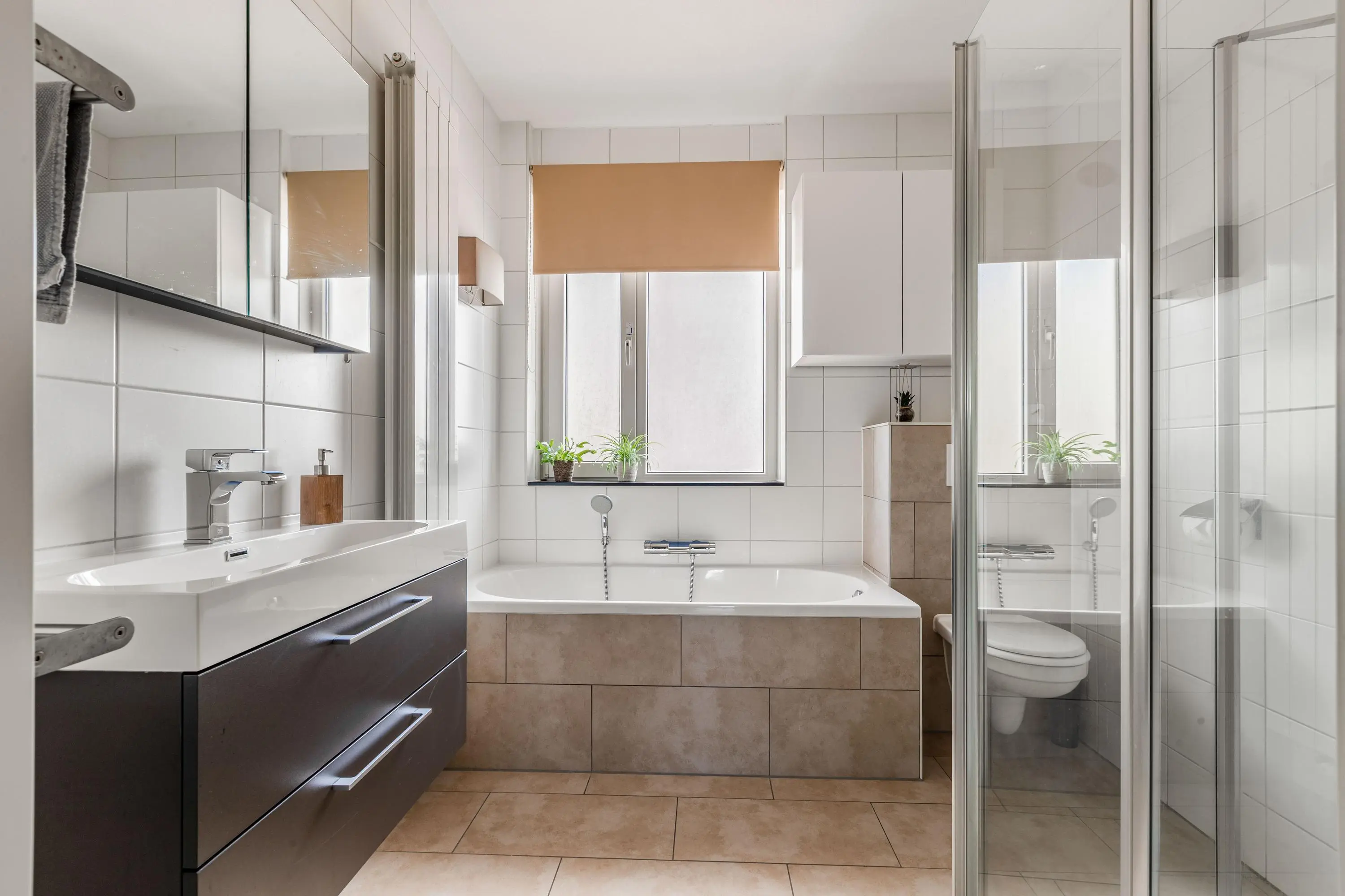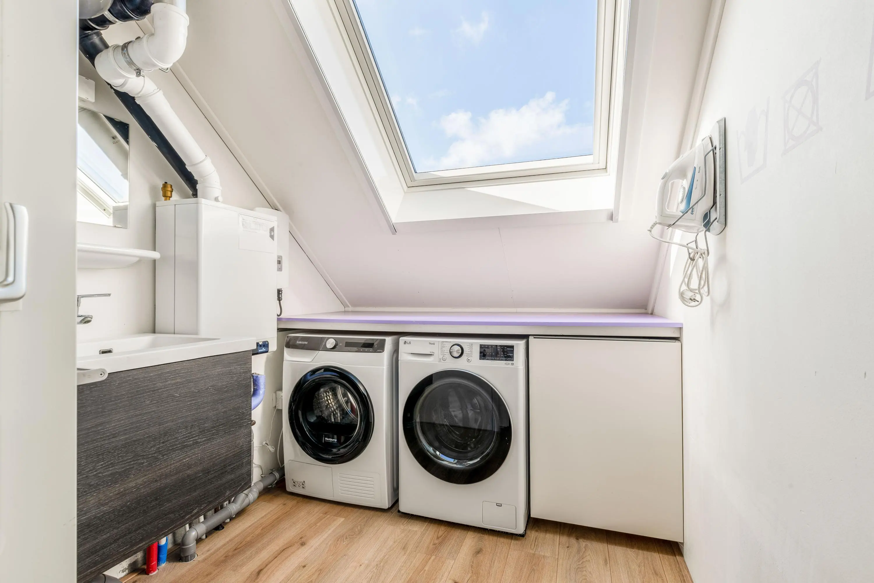 Op de eerste verdieping bevinden zich drie slaapkamers en een nette badkamer met ligbad, aparte douche, toilet en wastafelmeubel. De tweede verdieping biedt nog eens twee slaapkamers, waarvan één met airco, en een praktische wasruimte met aansluiting voor wasmachine en droger, een wastafelmeubel en de opstelling van de cv-ketel.