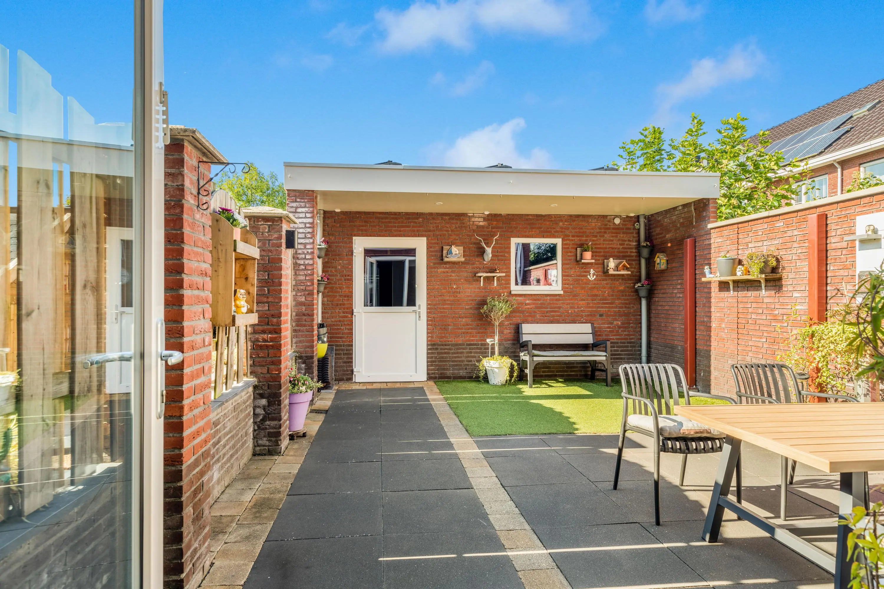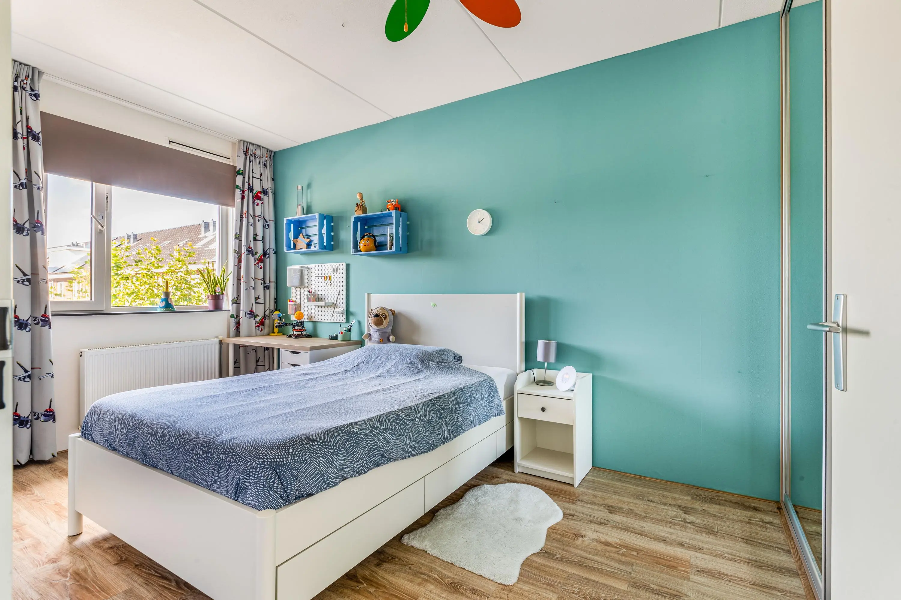 De zonnige tuin op het westen is een fijne plek om te ontspannen. De ruime berging biedt voldoende opbergruimte en via de achterom heb je direct toegang tot het speelpleintje. De rustige straat wordt uitsluitend gebruikt door bestemmingsverkeer, wat zorgt voor extra veiligheid.