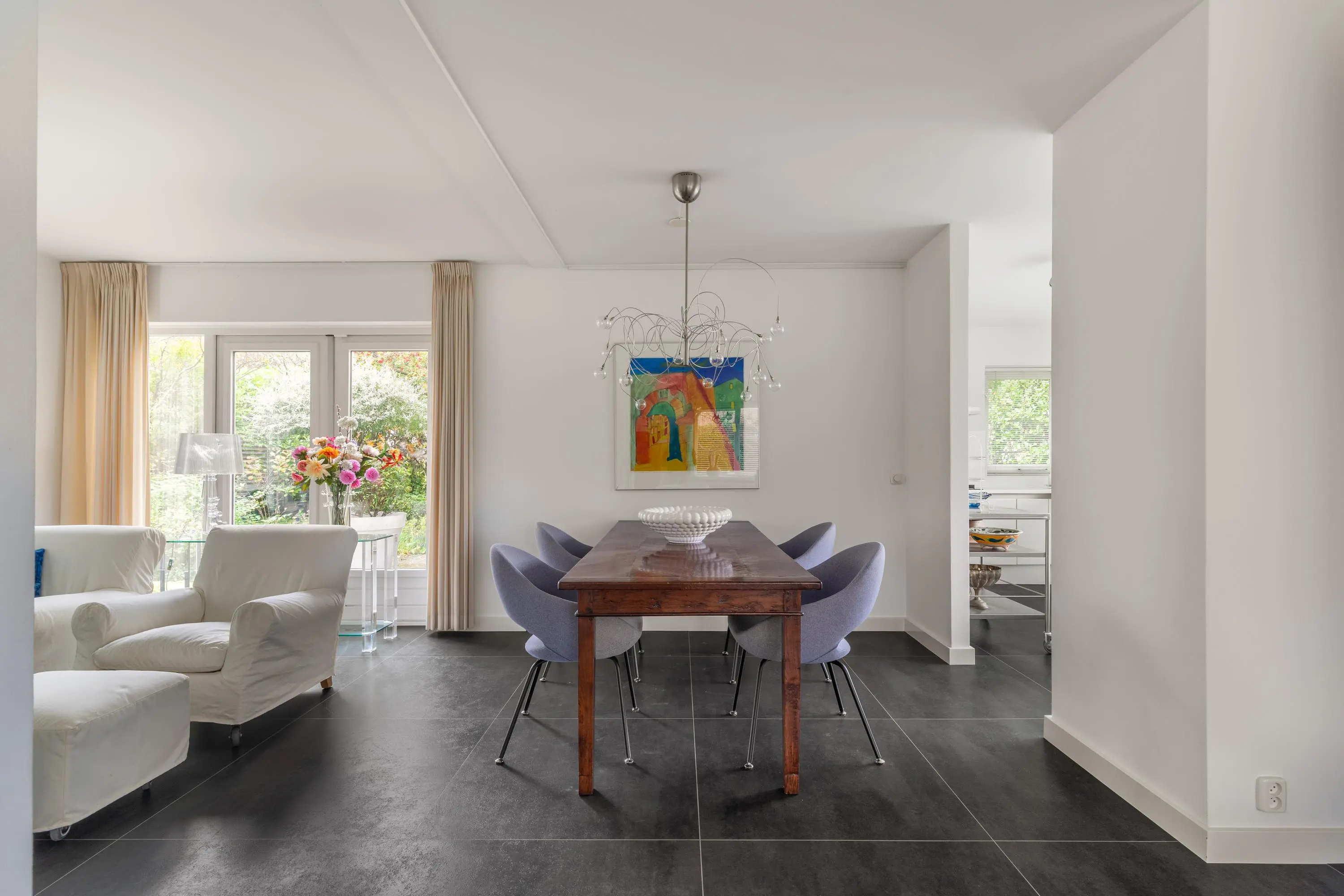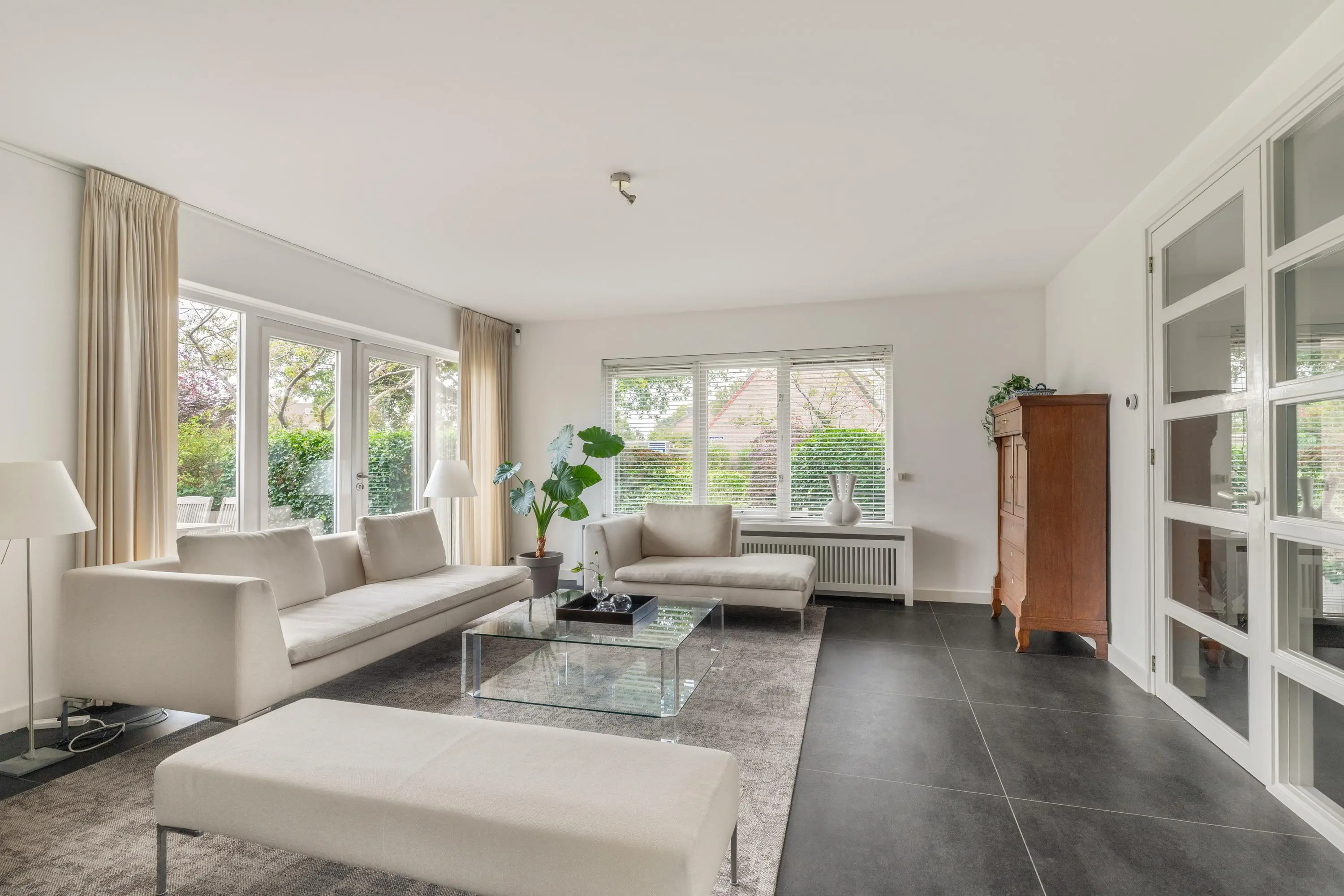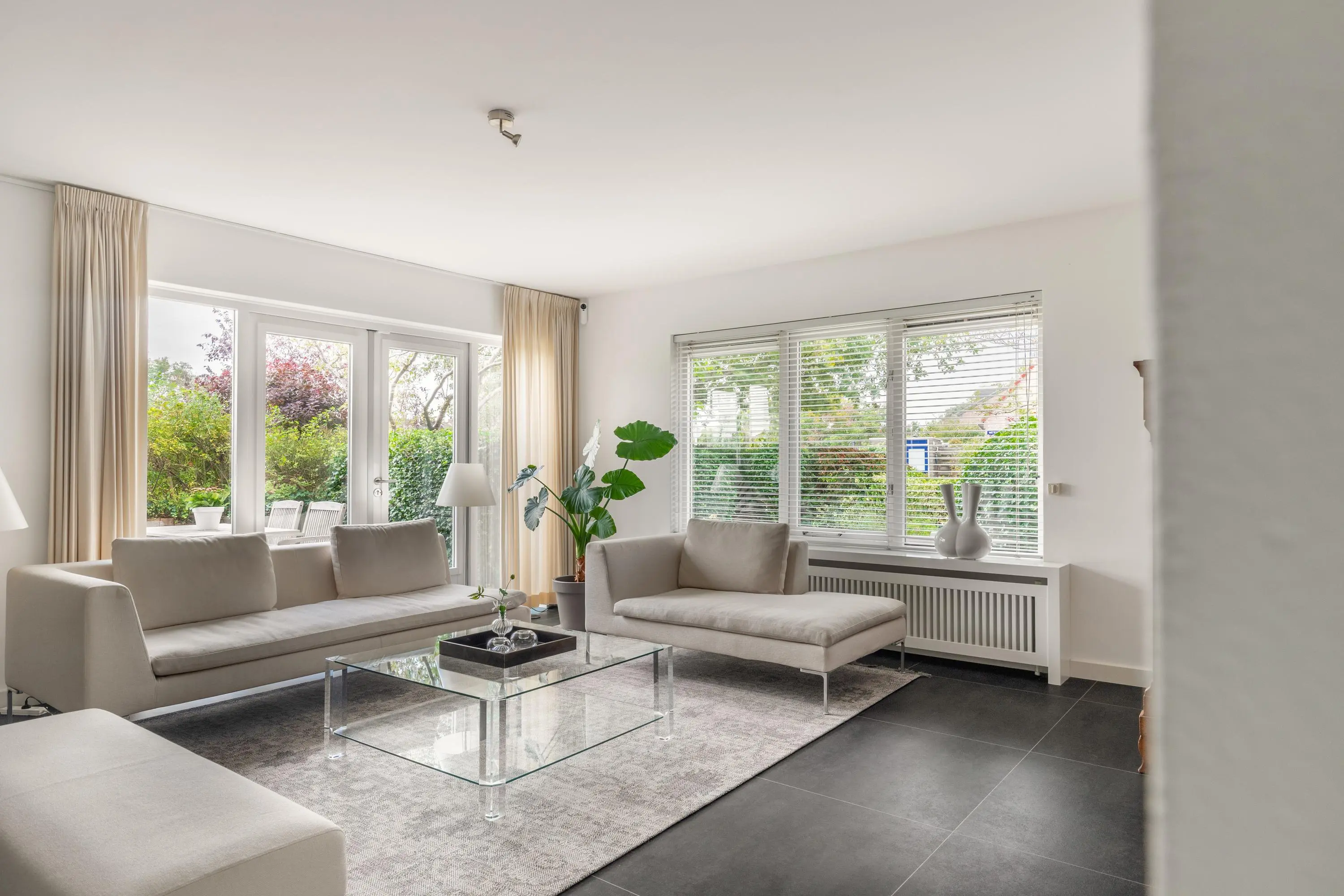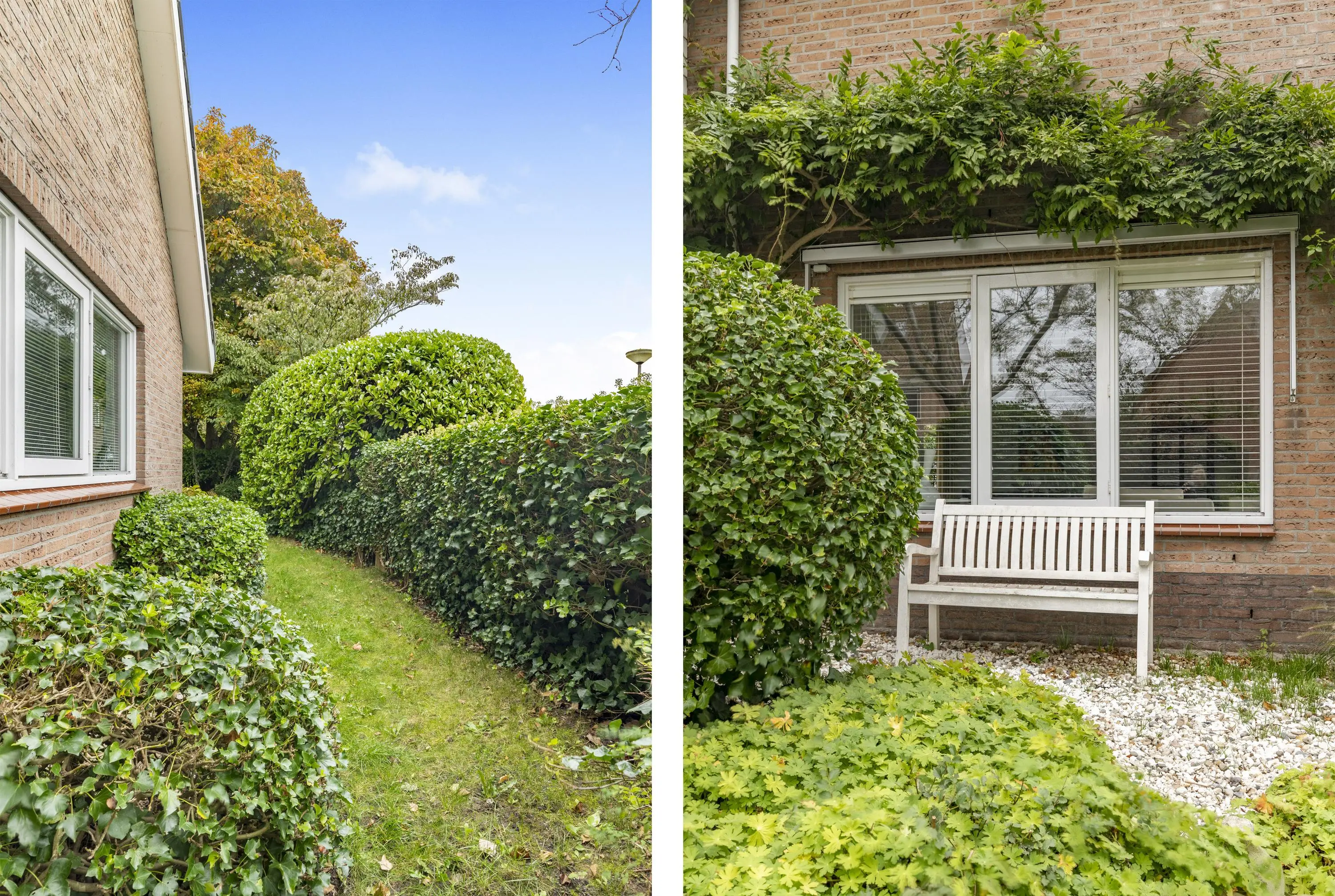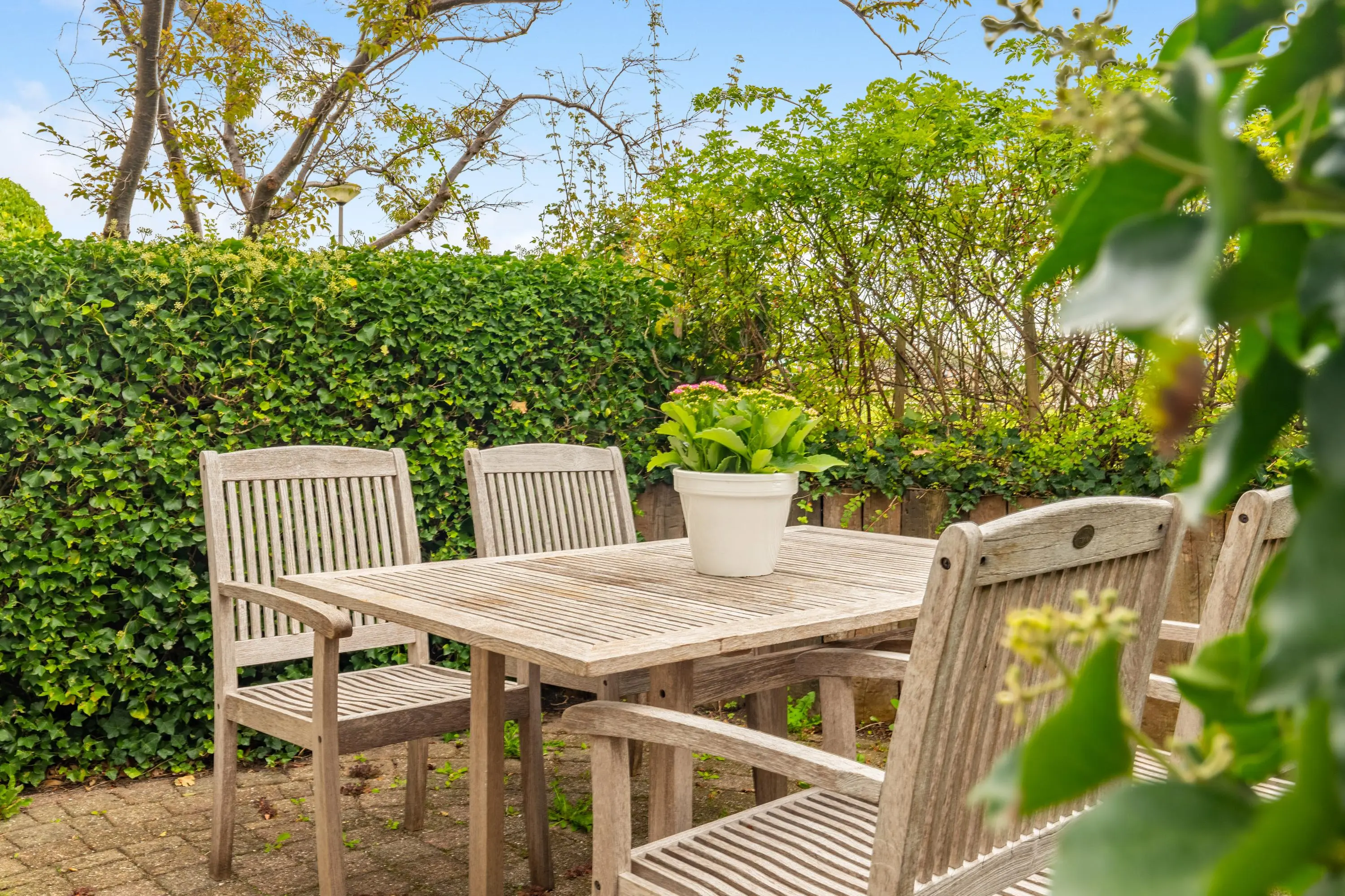 De woning beschikt over een rondom gelegen tuin, waardoor je op elk moment van de dag kunt kiezen voor zon of schaduw. Dankzij de openslaande deuren aan zowel de zij- als achterkant van de woning haal je het buitenleven moeiteloos naar binnen.