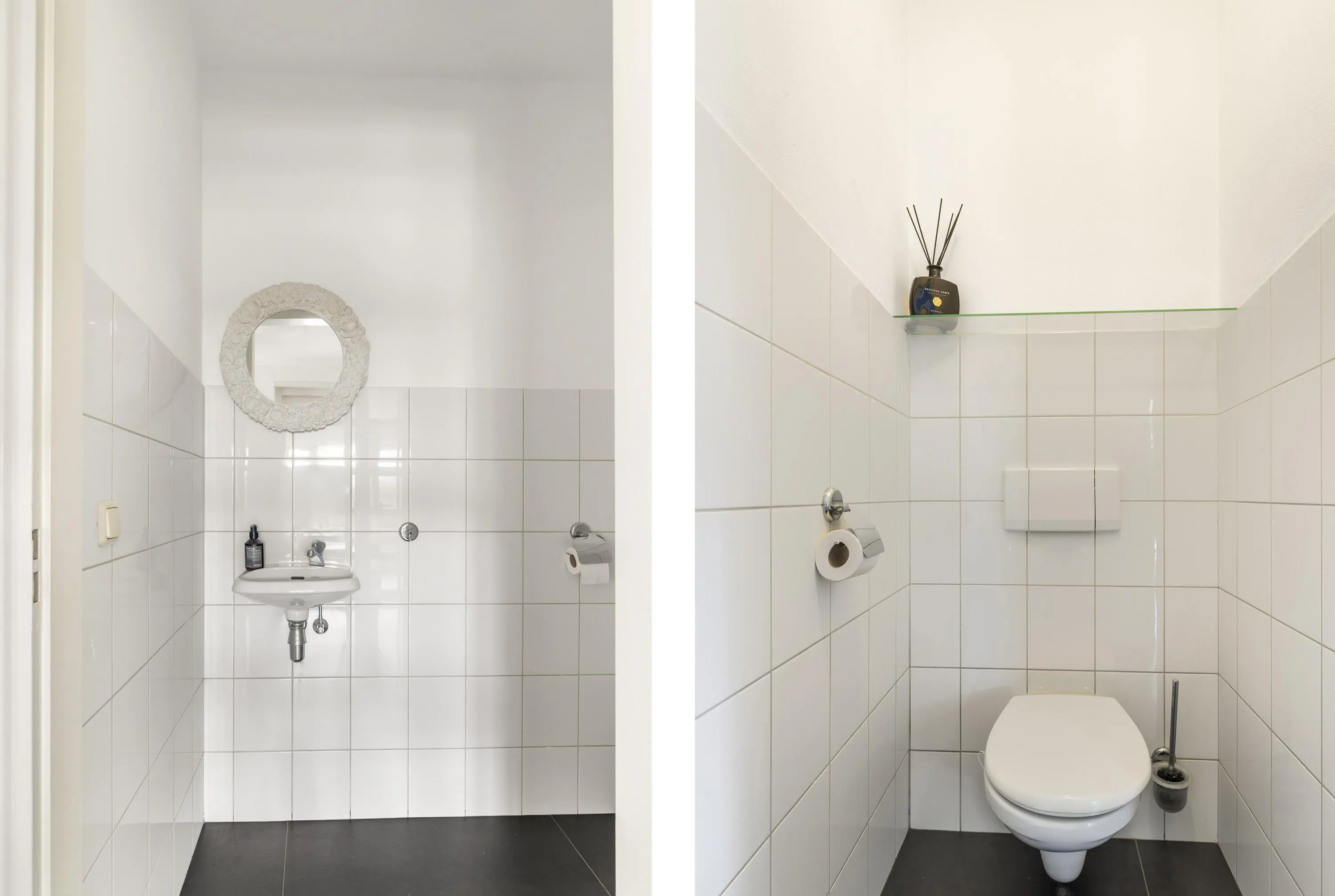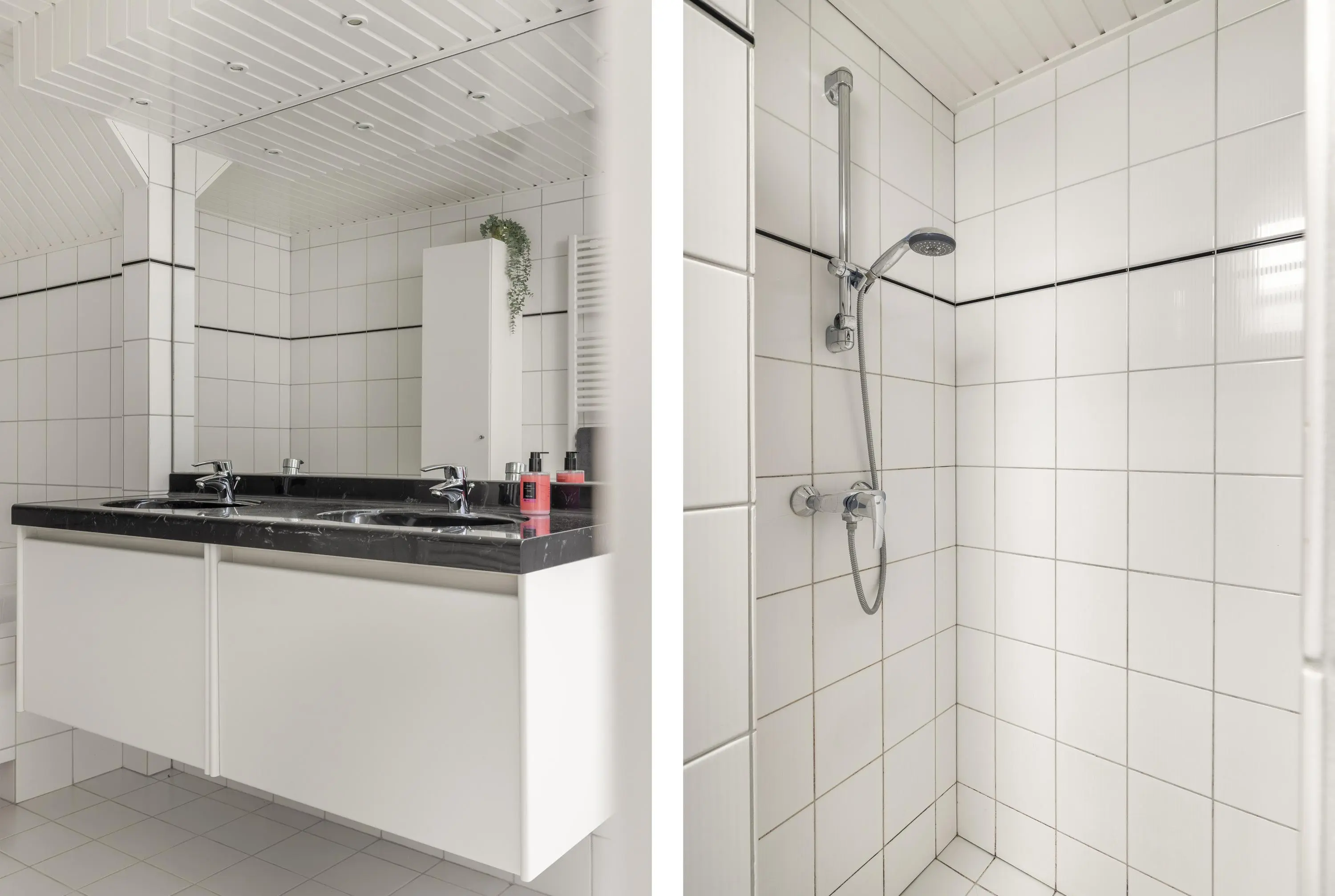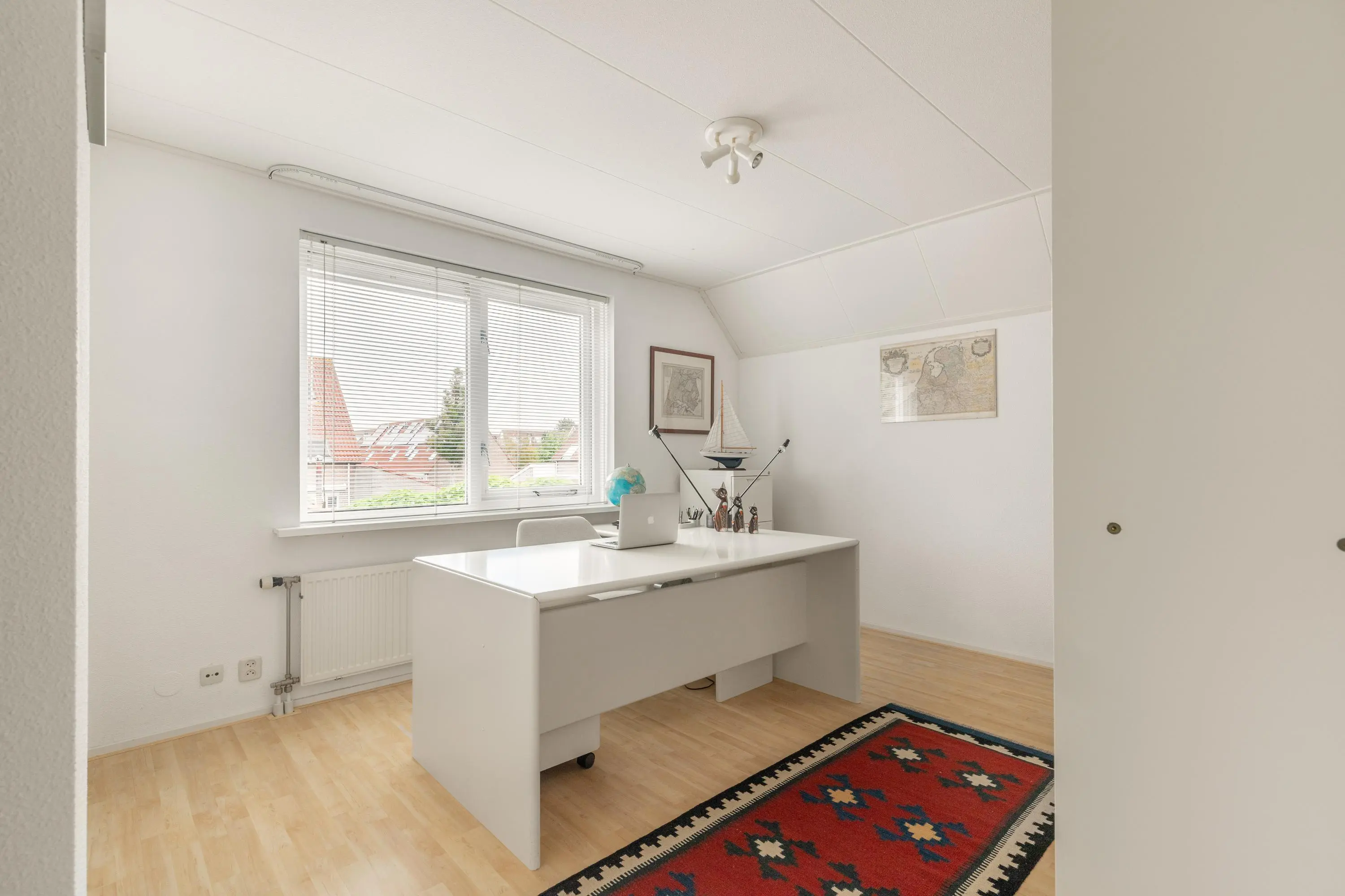 Op de eerste verdieping bevinden zich vier ruime, lichte slaapkamers, een separate toiletruimte en een nette badkamer voorzien van vloerverwarming, een dubbele wastafel, ligbad en inloopdouche. De tweede verdieping biedt nog eens twee slaapkamers en een aparte ruimte voor de cv-installatie. In totaal zijn er dus zes slaapkamers, ideaal voor gezinnen, logees of een thuiskantoor.