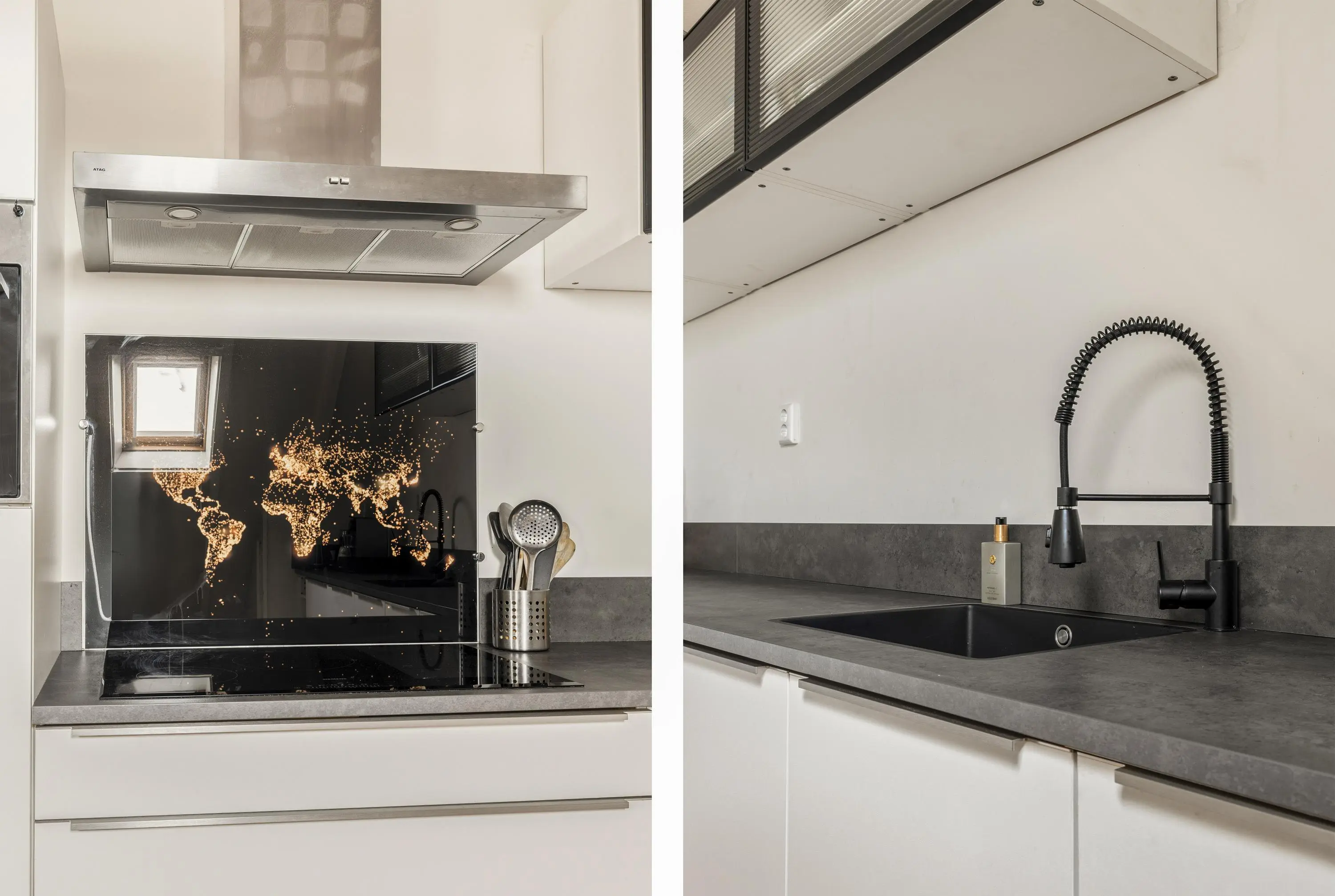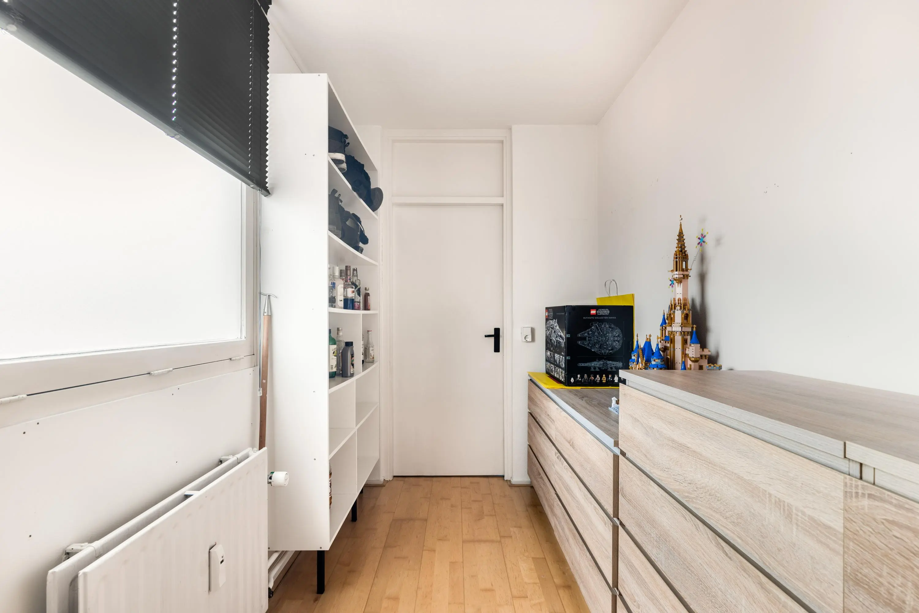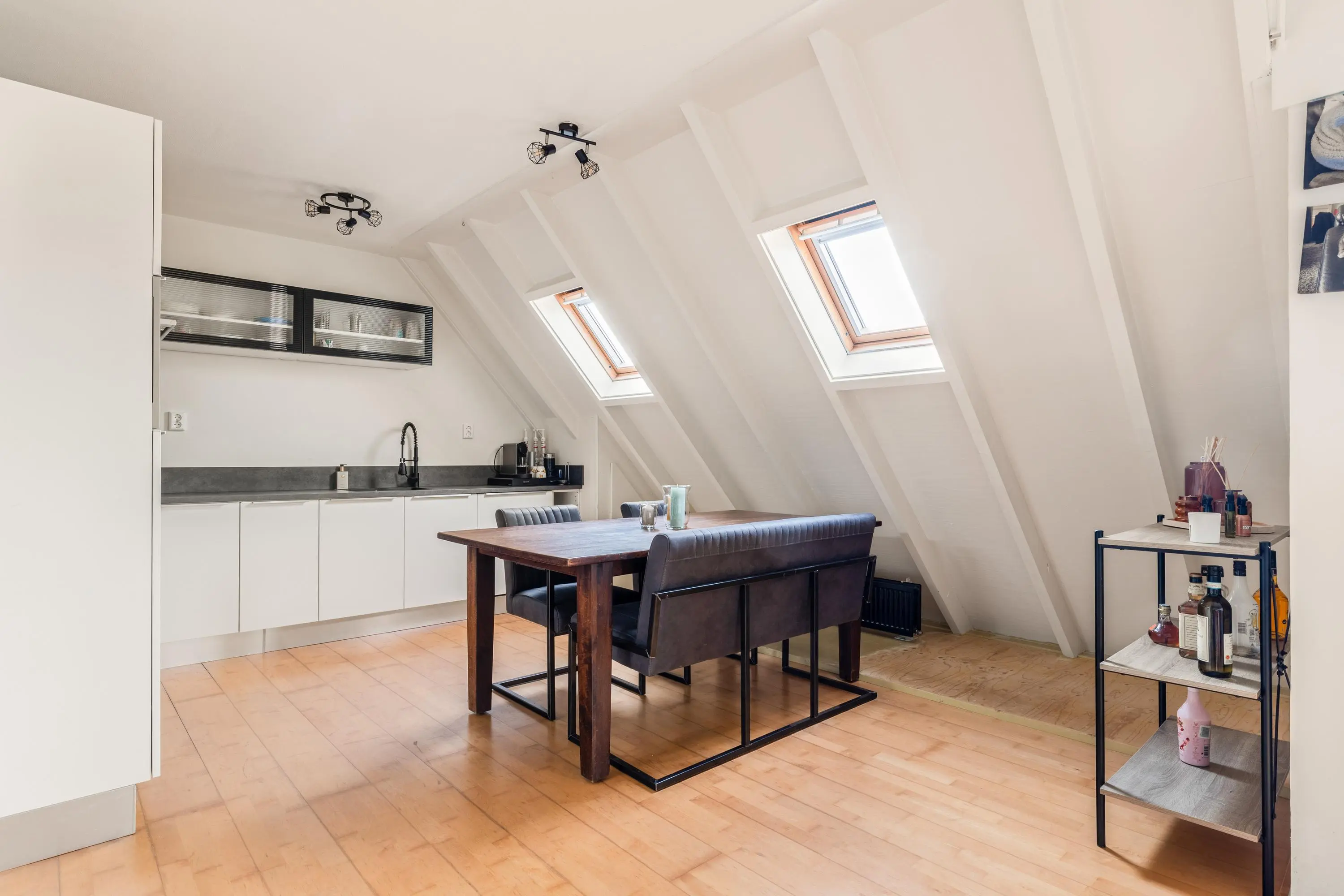 De woonkamer heeft een prettige, lichte indeling met een open keuken en toegang tot het balkon én de hoofdslaapkamer. De keuken is in 2023 nieuw geplaatst en is voorzien van een inductiekookplaat, afzuigkap, vaatwasser, koelkast en combi-oven.