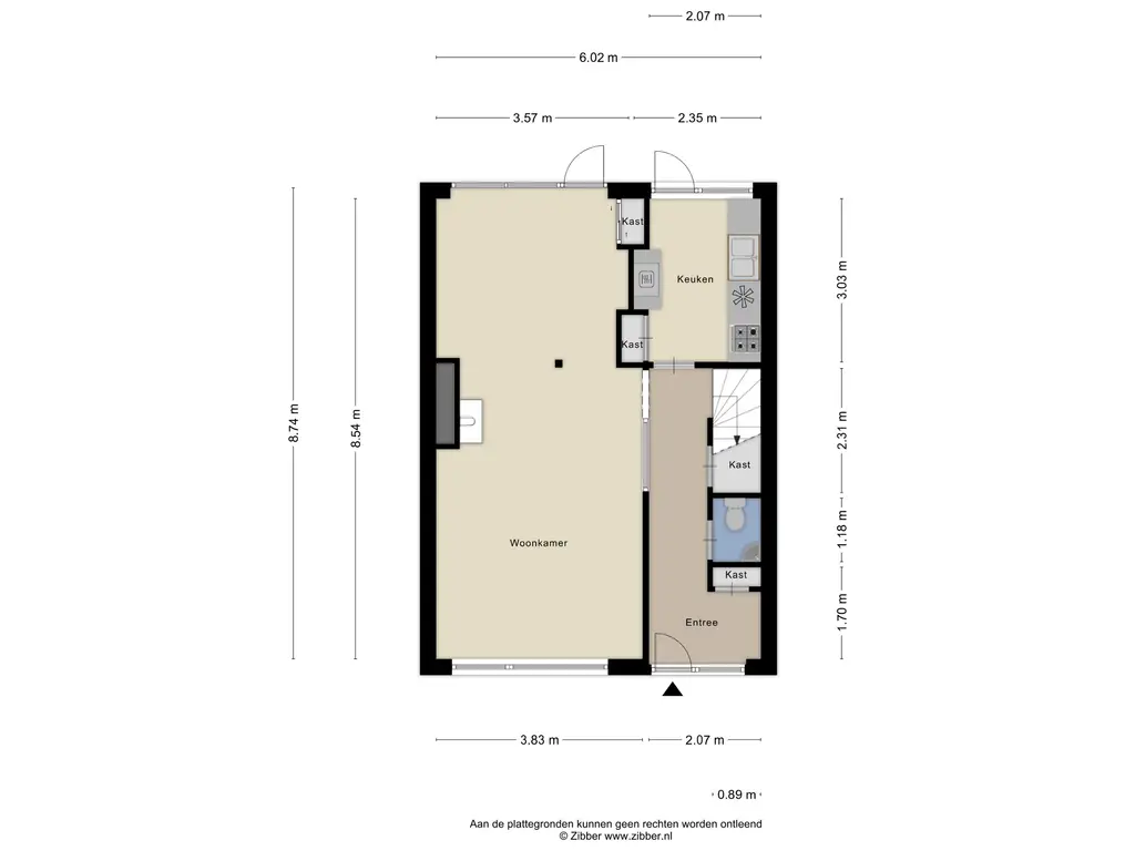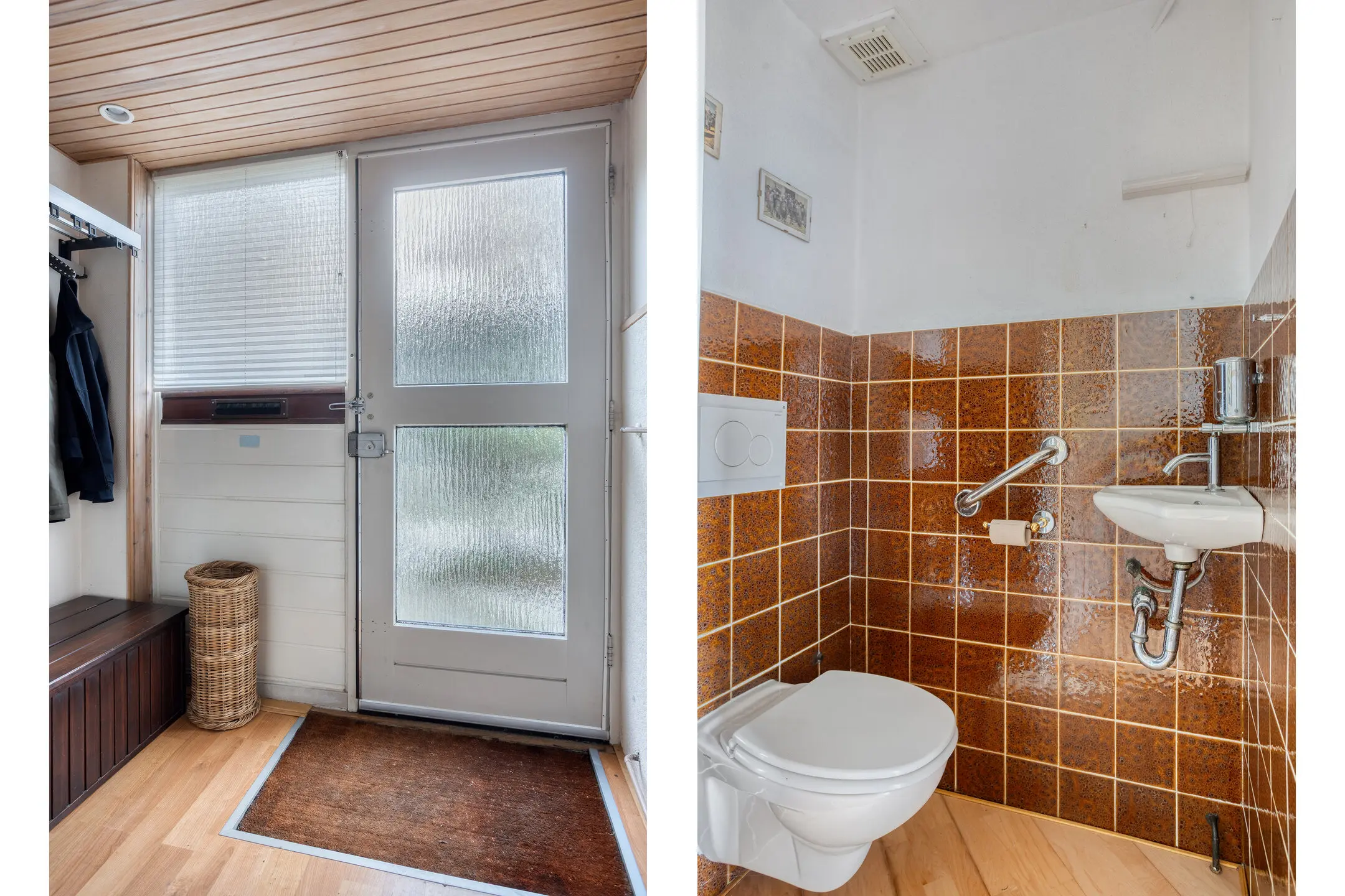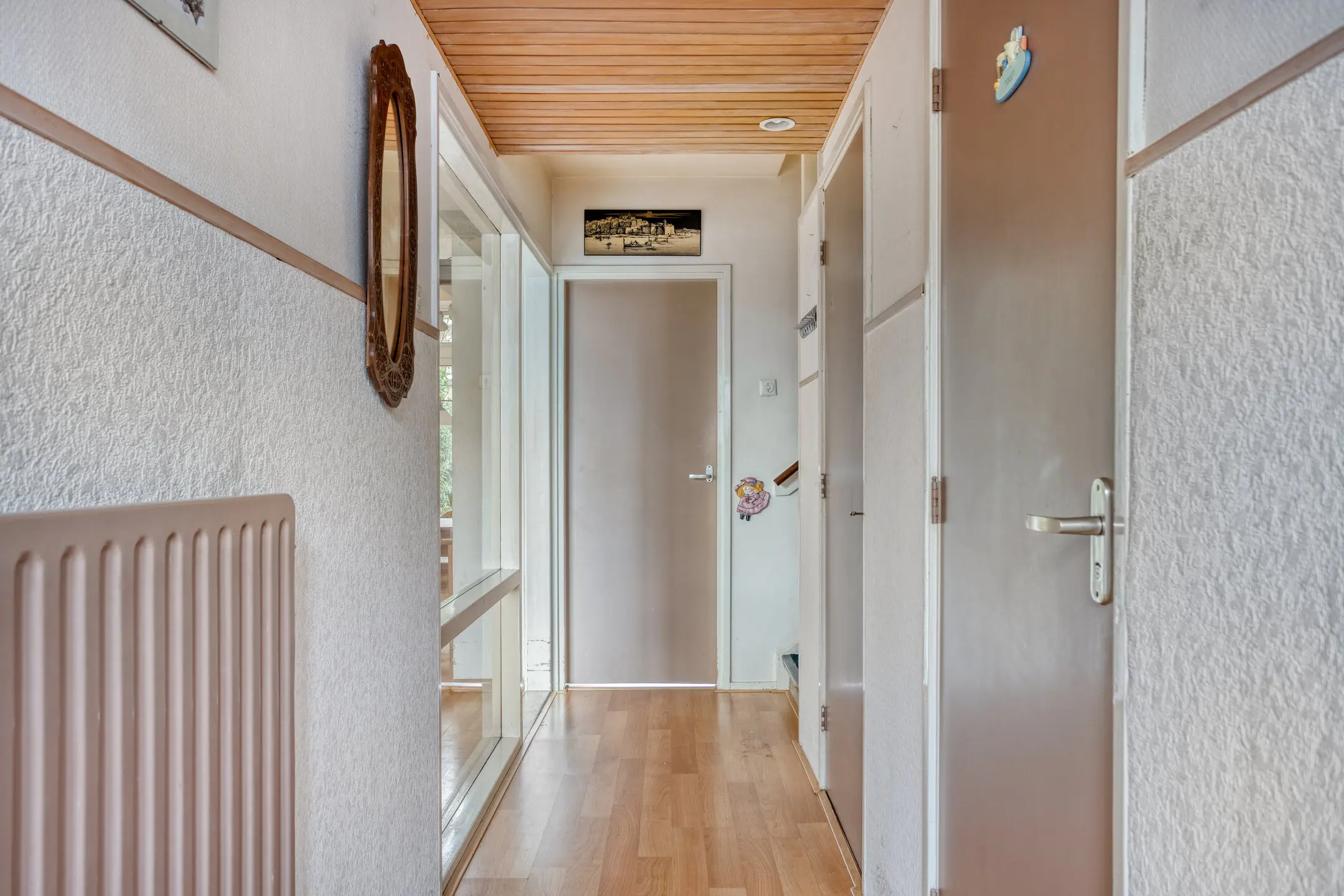 Via de voortuin bereik je de entree van de woning. Je komt binnen in de hal vanwaar je doorloopt naar de woonkamer.