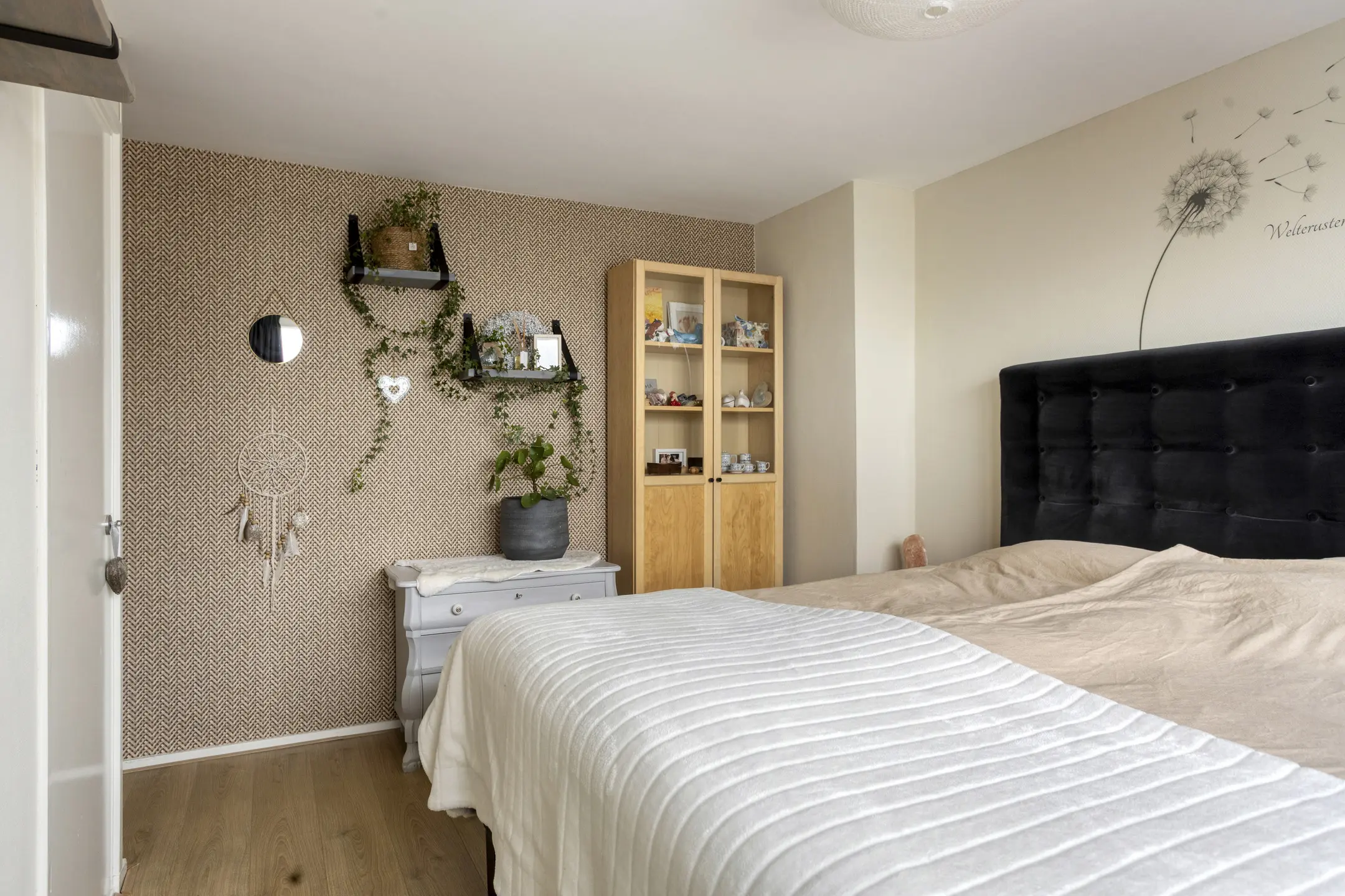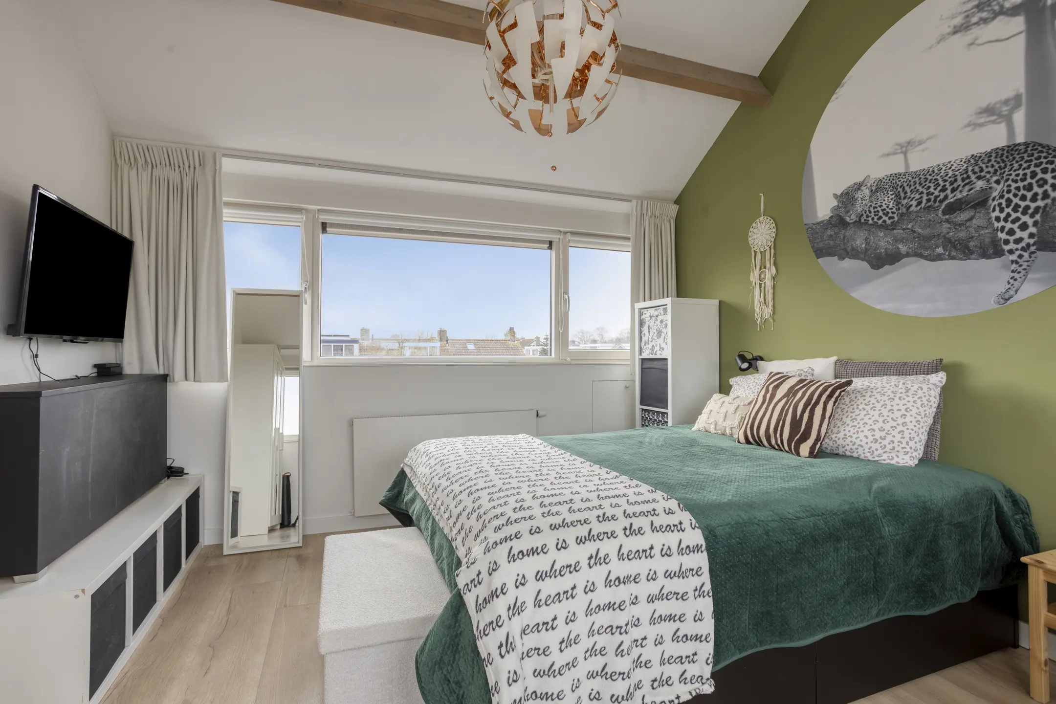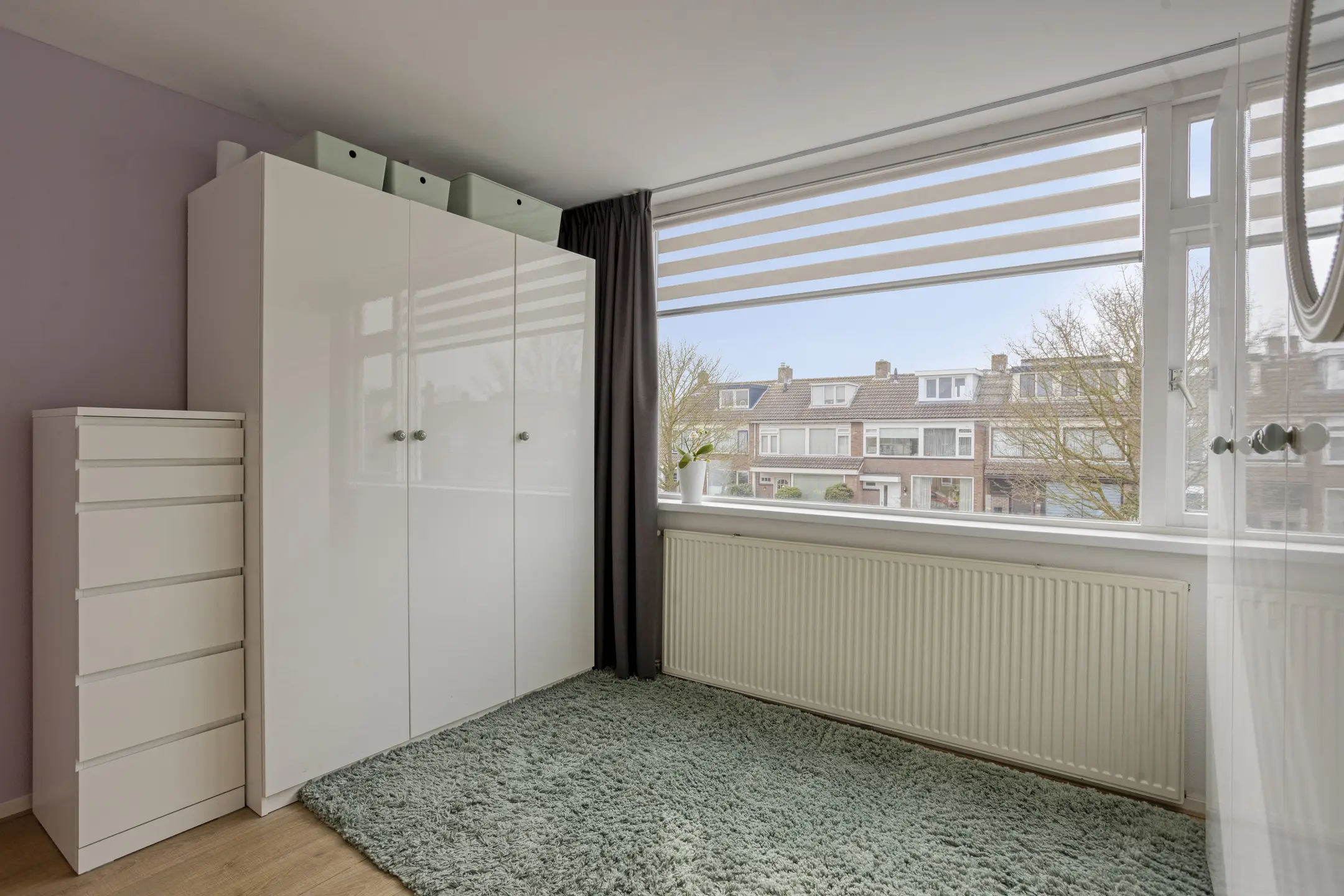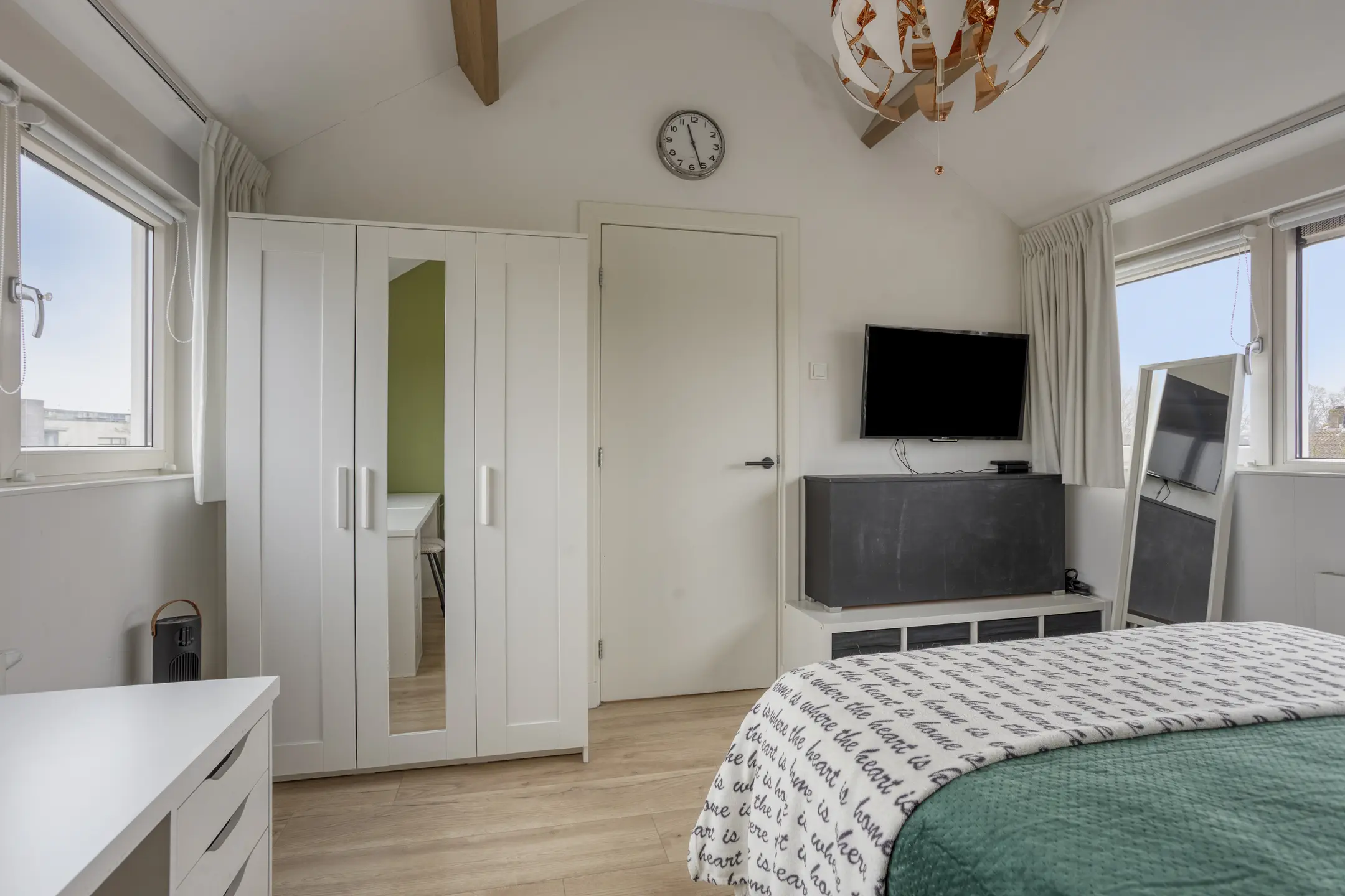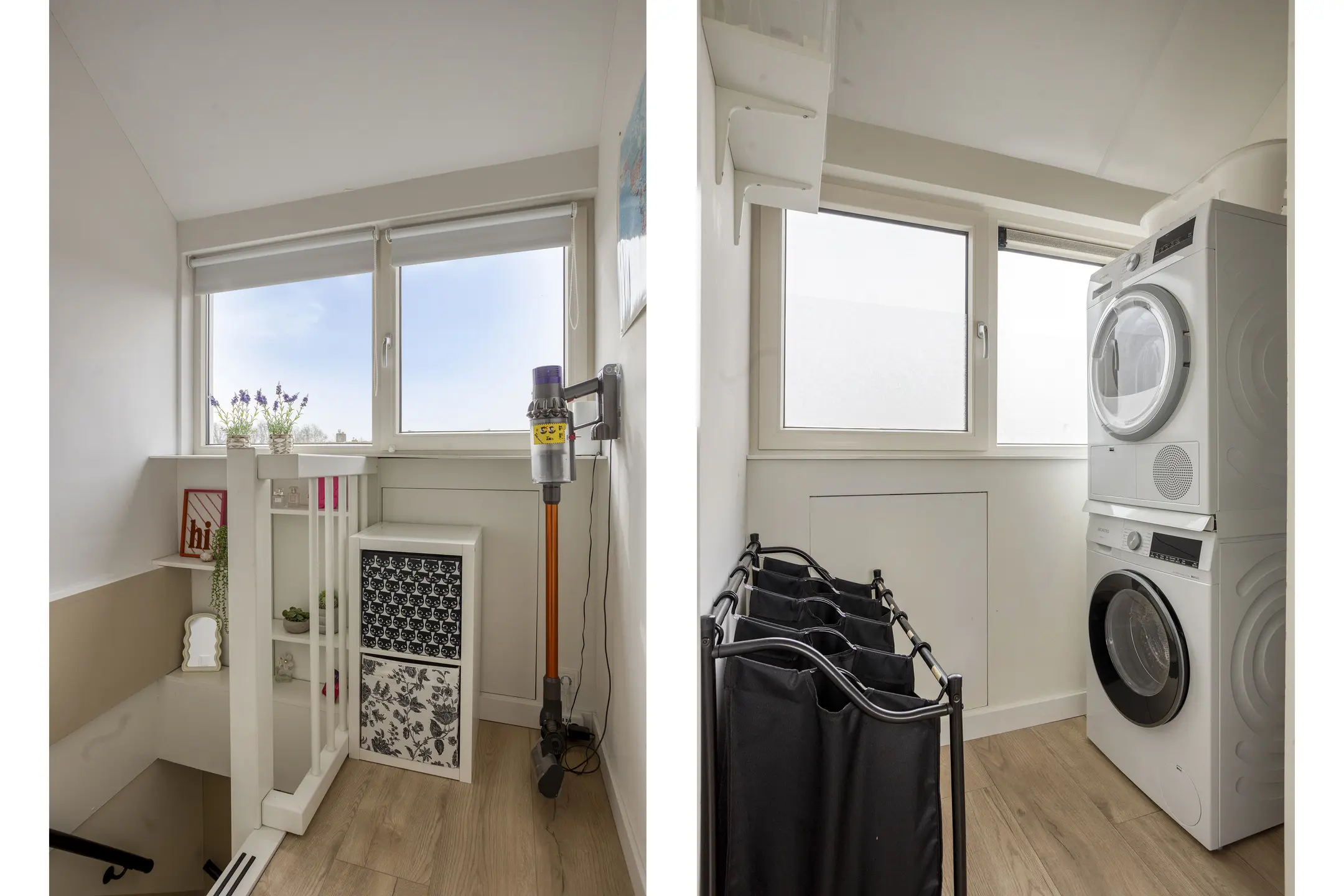 Op de tweede verdieping is dankzij een dakopbouw een fijne extra ruimte gerealiseerd. De voorzolder biedt niet alleen bergruimte, maar ook toegang tot een afgesloten wasruimte met aansluitingen voor zowel de wasmachine als de droger. Op deze verdieping bevindt zich tevens een vierde, royale slaapkamer. Door de dakopbouw is de nok volledig verhoogd, wat zorgt voor een ruimtelijk en fraai effect.
