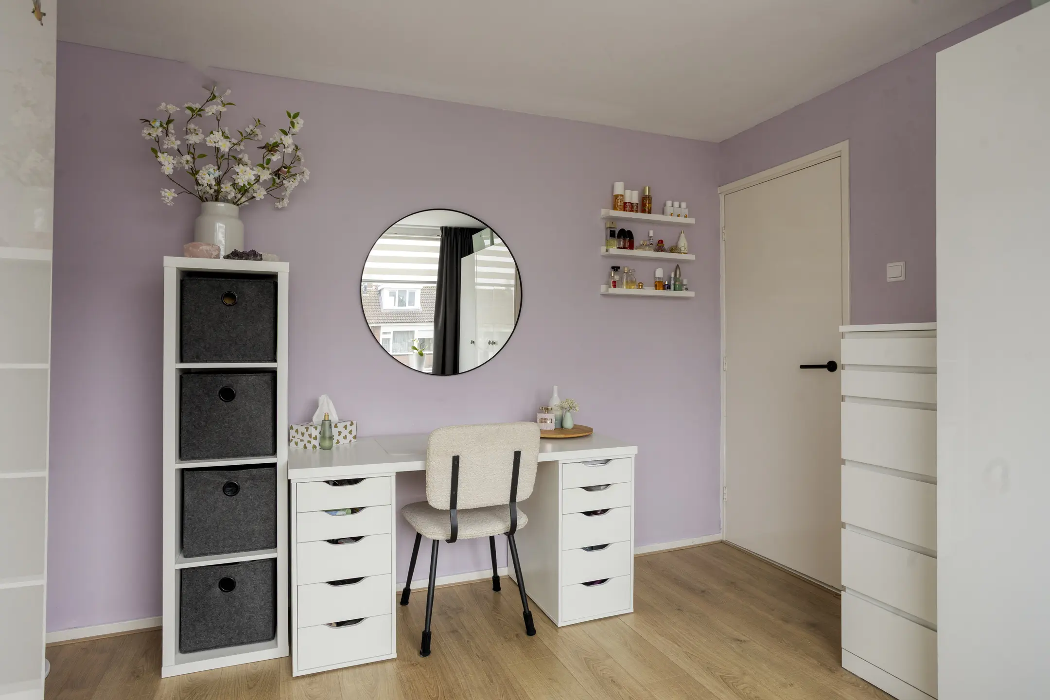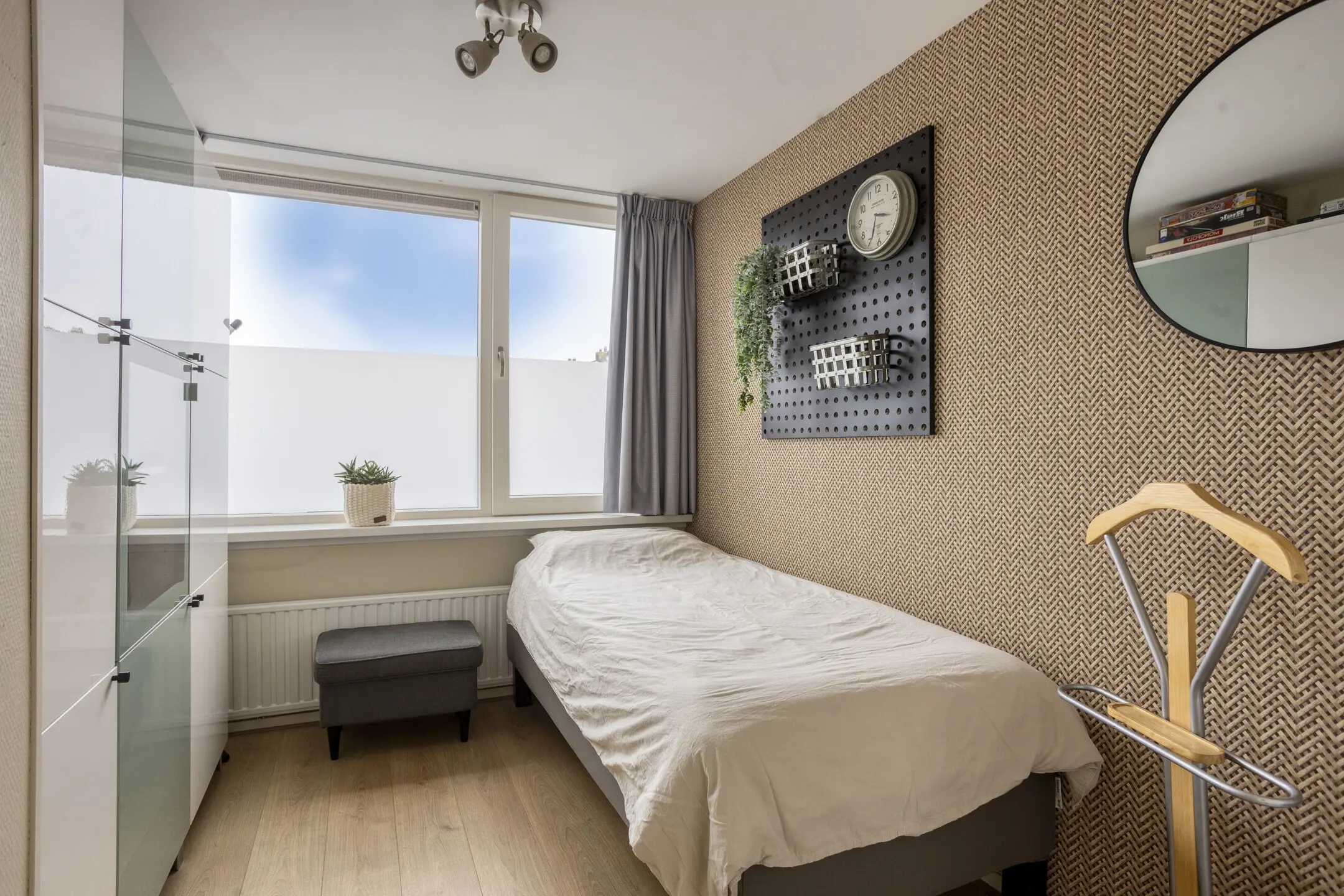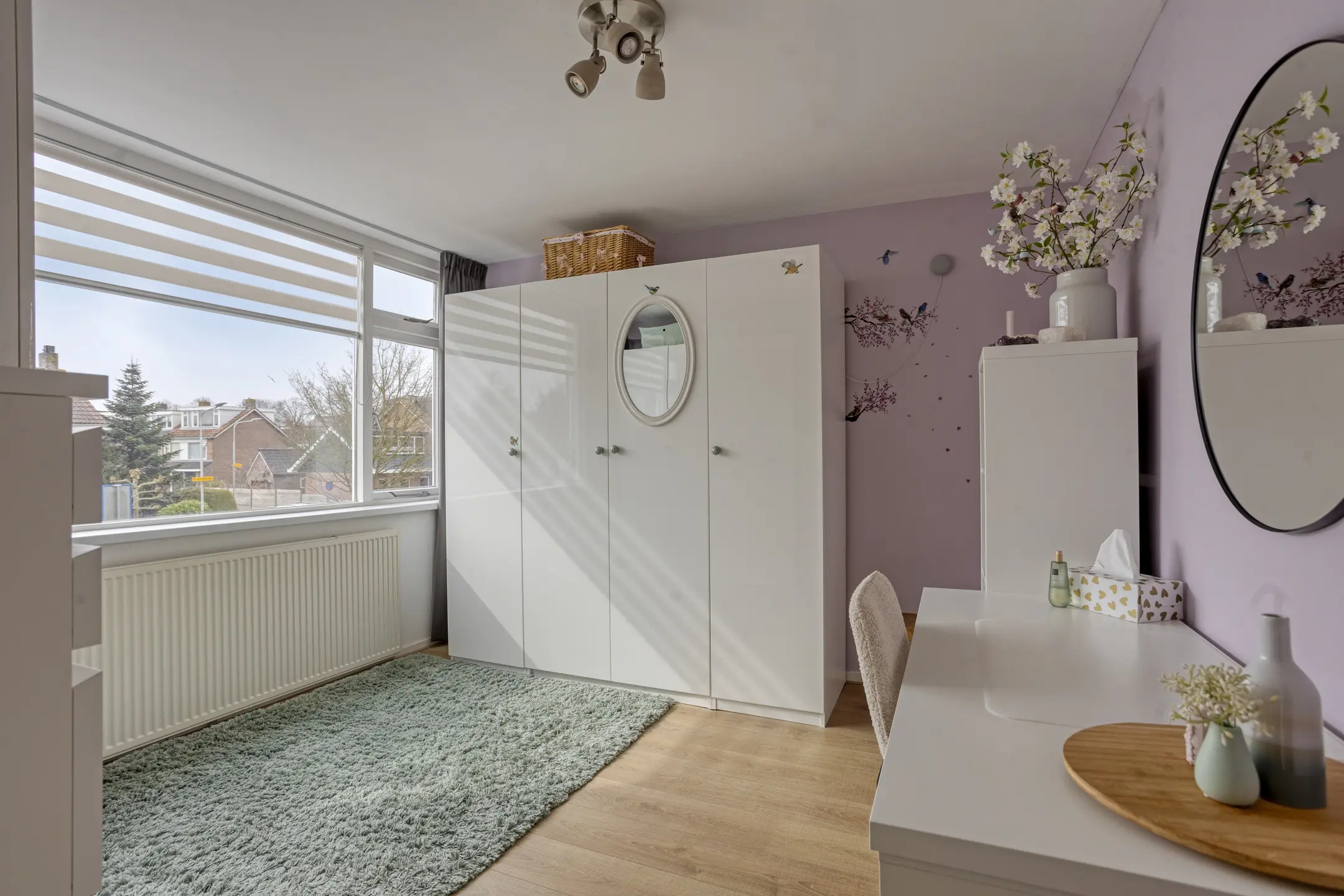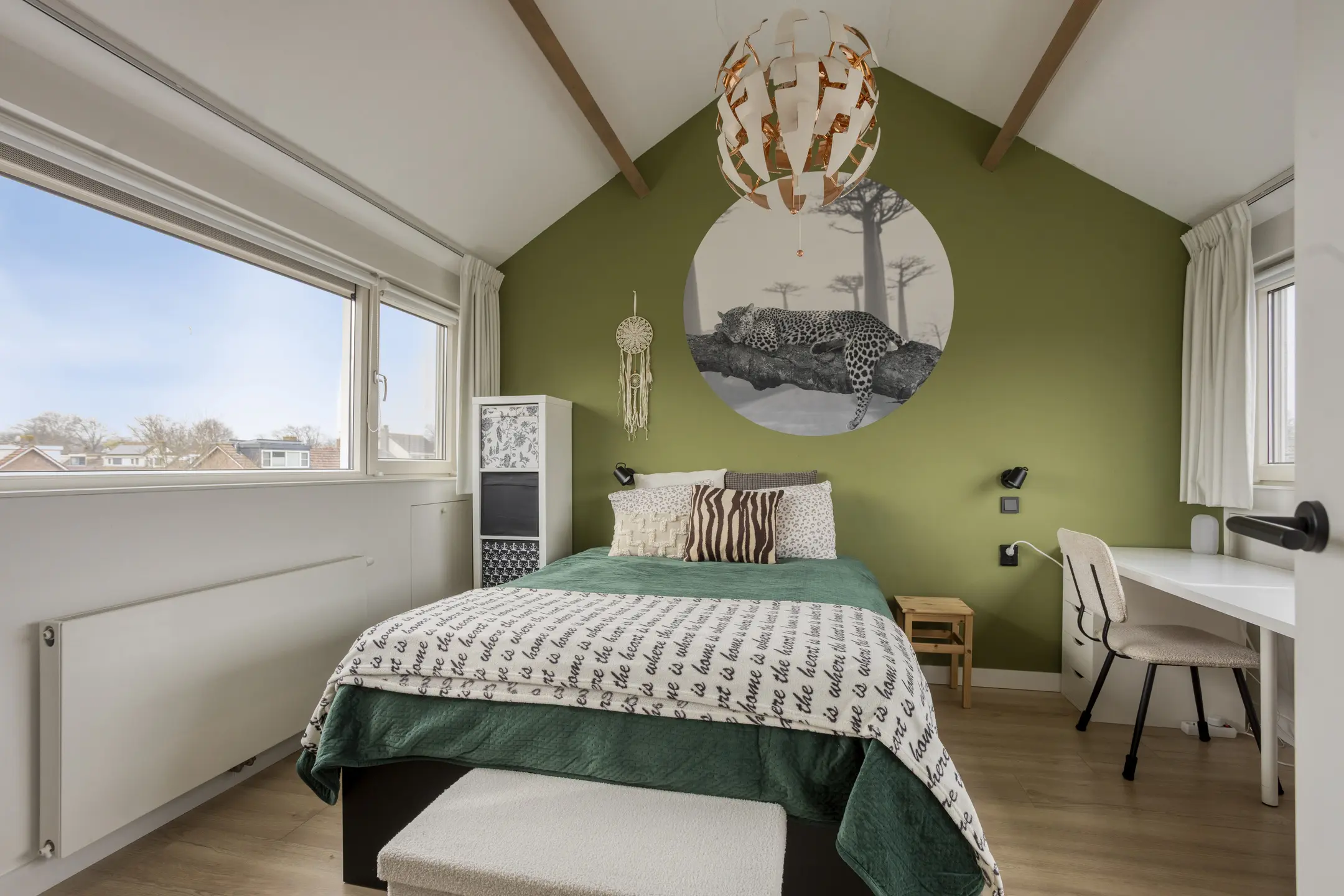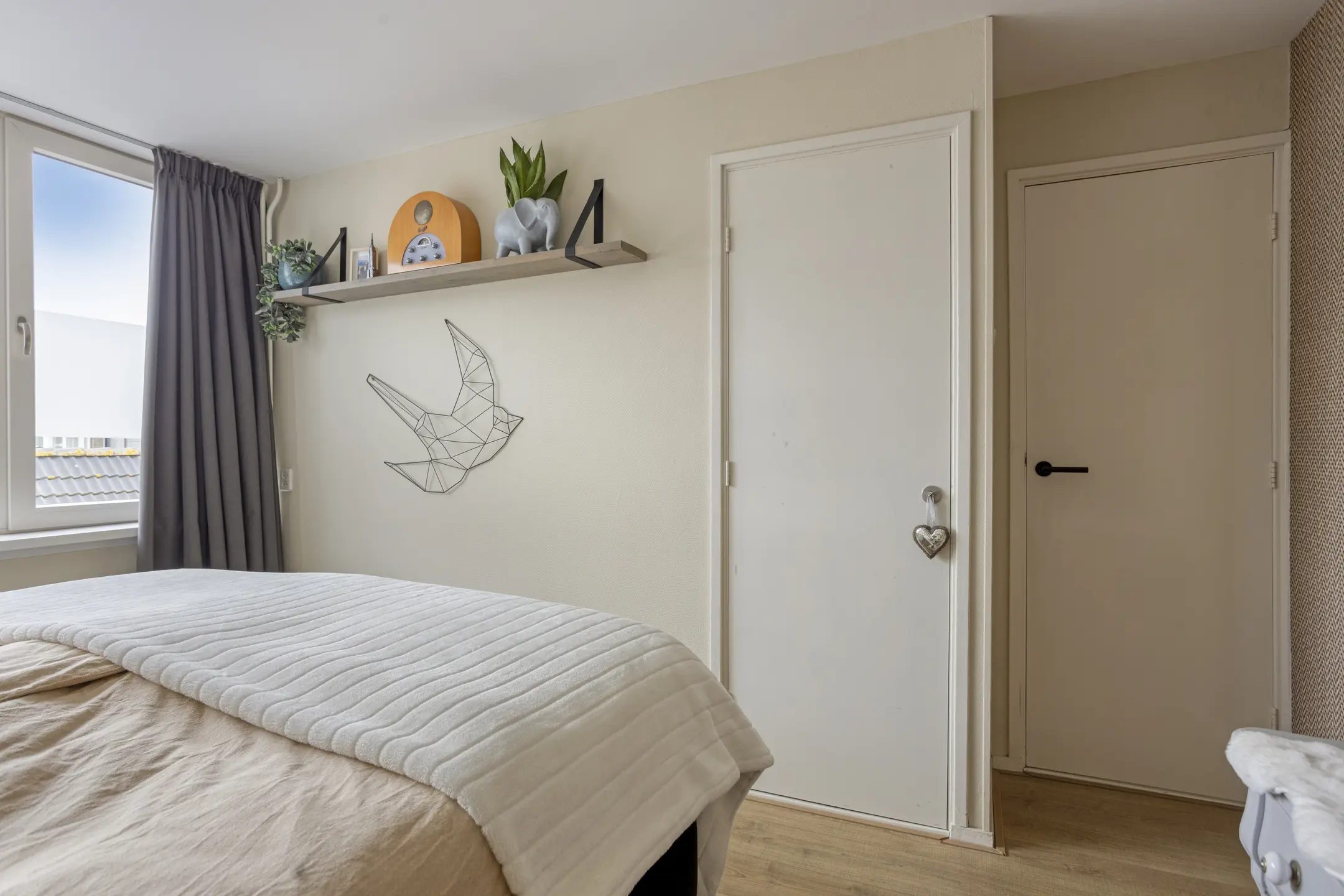 Op de tweede verdieping is dankzij een dakopbouw een fijne extra ruimte gerealiseerd. De voorzolder biedt niet alleen bergruimte, maar ook toegang tot een afgesloten wasruimte met aansluitingen voor zowel de wasmachine als de droger. Op deze verdieping bevindt zich tevens een vierde, royale slaapkamer. Door de dakopbouw is de nok volledig verhoogd, wat zorgt voor een ruimtelijk en fraai effect.