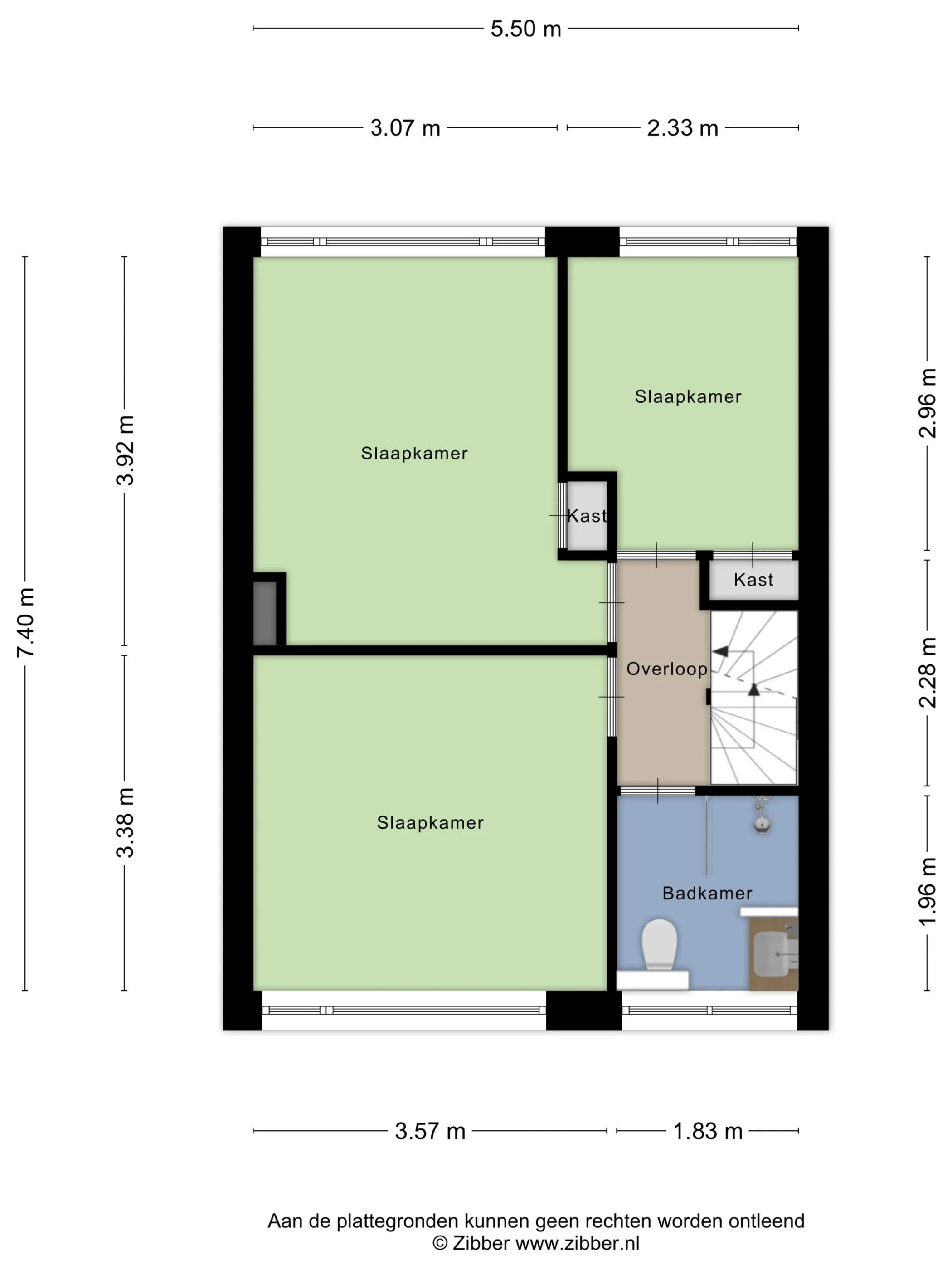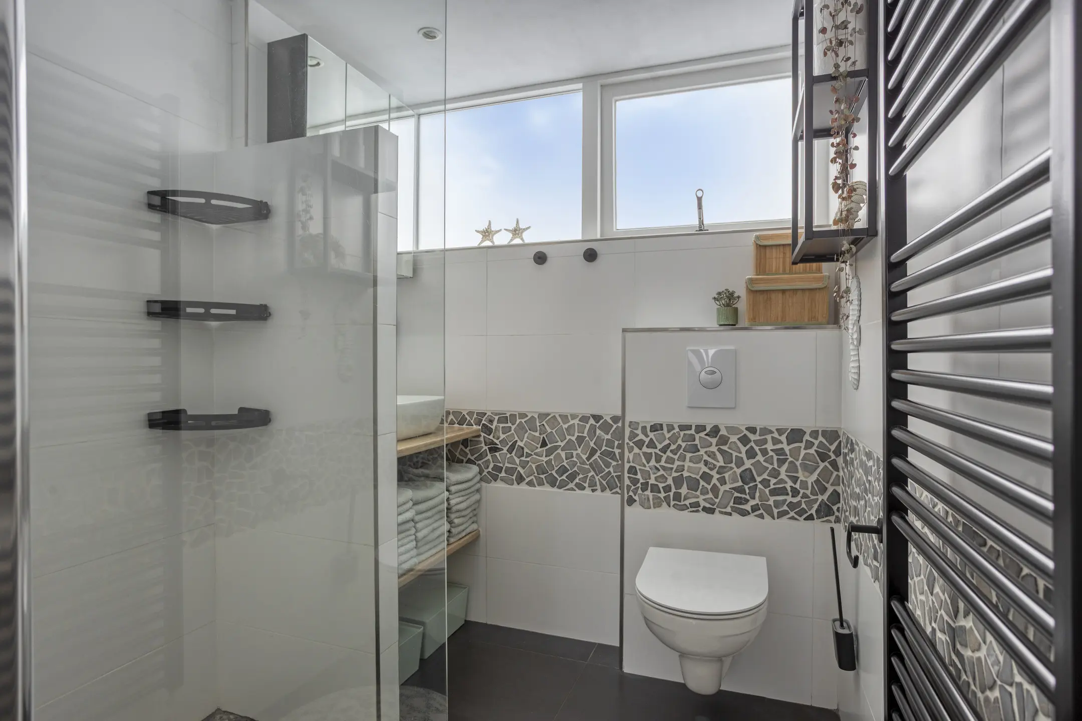 Op de eerste verdieping bevinden zich drie goed bemeten slaapkamers. De moderne badkamer is in het verleden vergroot en hierdoor biedt het ruimte voor een inloopdouche, toilet, handdoekradiator en een wastafel met inbouwkraan.